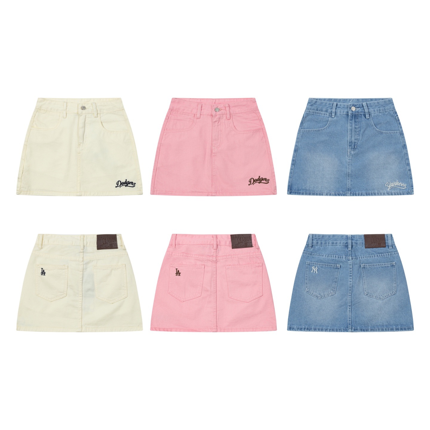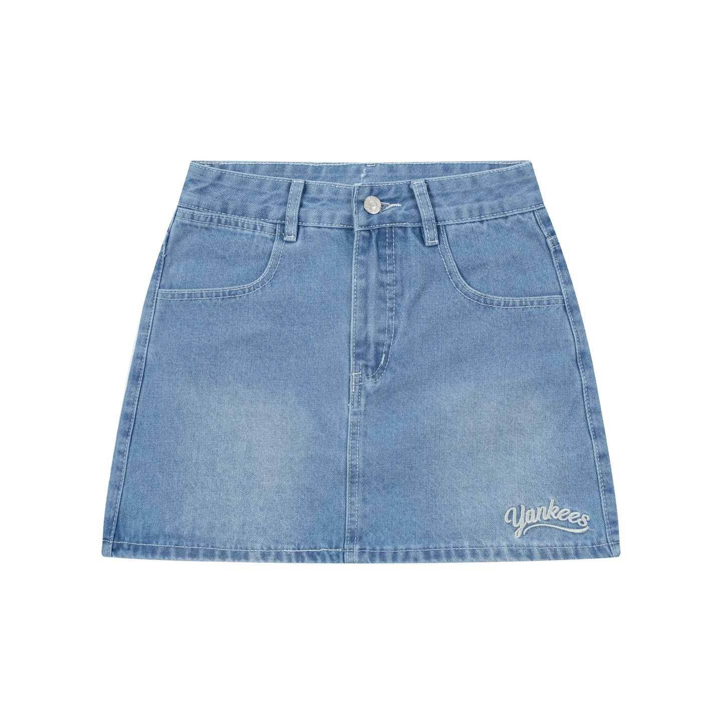 한국 트렌드 MLB 데님 스커트 25SS 여름 신작 심플 레터 스몰 라벨 자수 여아 힙 커버 A라인 스커트