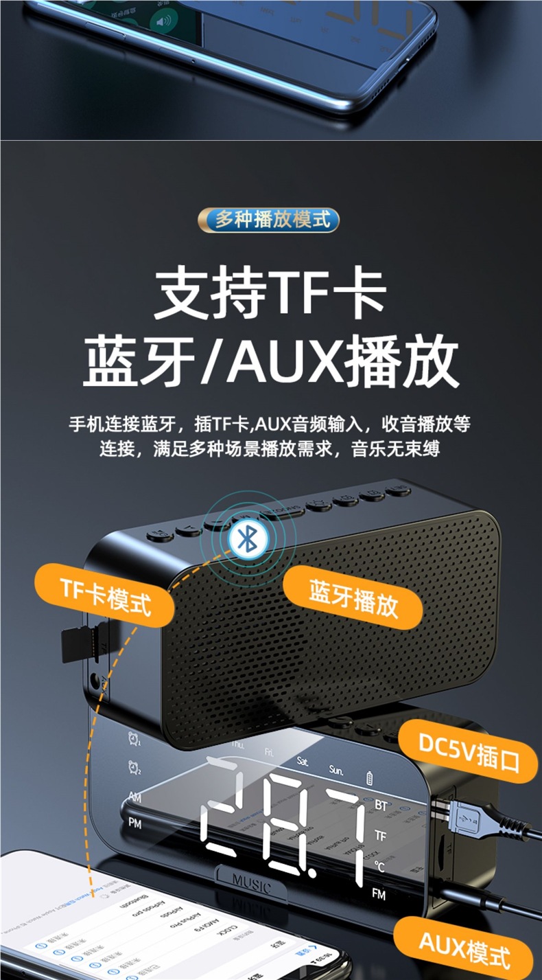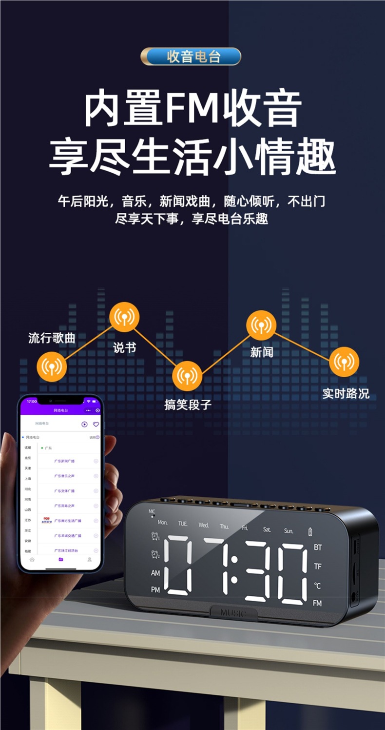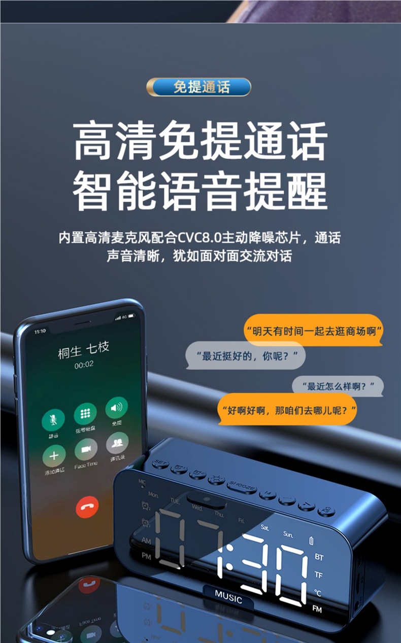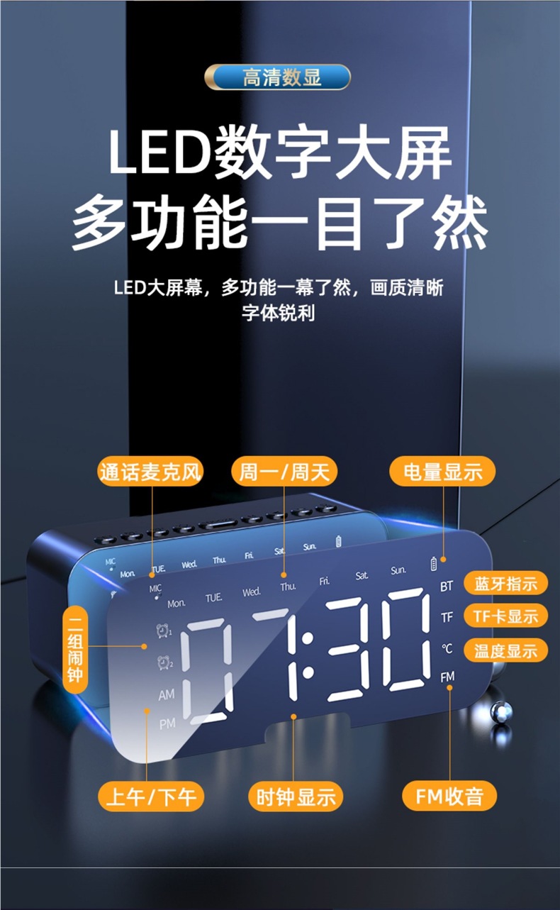 새로운 스마트 블루투스 오디오 전자 다기능 시계 학생 소년과 소녀를위한 알람 시계 무선 소형 스피커