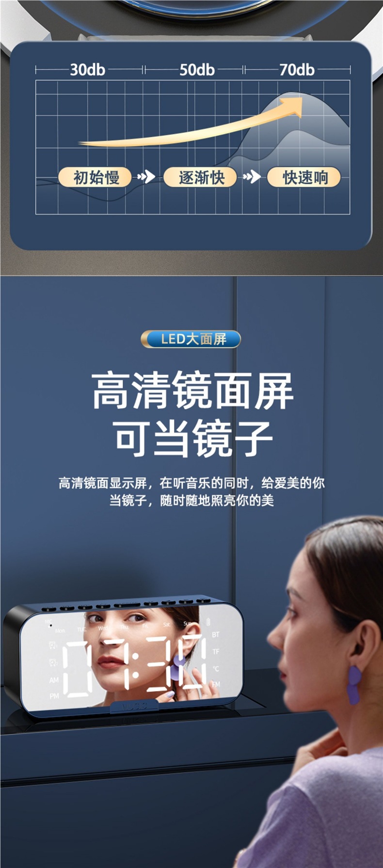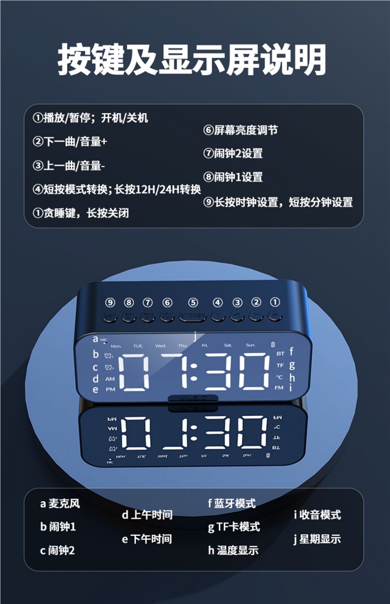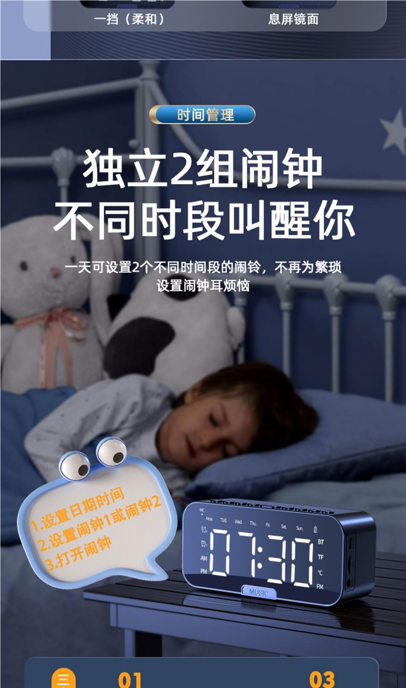 새로운 스마트 블루투스 오디오 전자 다기능 시계 학생 소년과 소녀를위한 알람 시계 무선 소형 스피커