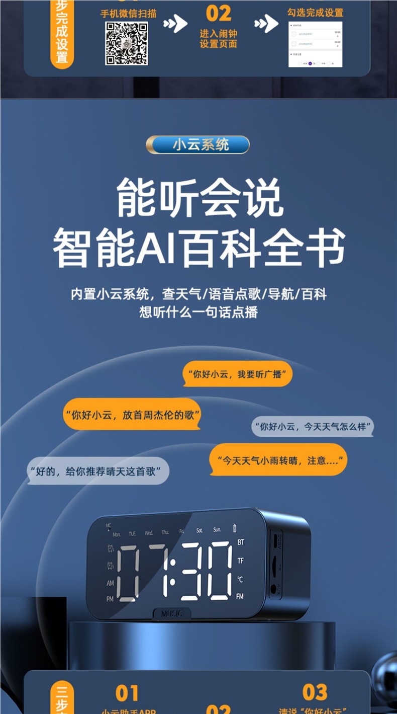 • 화이트 [스마트 버전] 지능형 음성 대화 + 듀얼 알람 시계 + 다중 벨소리 + 블루투스 5.3 + 대용량]
