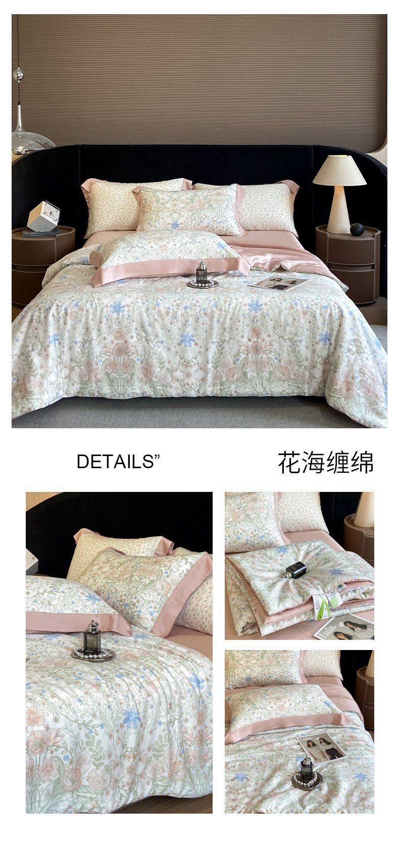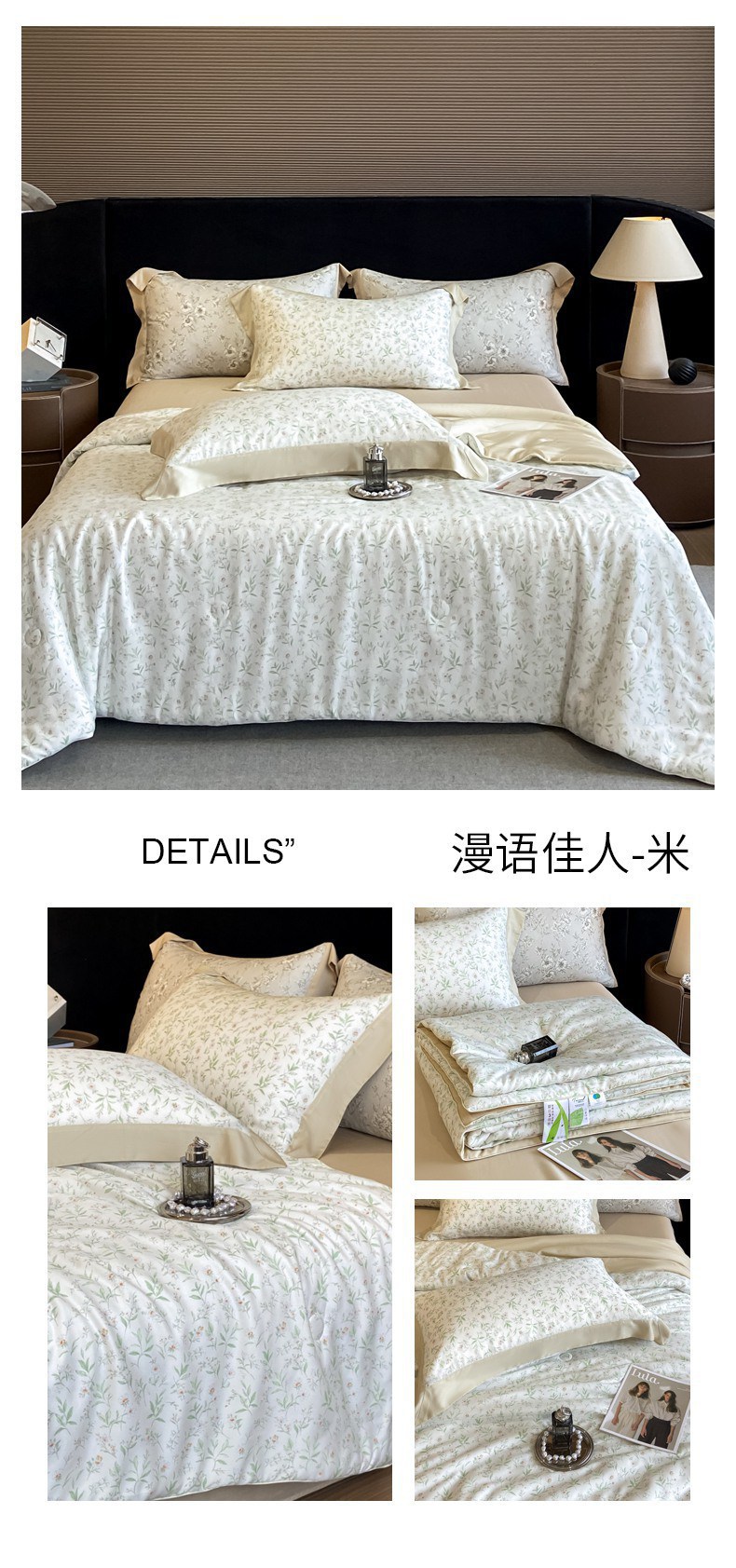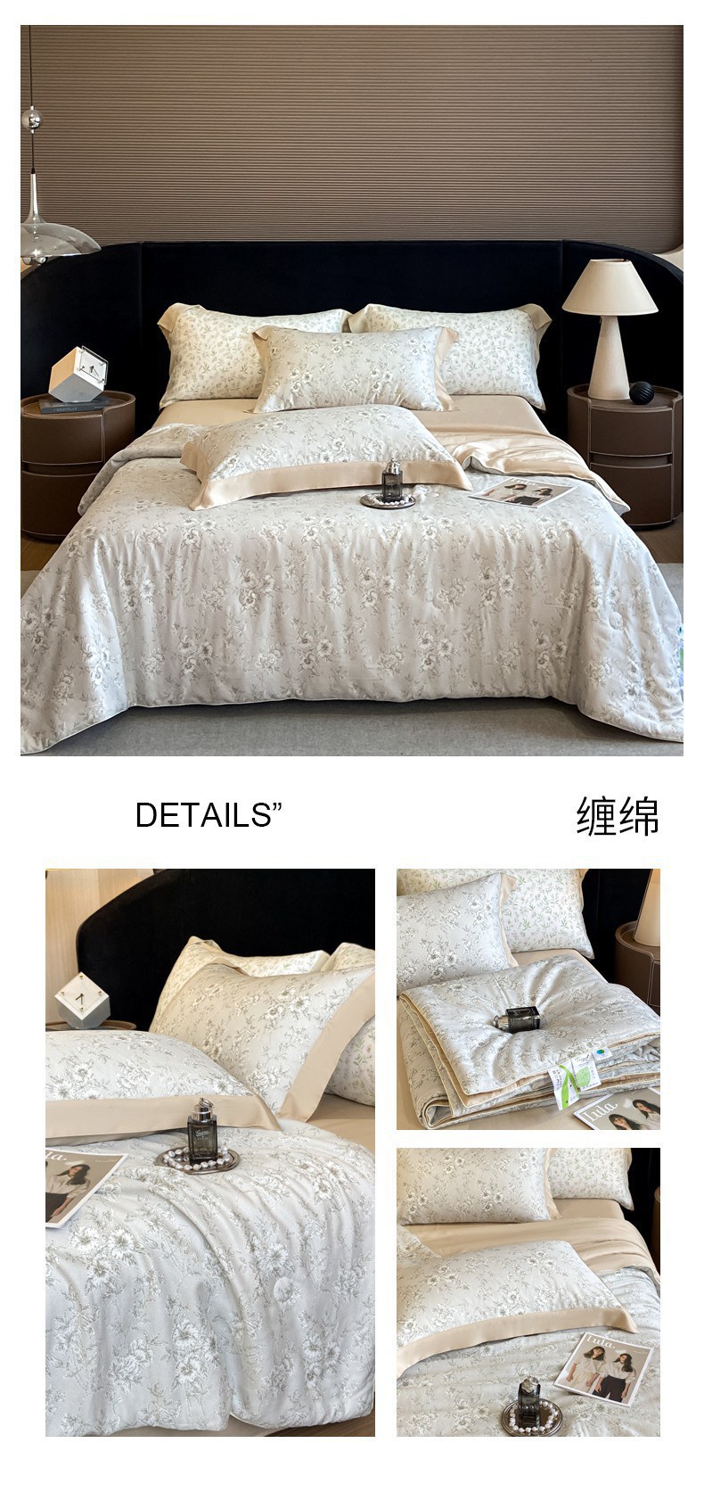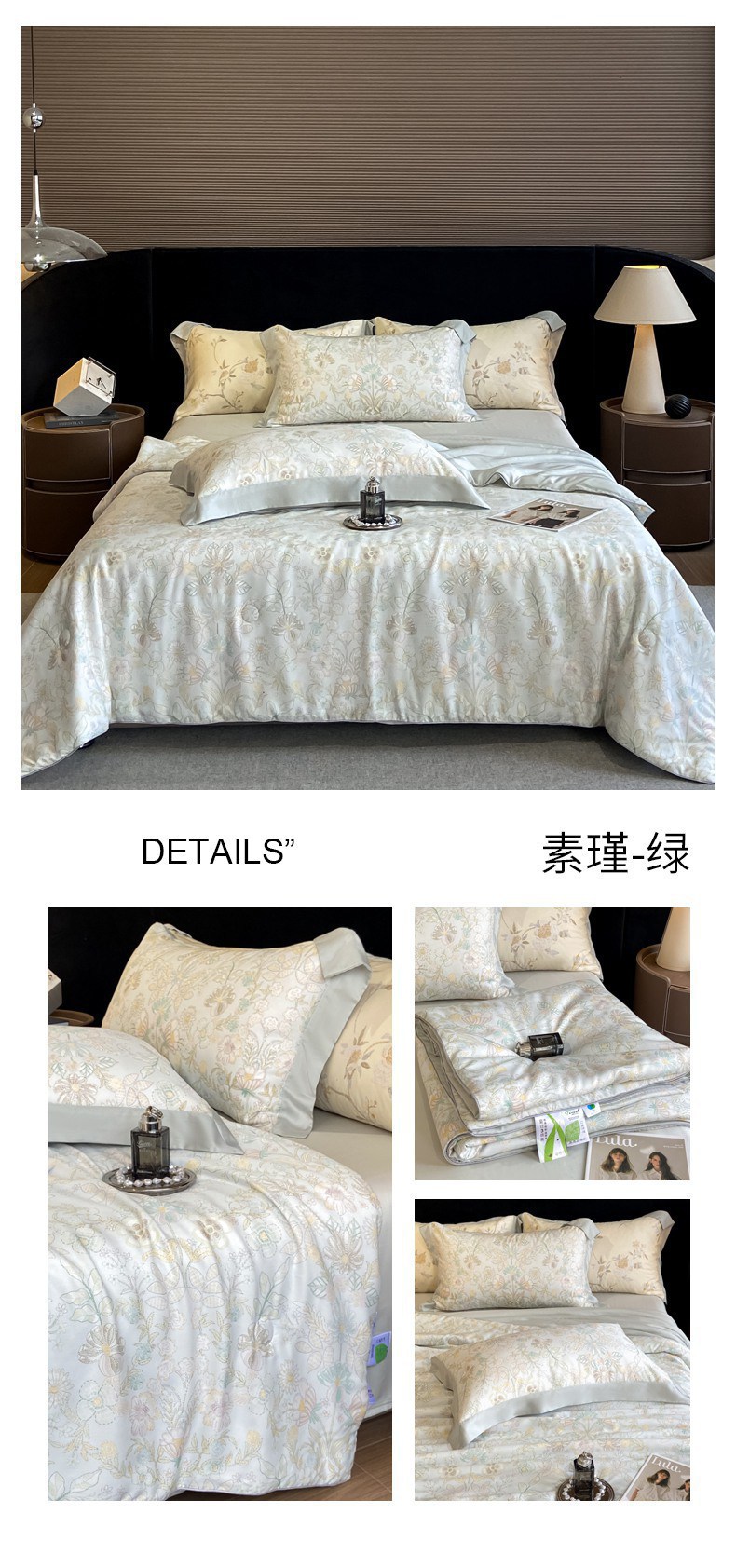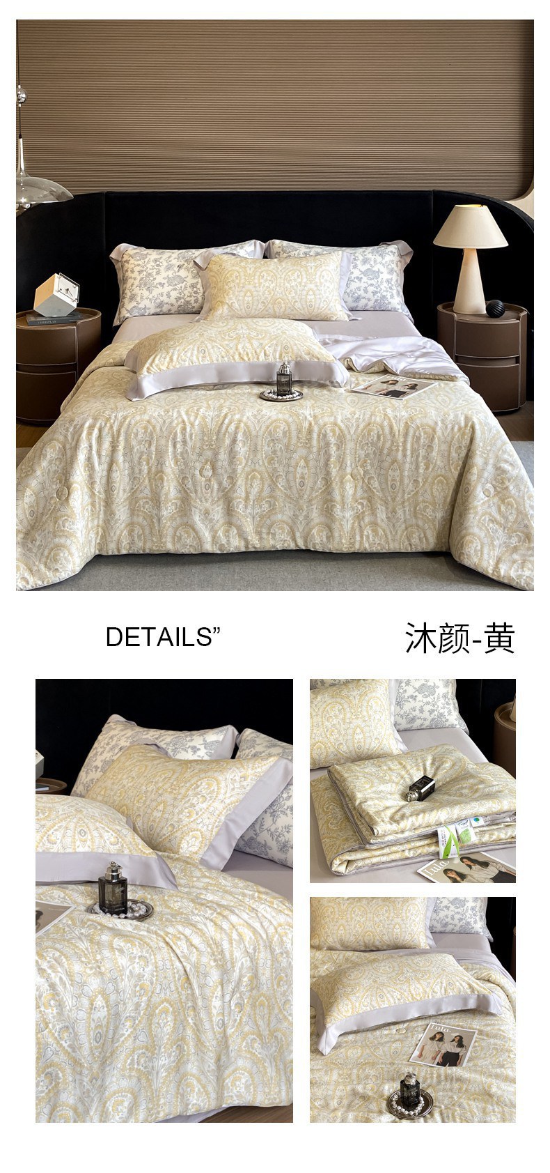 100수 텐셀 여름 시원한 이불 4피스 양면 얼음 실크 시원한 여름 이불 세탁기로 세탁 가능한 에어컨 얇은 이불