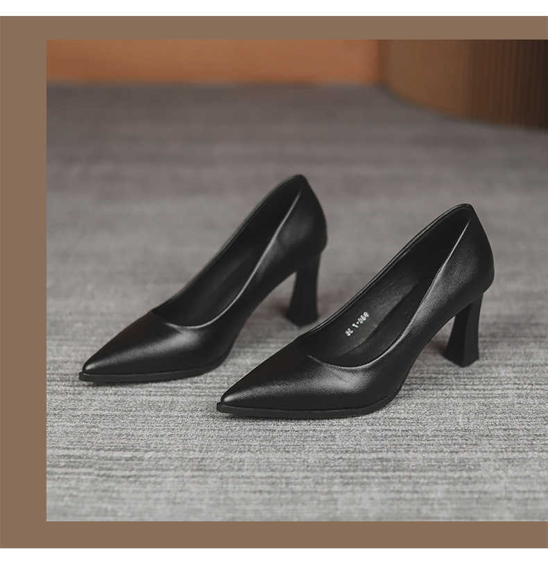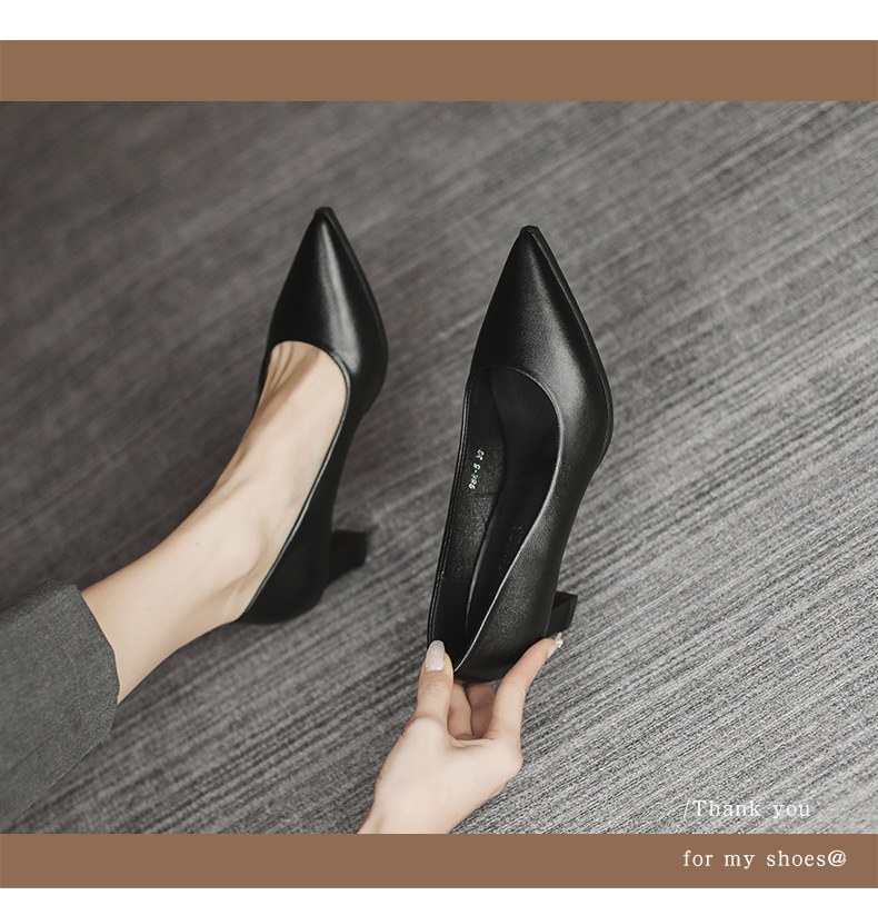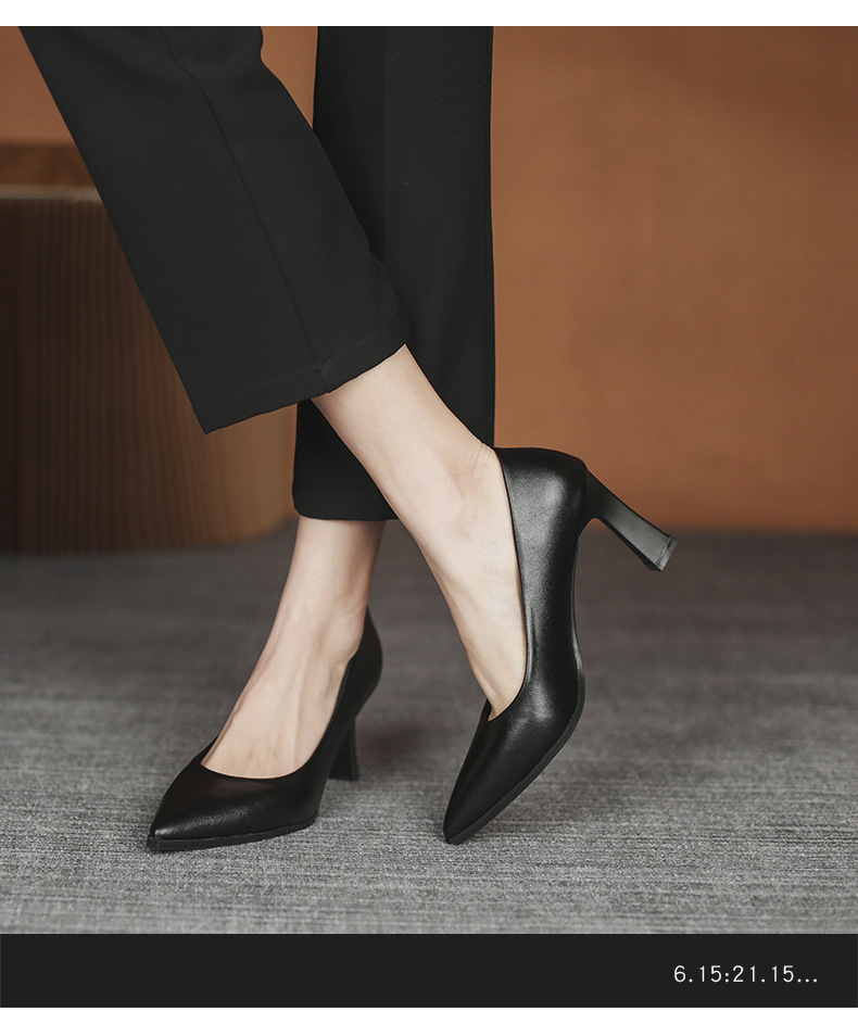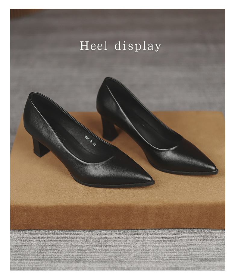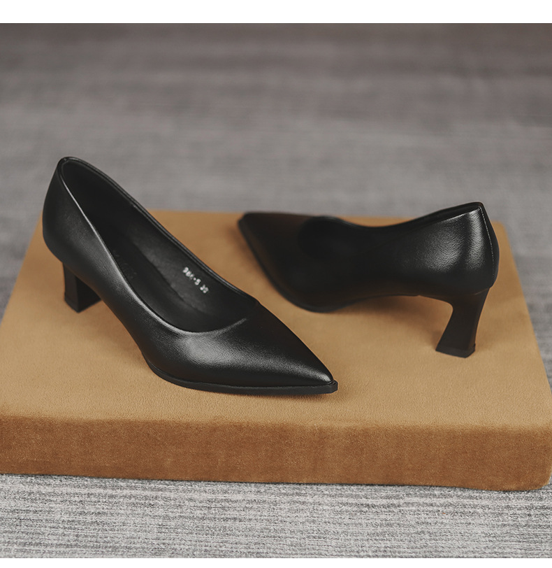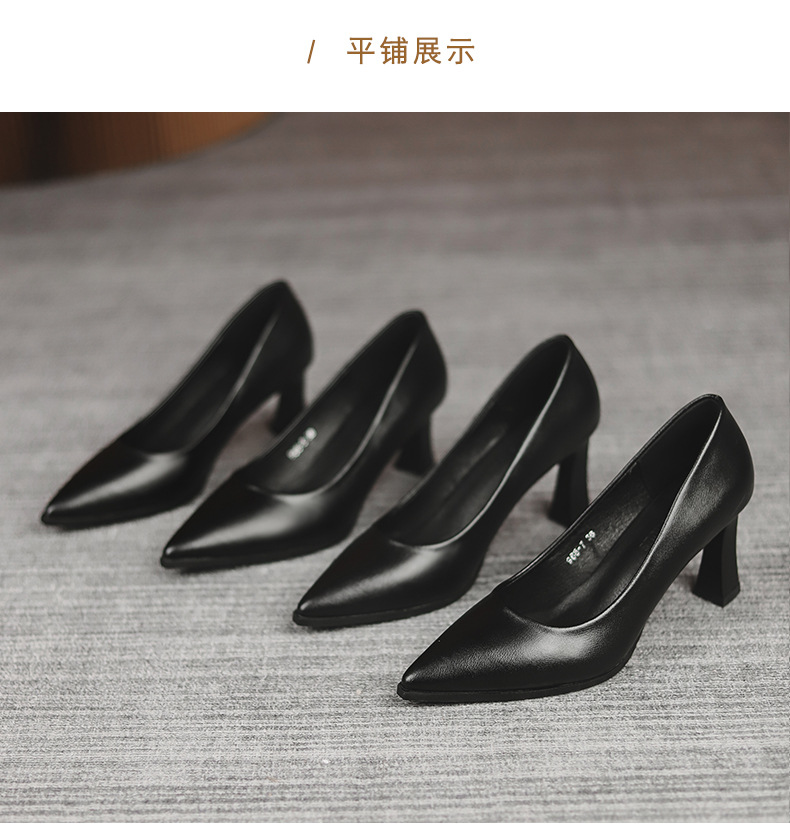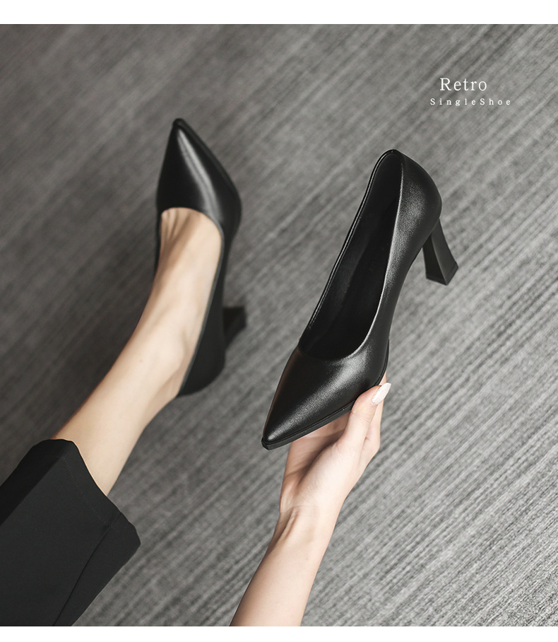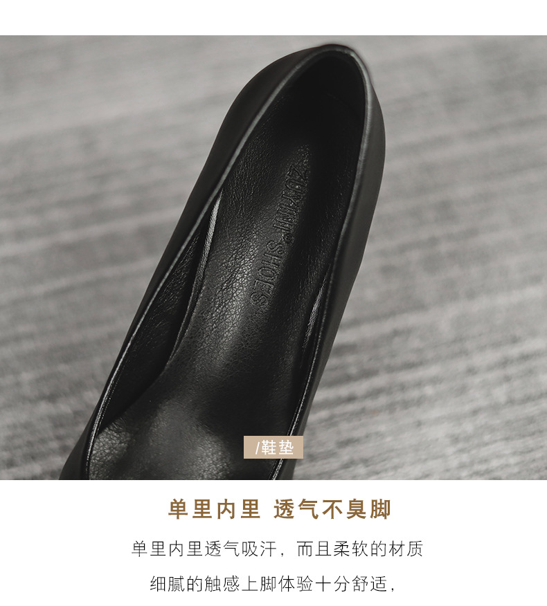스튜어디스 하이힐 에티켓 정장 통근 전문 작업화 면접 부드러운 밑창이 피곤하지 않은 여성용 검은색 작은 굽 가죽 신발스토어 가기