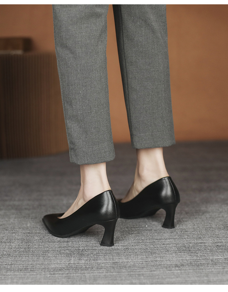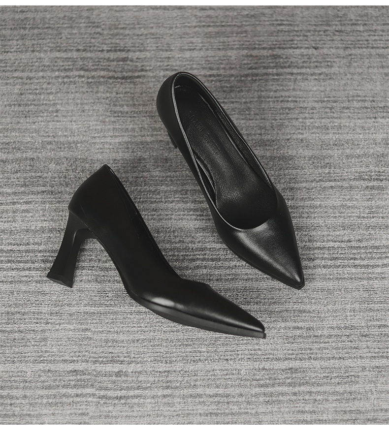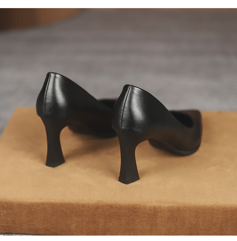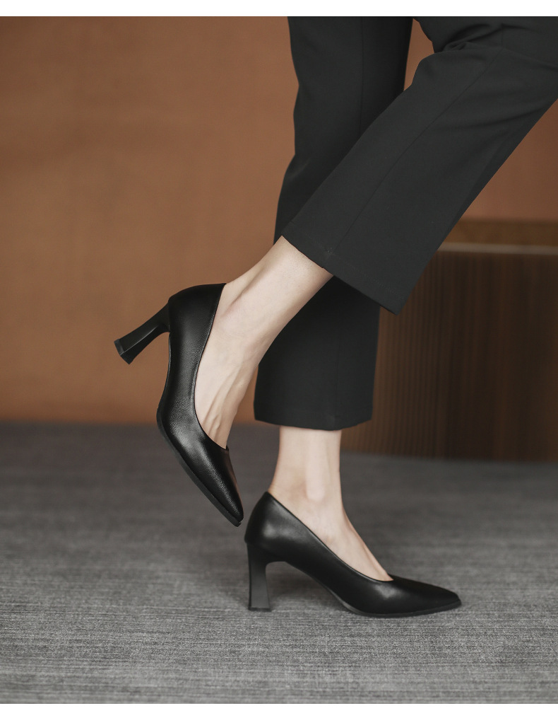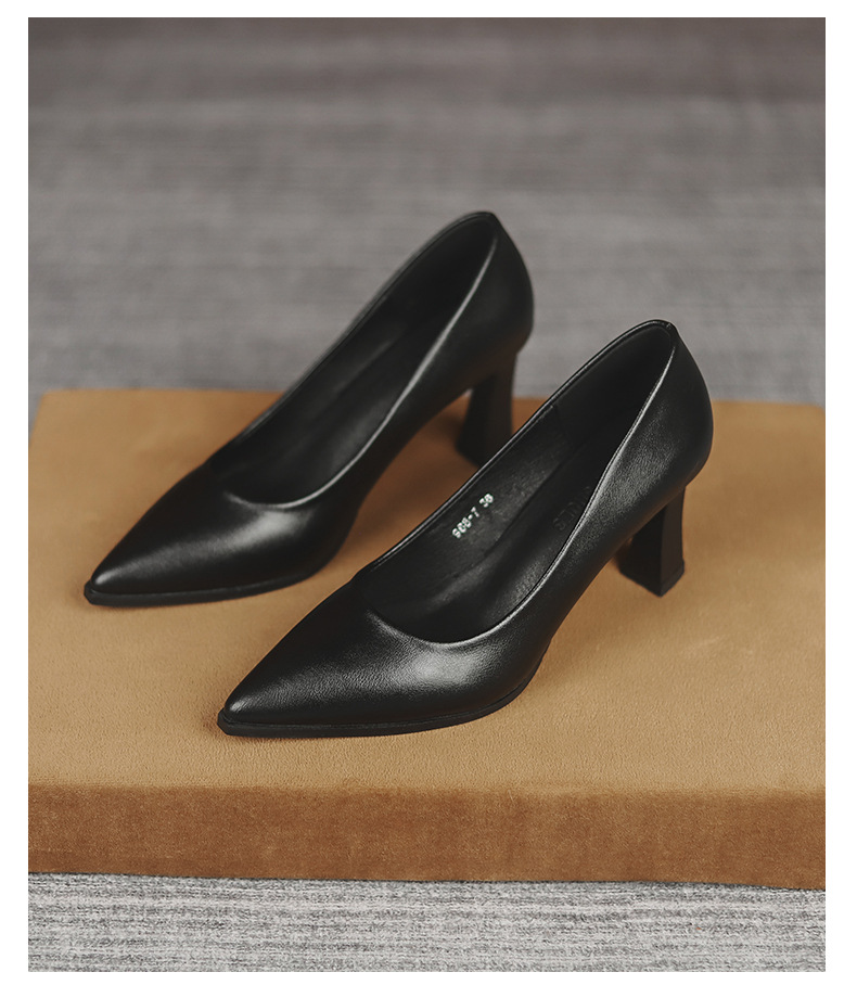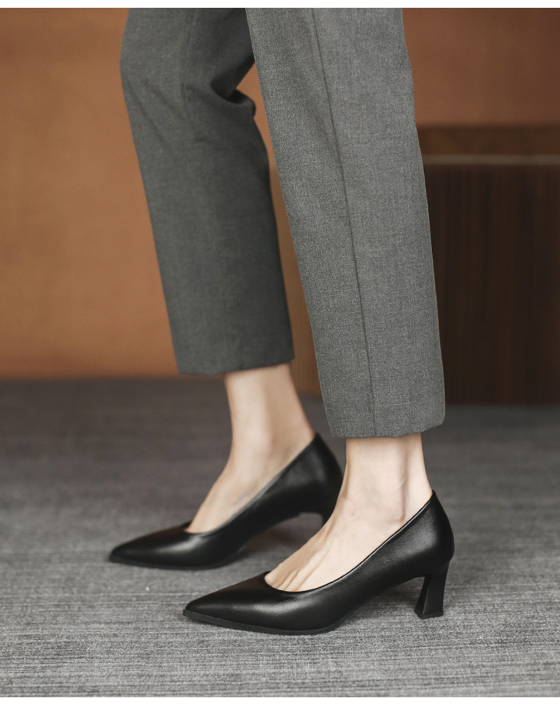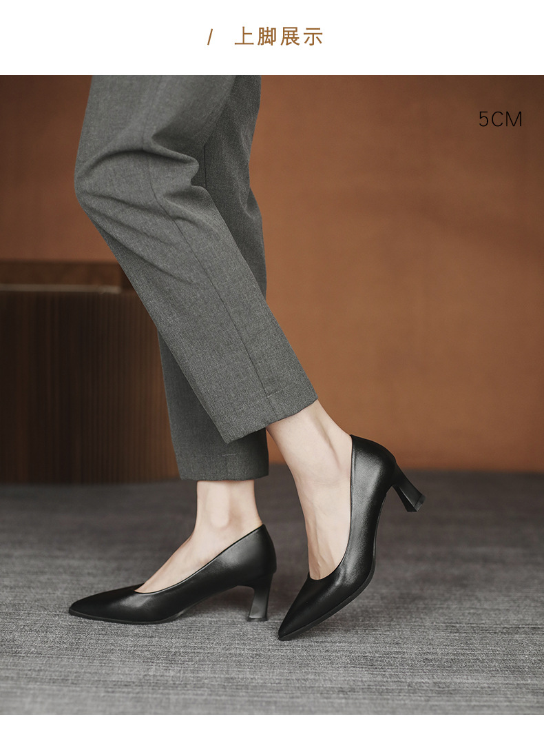 스튜어디스 하이힐 에티켓 정장 통근 전문 작업화 면접 부드러운 밑창이 피곤하지 않은 여성용 검은색 작은 굽 가죽 신발스토어 가기