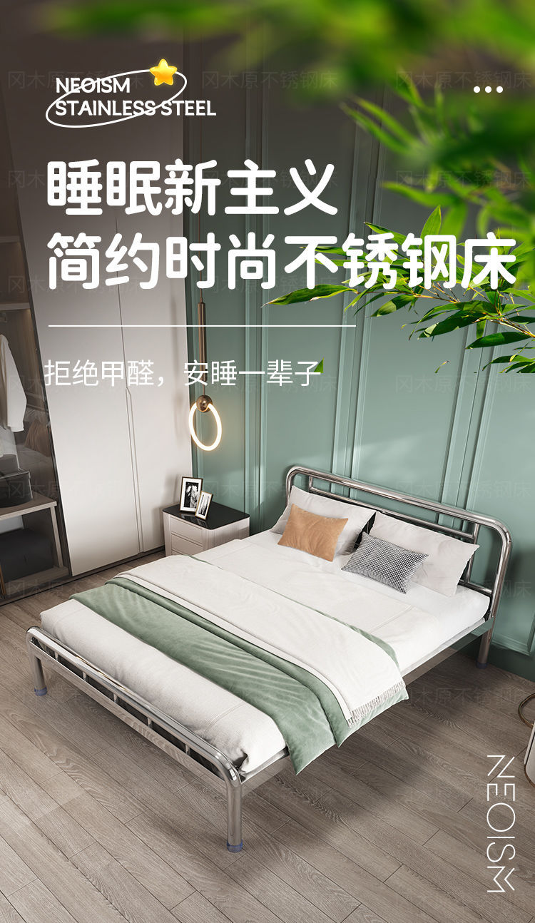 304 스테인레스 스틸 침대 1m 두꺼운 환경 친화적 인 침실 현대 간단한 비 철 알루미늄 합금 침대 프레임 1.8m 더블 침대스토어 가기