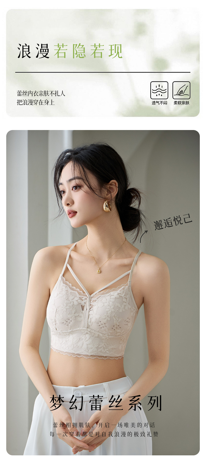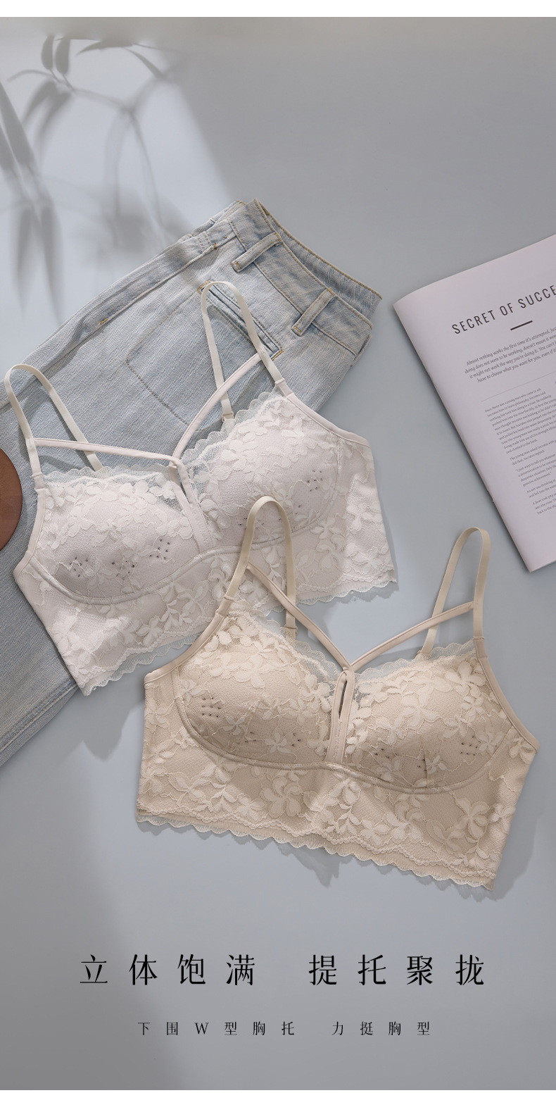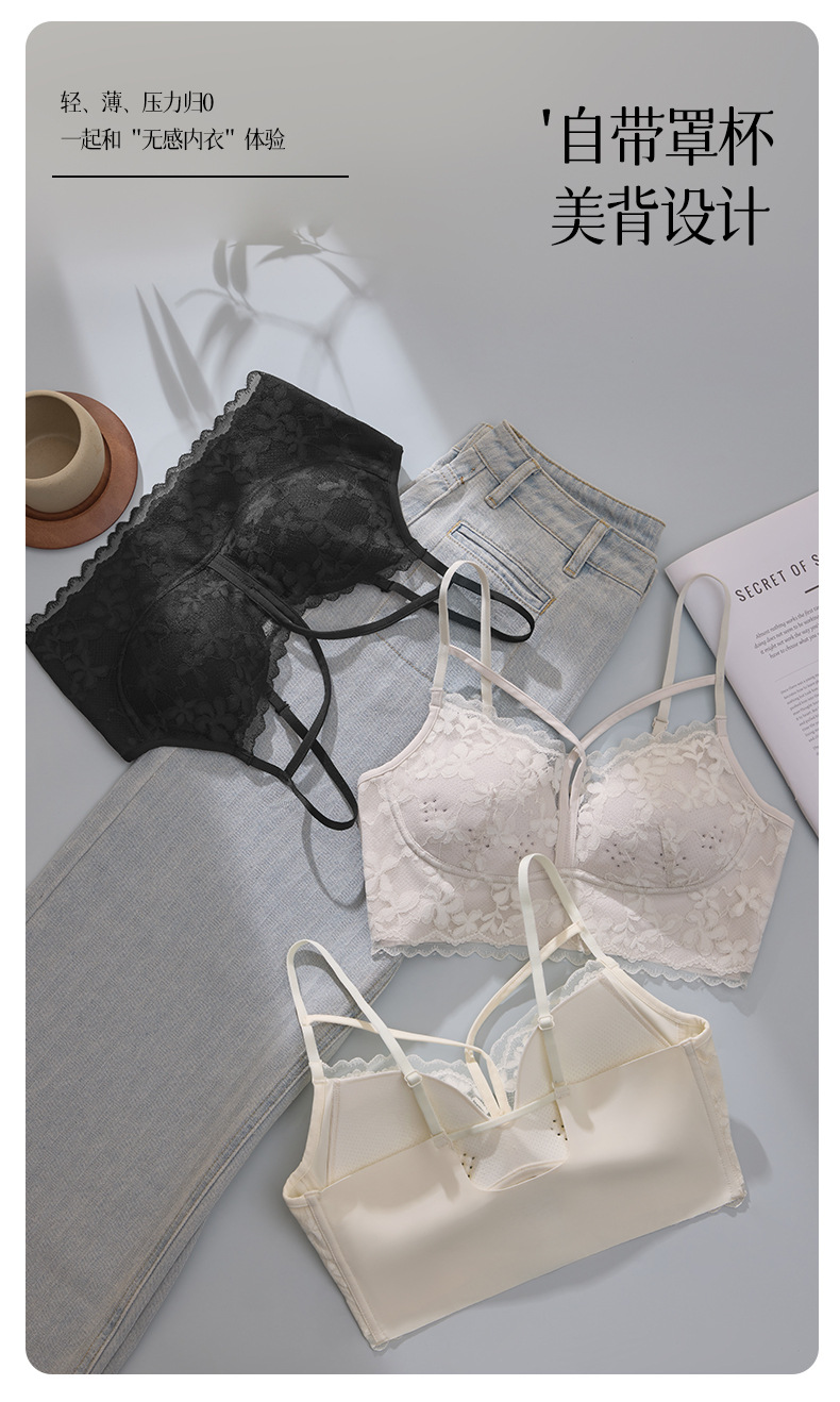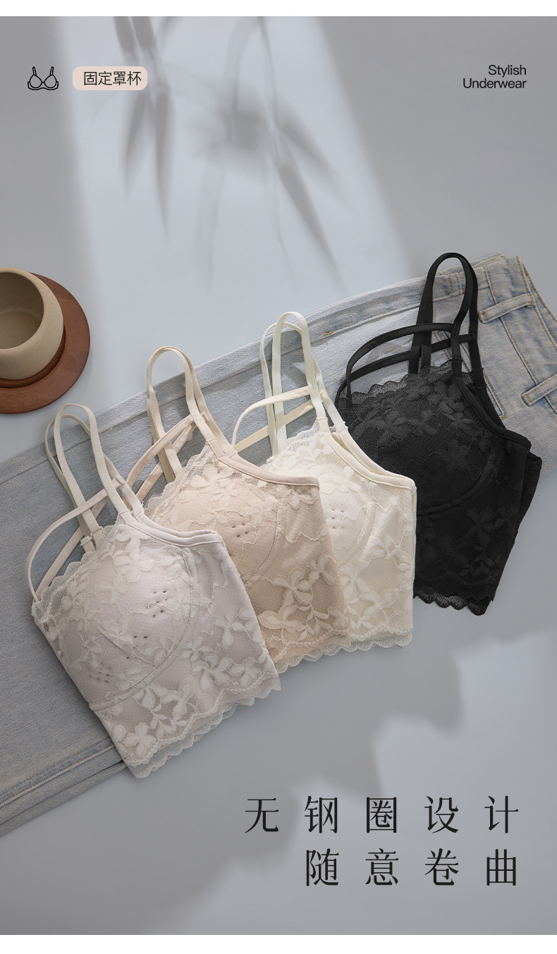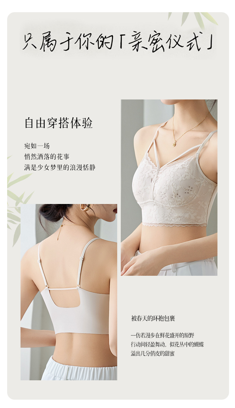 크로스백, 로맨틱하고 고급스러운 진주빛 원사 홀컵, 와이어 프리 가슴 랩 조끼 스타일 여성용 고정 라텍스 컵 속옷스토어 가기