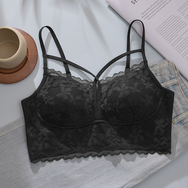 크로스백, 로맨틱하고 고급스러운 진주빛 원사 홀컵, 와이어 프리 가슴 랩 조끼 스타일 여성용 고정 라텍스 컵 속옷