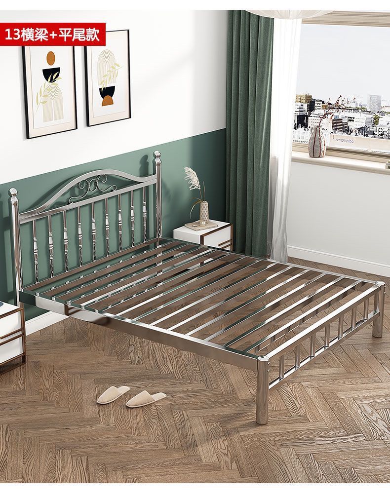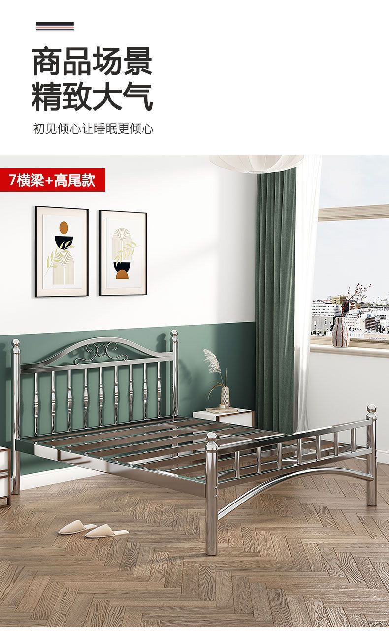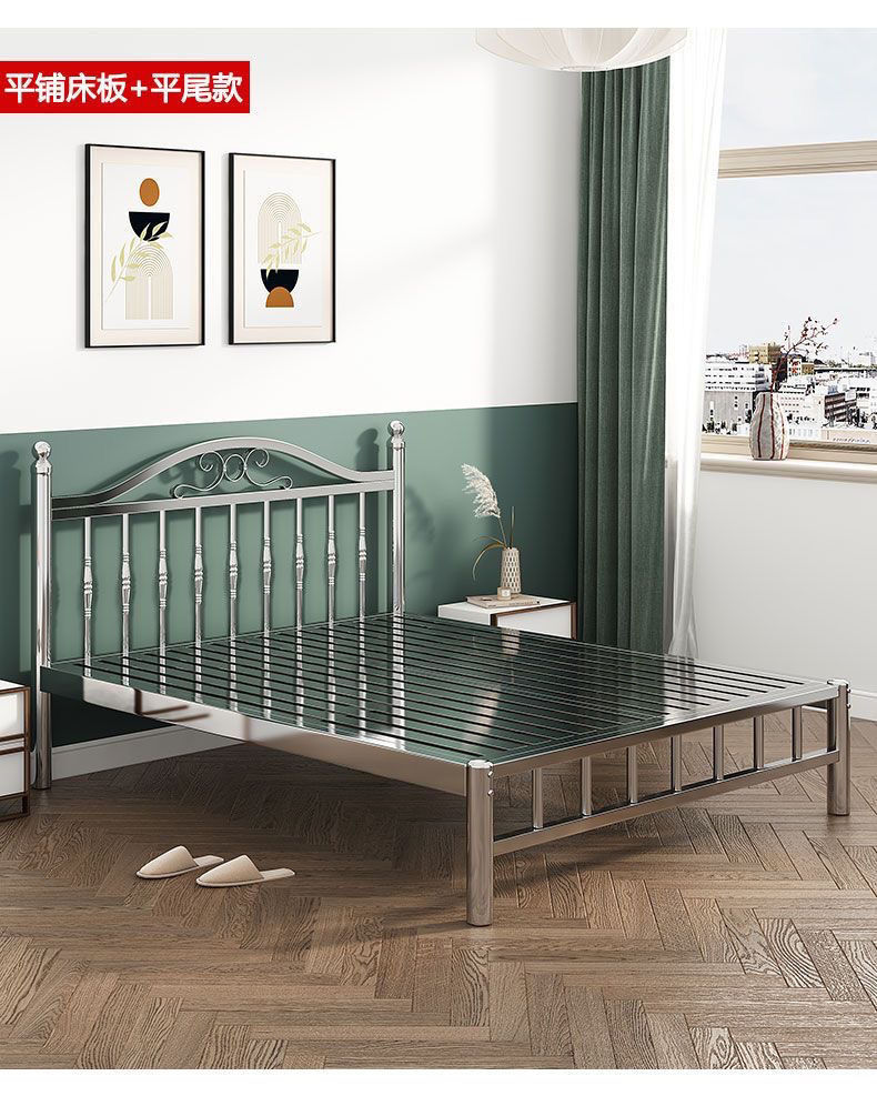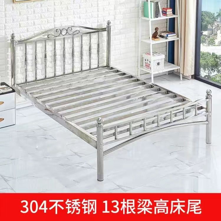 스테인레스 스틸 침대 1.5m 1.8m 철 더블 침대 현대 간단한 유럽 스타일 아파트 침대 304 두꺼운 강철 프레임 침대스토어 가기