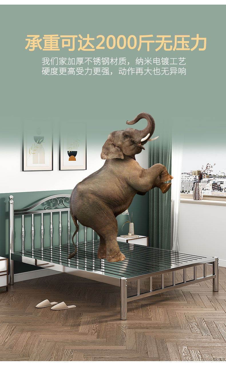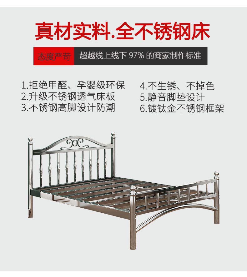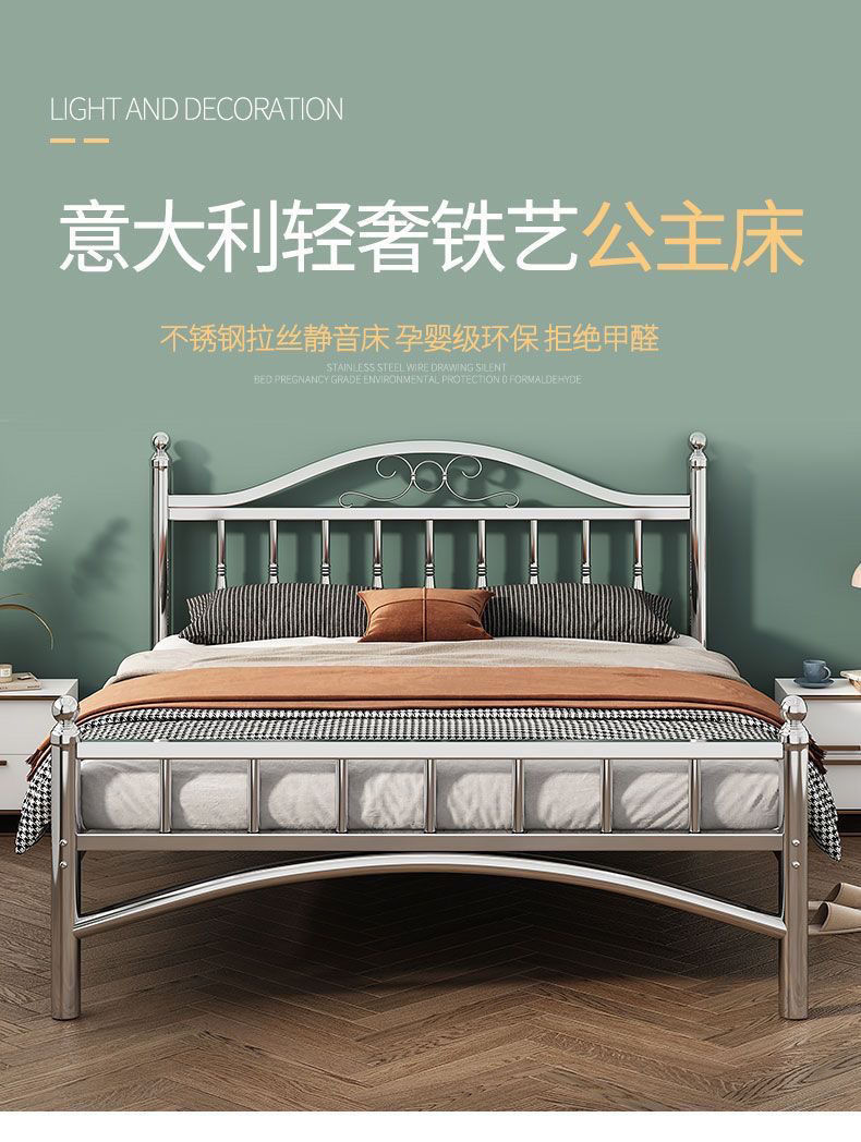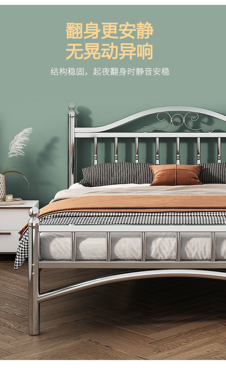 스테인레스 스틸 침대 1.5m 1.8m 철 더블 침대 현대 간단한 유럽 스타일 아파트 침대 304 두꺼운 강철 프레임 침대스토어 가기