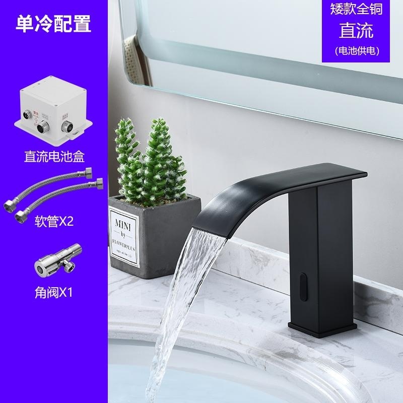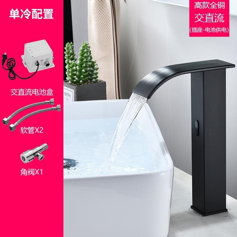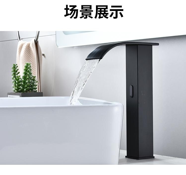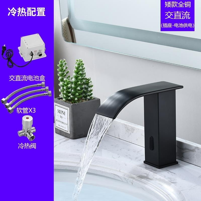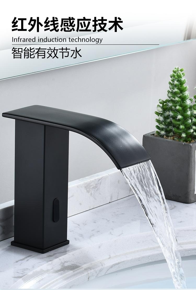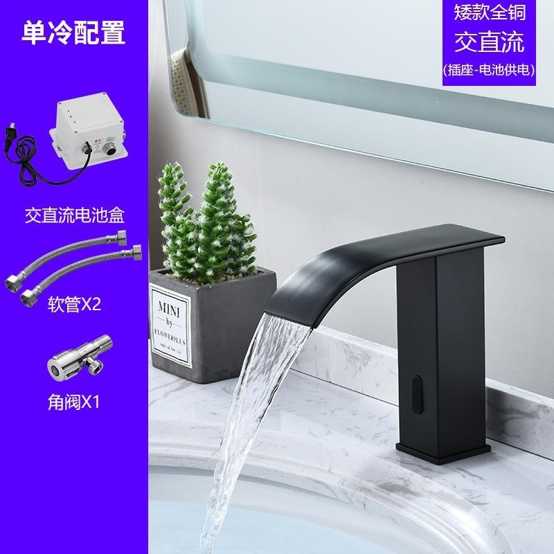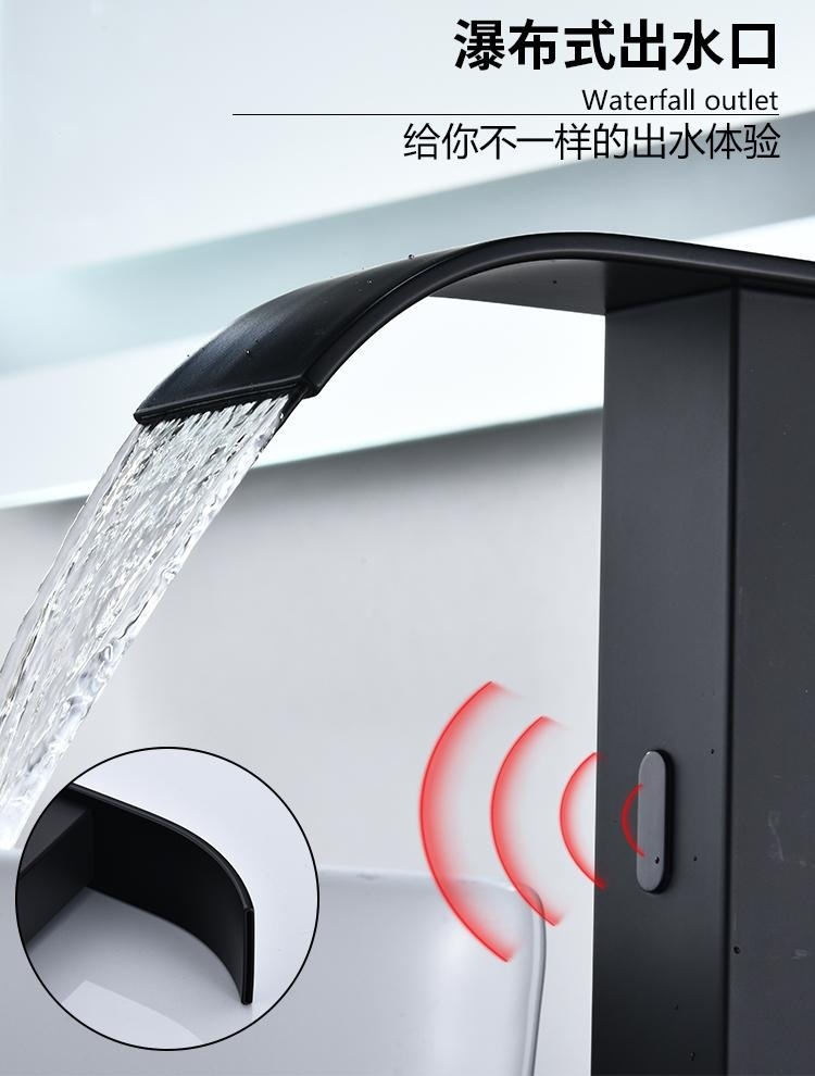 스마트 북유럽 폭포 유도 수도꼭지 검정색 완전 자동 유도 단일 냉수 세면대 냉온수기