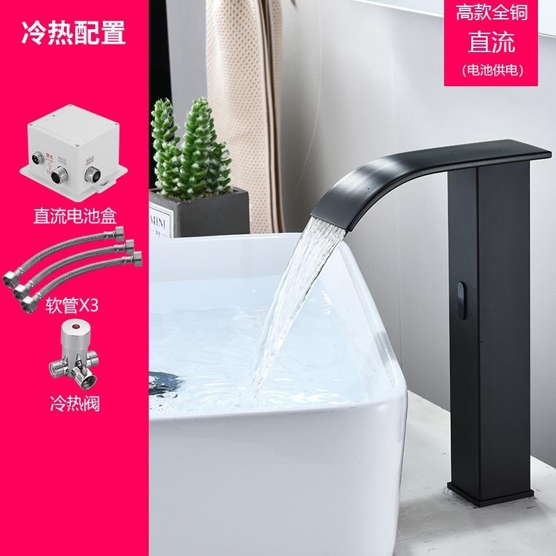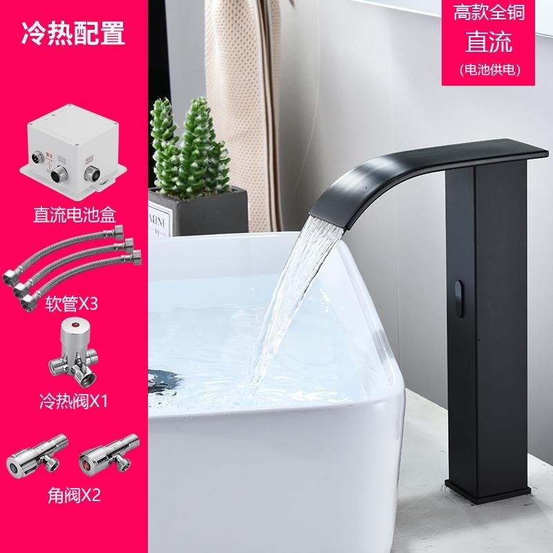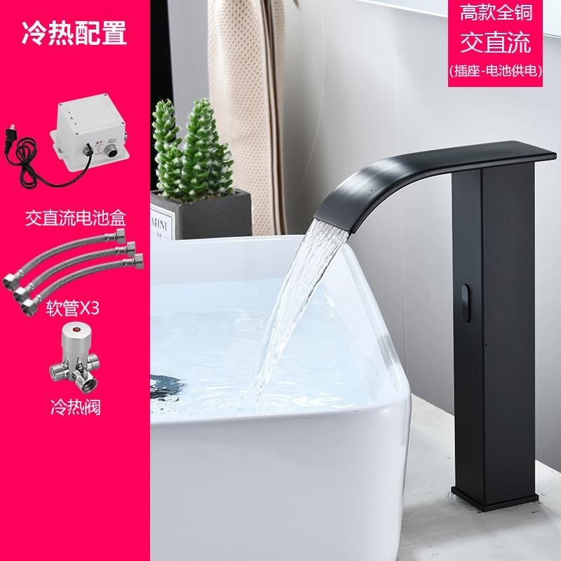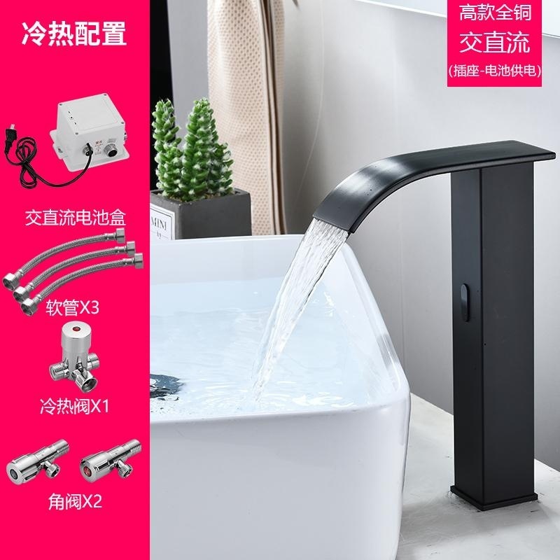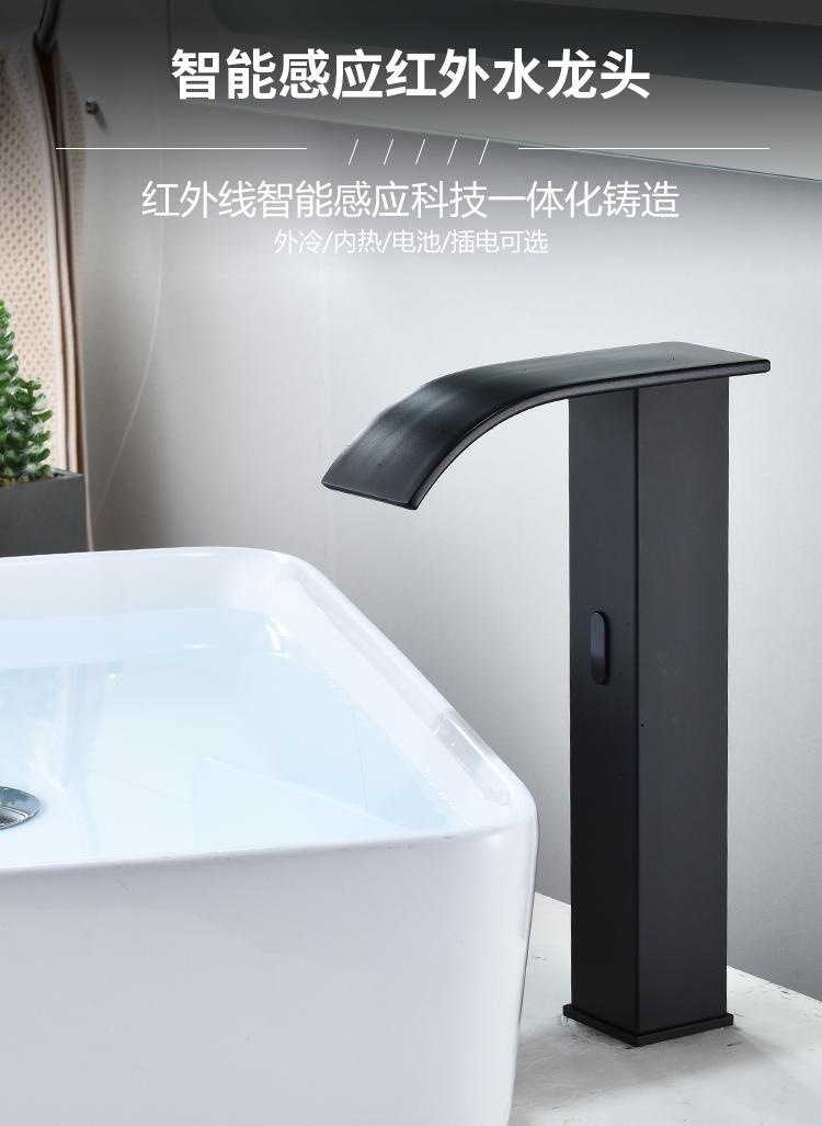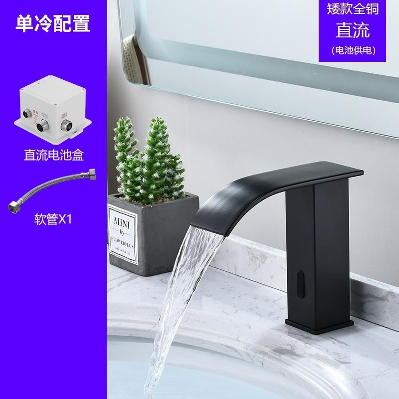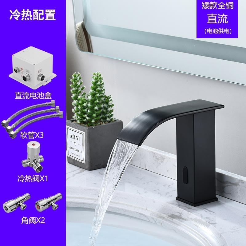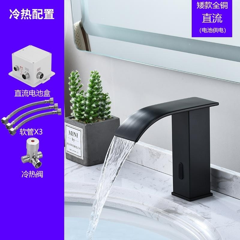 스마트 북유럽 폭포 유도 수도꼭지 검정색 완전 자동 유도 단일 냉수 세면대 냉온수기