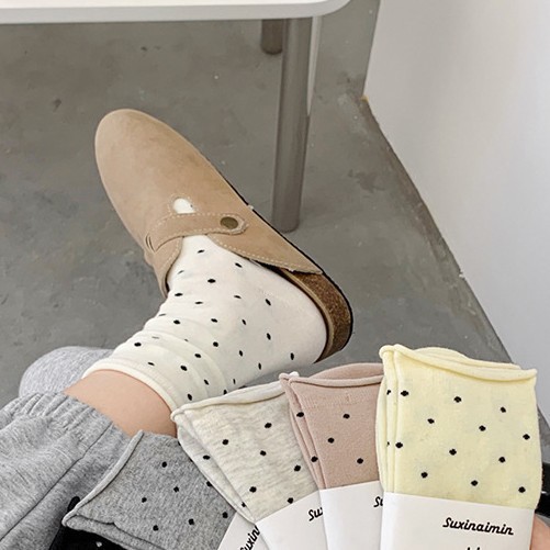 양말 여성 컬링 도트 미드 튜브 인 트렌디 코튼 양말 봄, 가을 일본식 jk 양말 학생 봄, 여름 스타킹스토어 가기