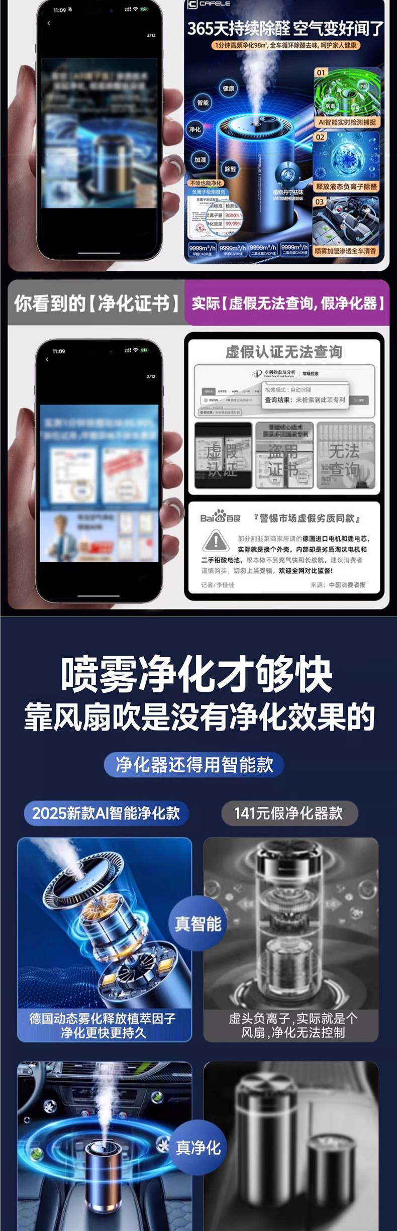 • [향상된 스타일] 상쾌한 바다◆지능형 정화 및 가습◆차와 함께 시작하고 멈추세요◆포름알데히드 제거, 냄새 제거, 공기 청정