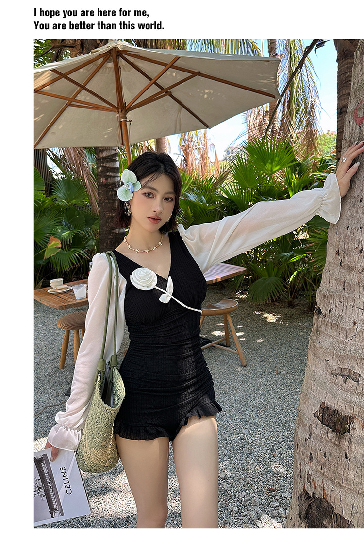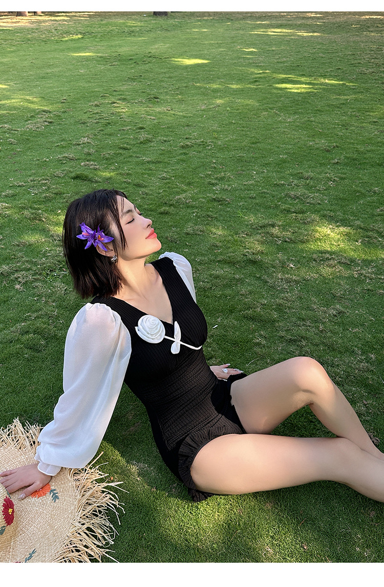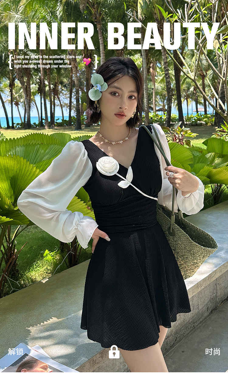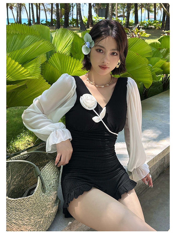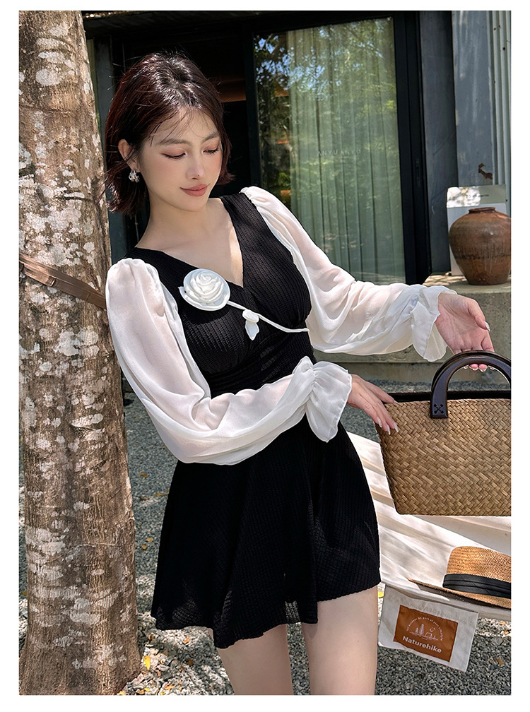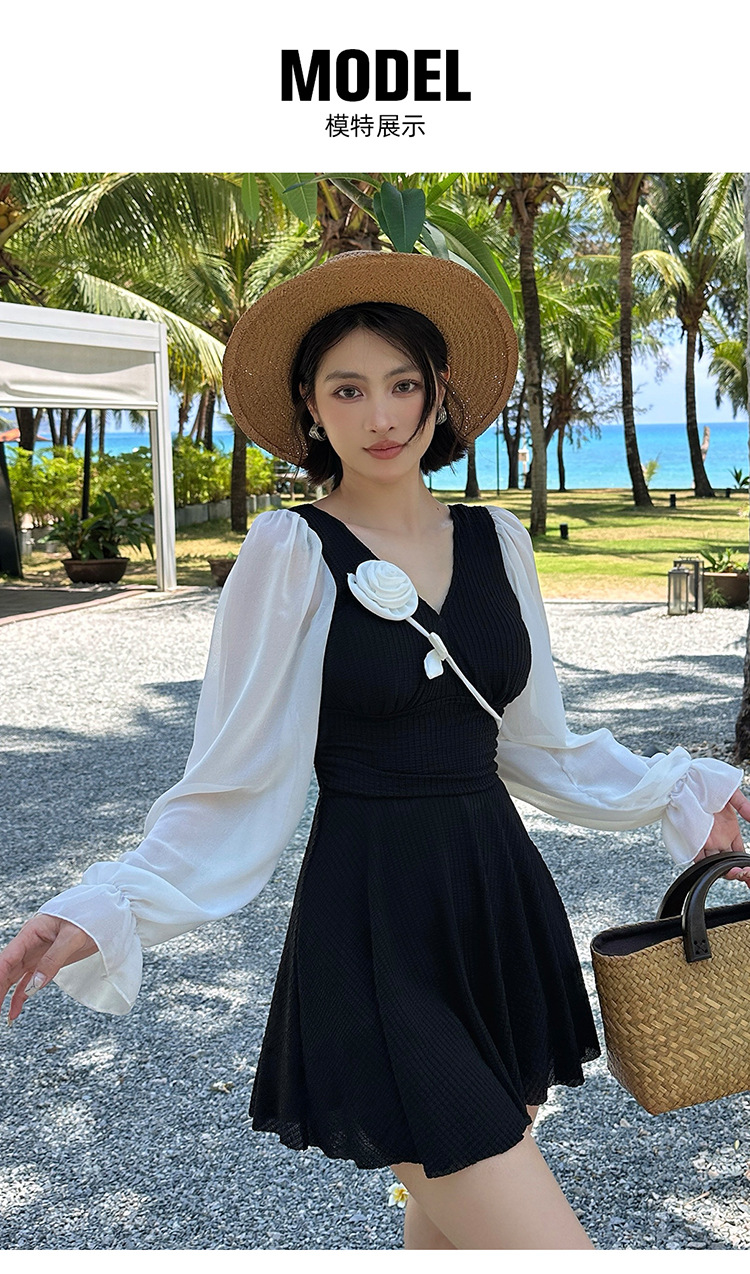 플러스 사이즈 수영복 여성용 살 커버 및 슬리밍 프렌치 수영 스커트 원피스 수영복 긴팔 지방 mm 여성용 온천 수영복 투피스 세트