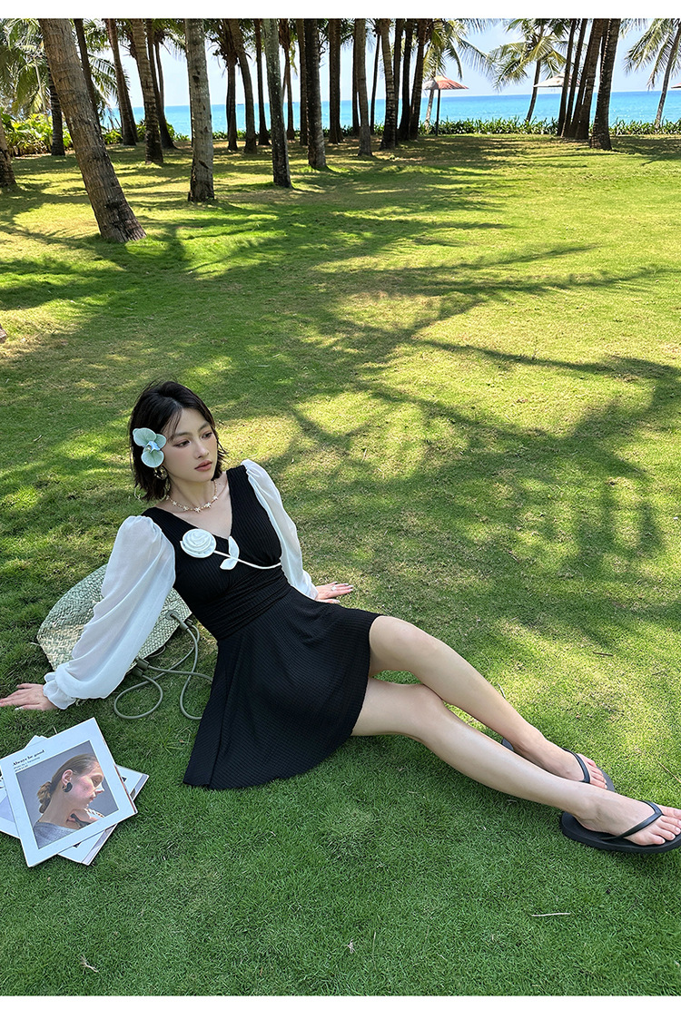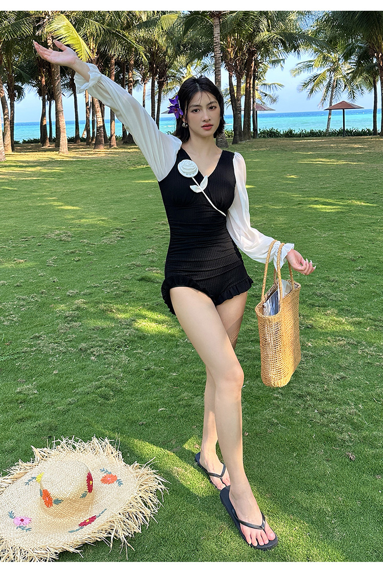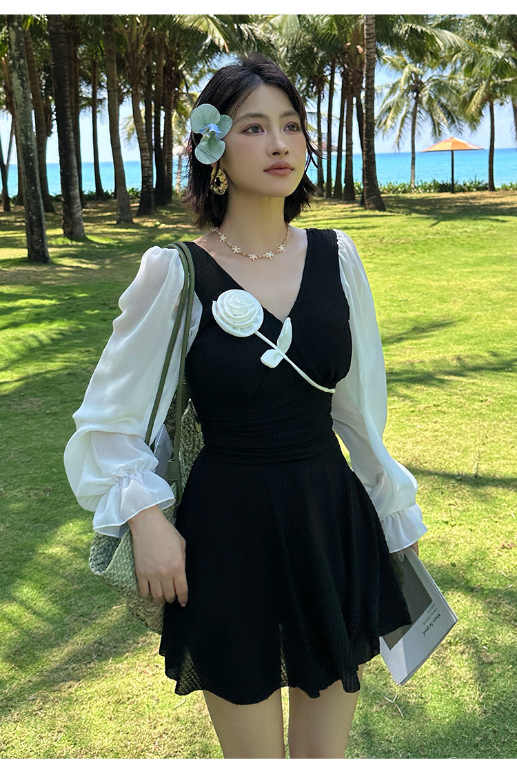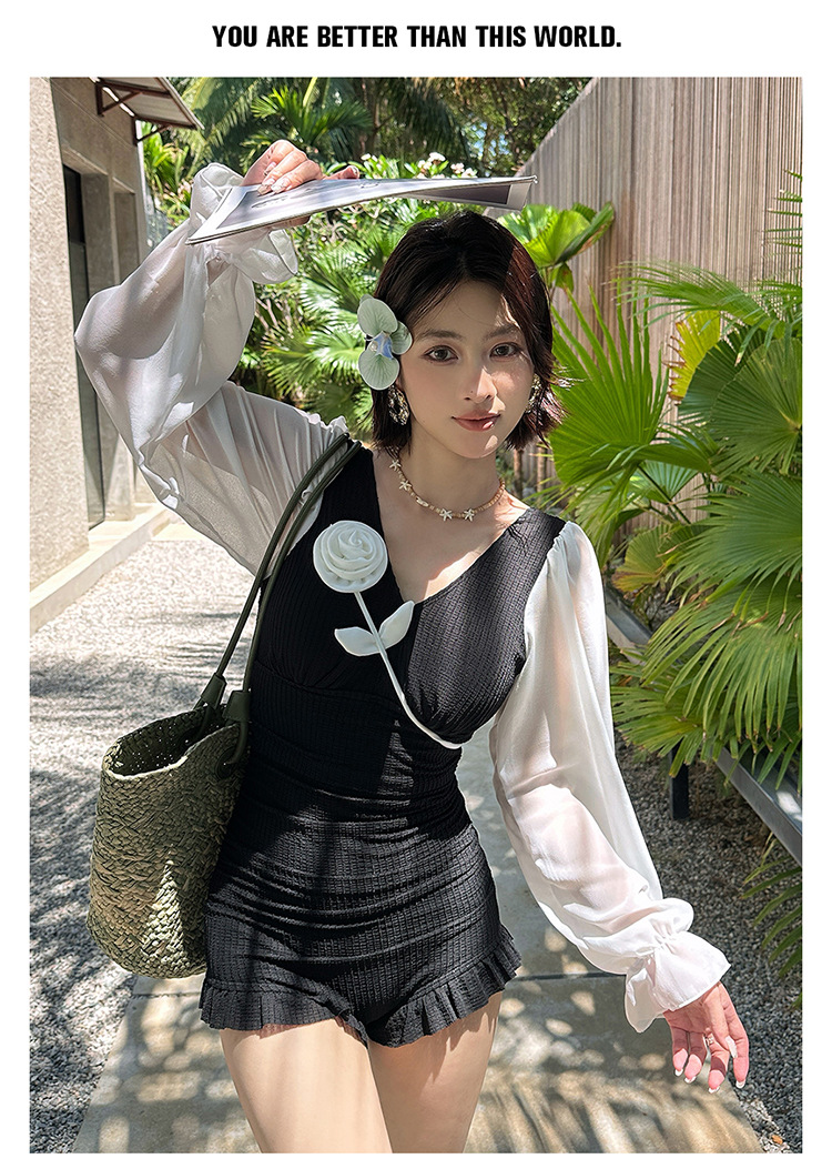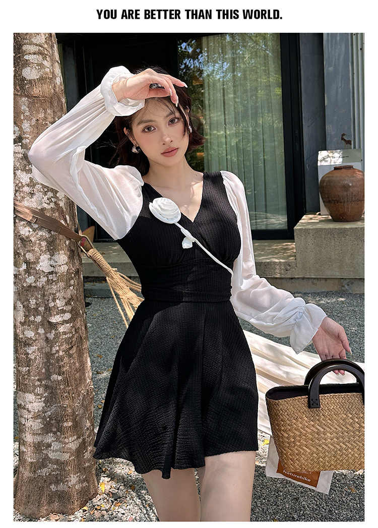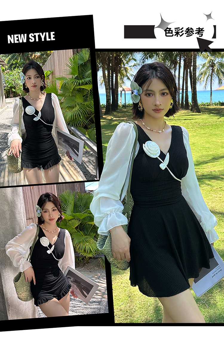 플러스 사이즈 수영복 여성용 살 커버 및 슬리밍 프렌치 수영 스커트 원피스 수영복 긴팔 지방 mm 여성용 온천 수영복 투피스 세트