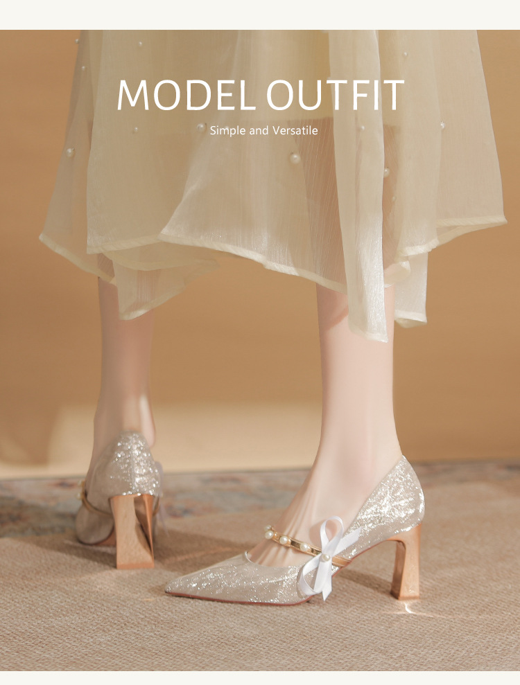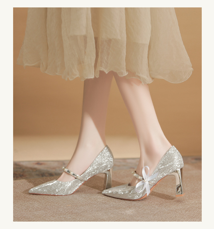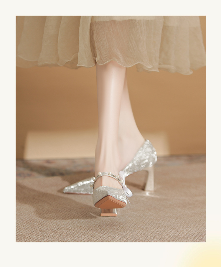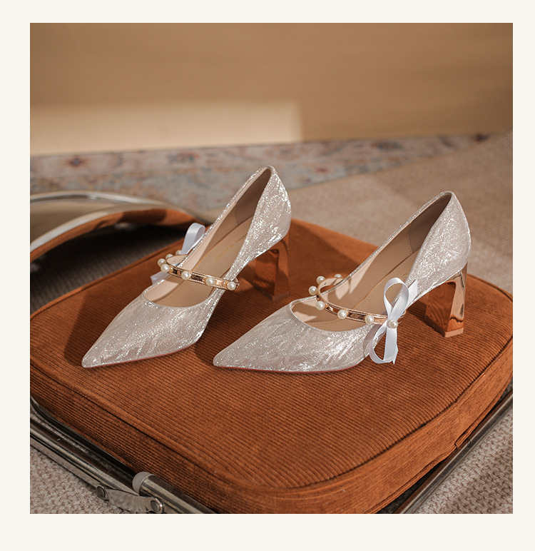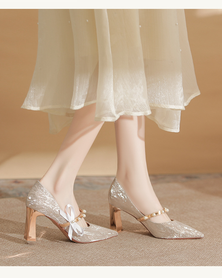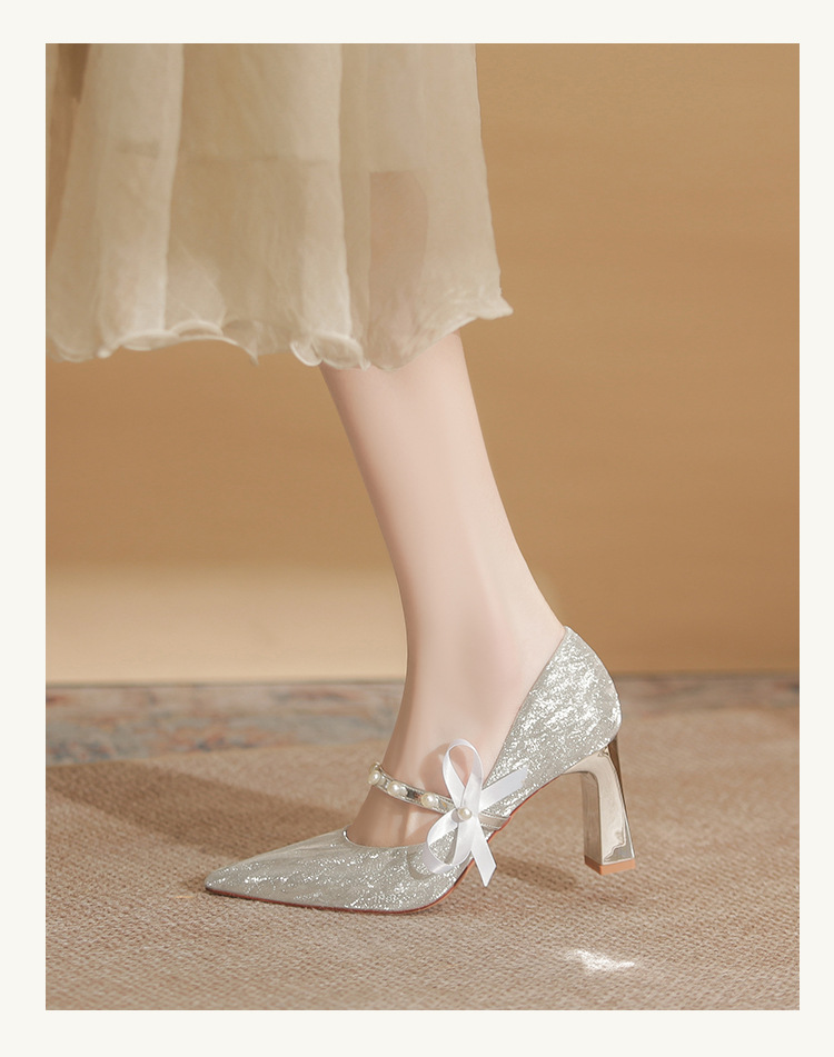 피곤하지 않은 두꺼운 굽 하이힐, 웨딩드레스, 여성용 웨딩슈즈, 샤오허 프렌치 스파클링 크리스탈 신부 들러리 신부 슈즈 투웨어