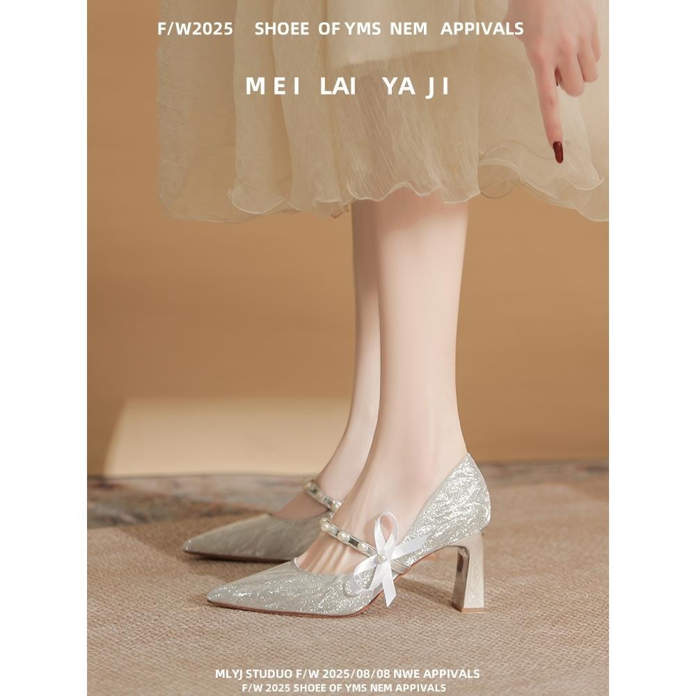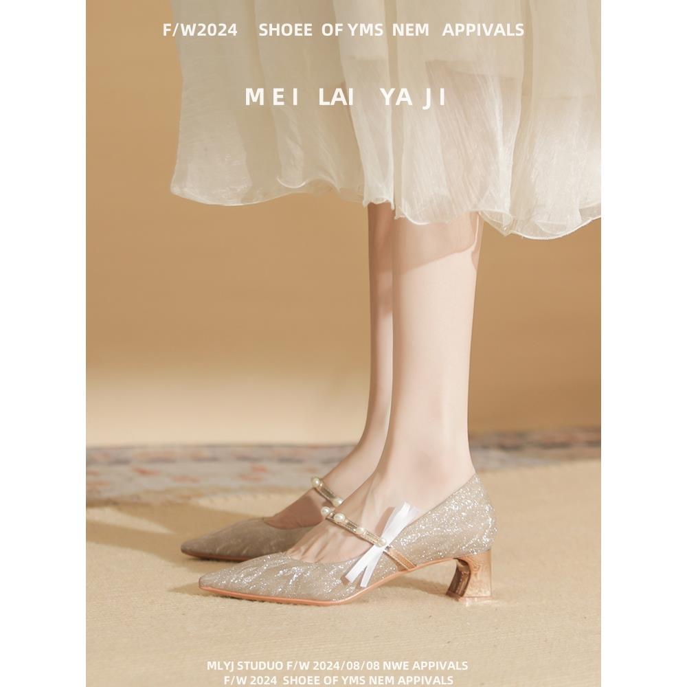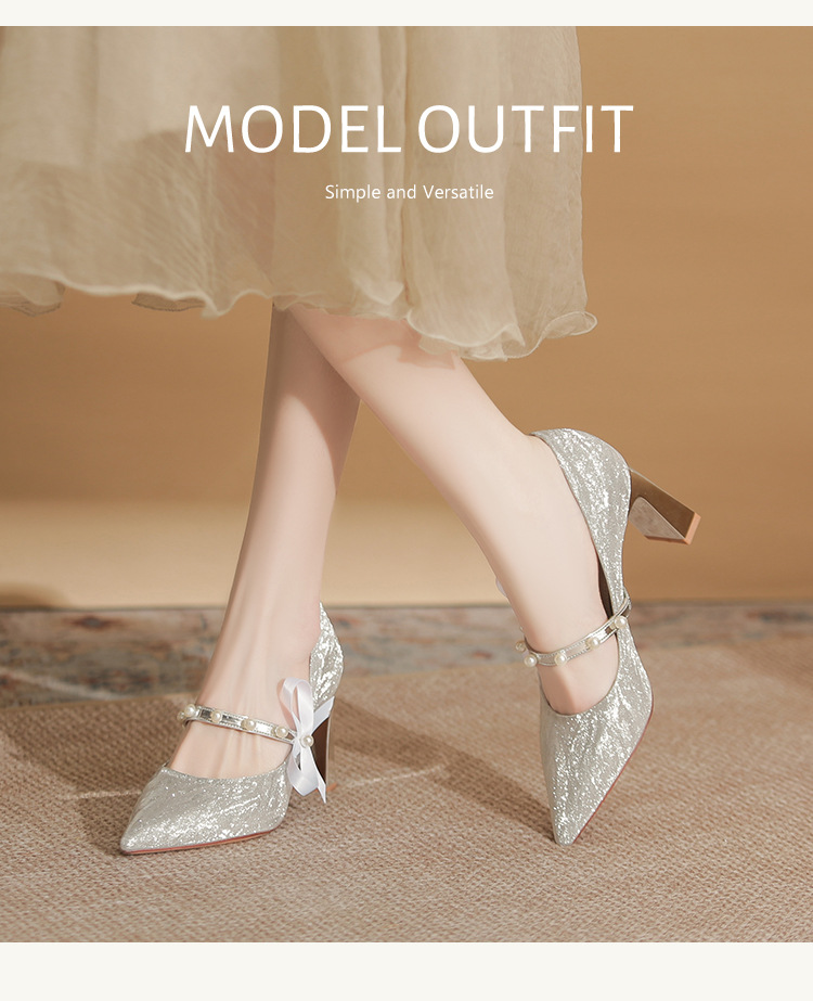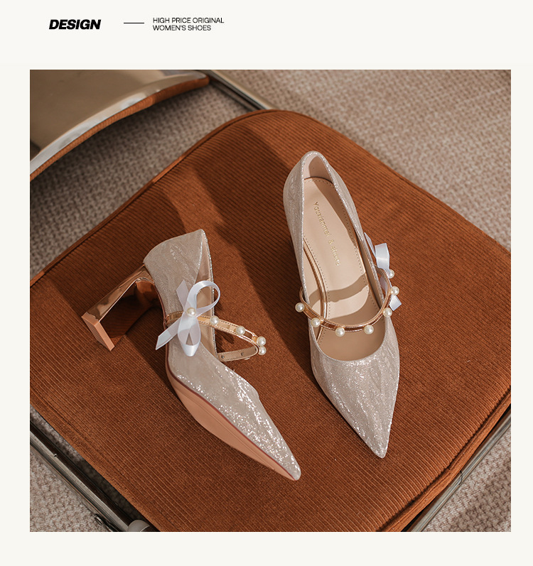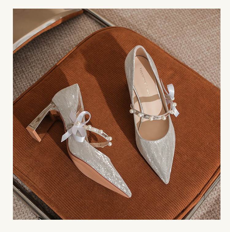 피곤하지 않은 두꺼운 굽 하이힐, 웨딩드레스, 여성용 웨딩슈즈, 샤오허 프렌치 스파클링 크리스탈 신부 들러리 신부 슈즈 투웨어