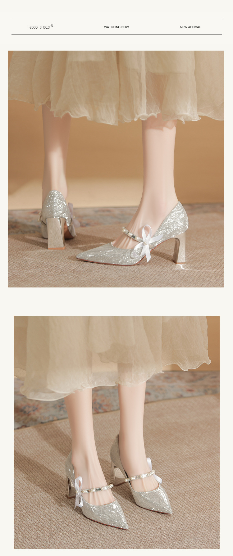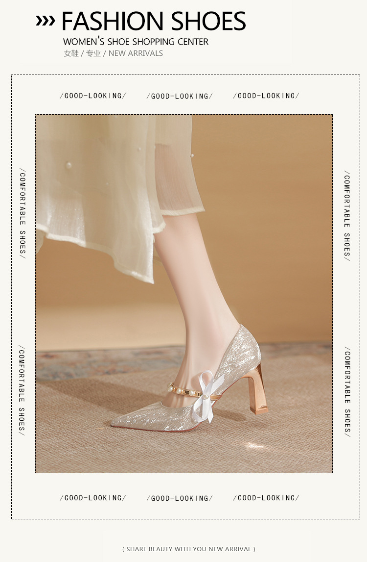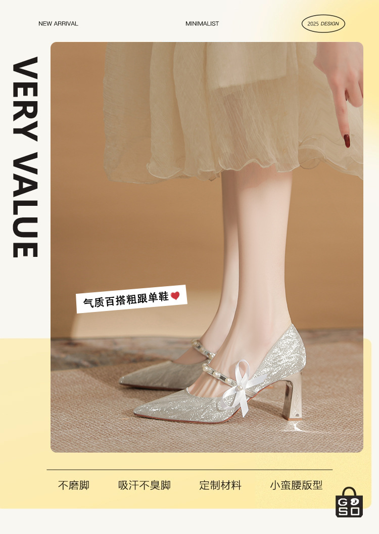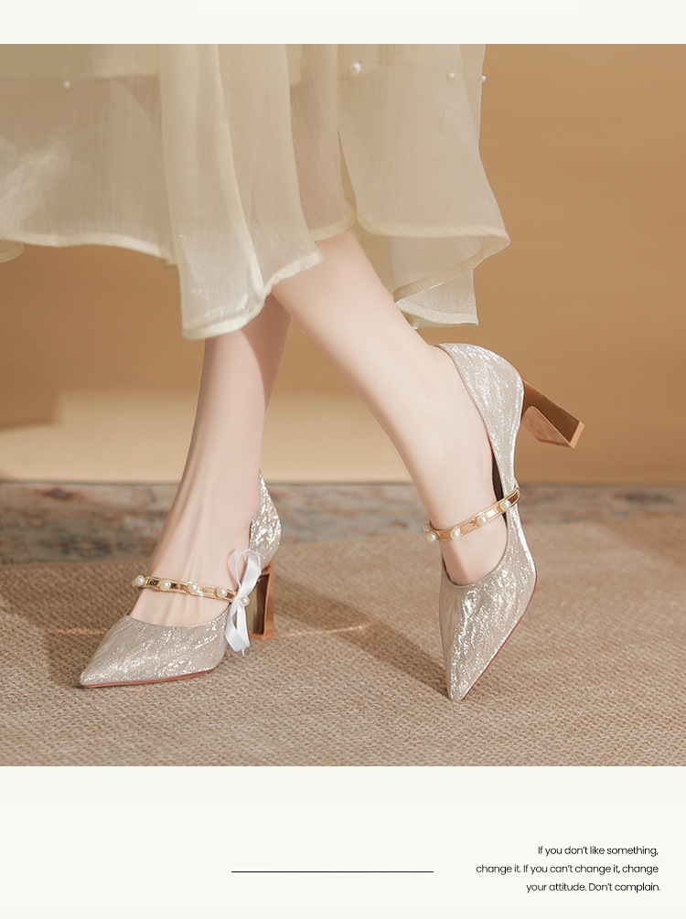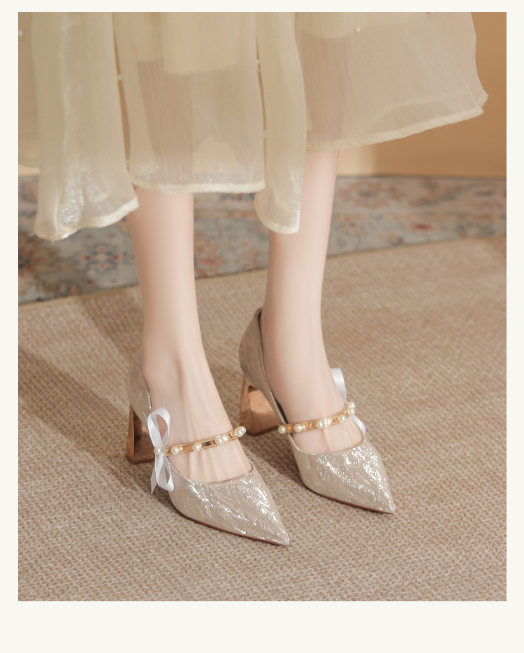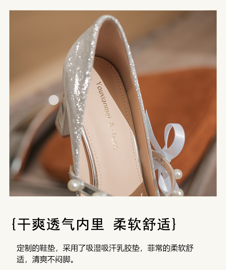 피곤하지 않은 두꺼운 굽 하이힐, 웨딩드레스, 여성용 웨딩슈즈, 샤오허 프렌치 스파클링 크리스탈 신부 들러리 신부 슈즈 투웨어스토어 가기