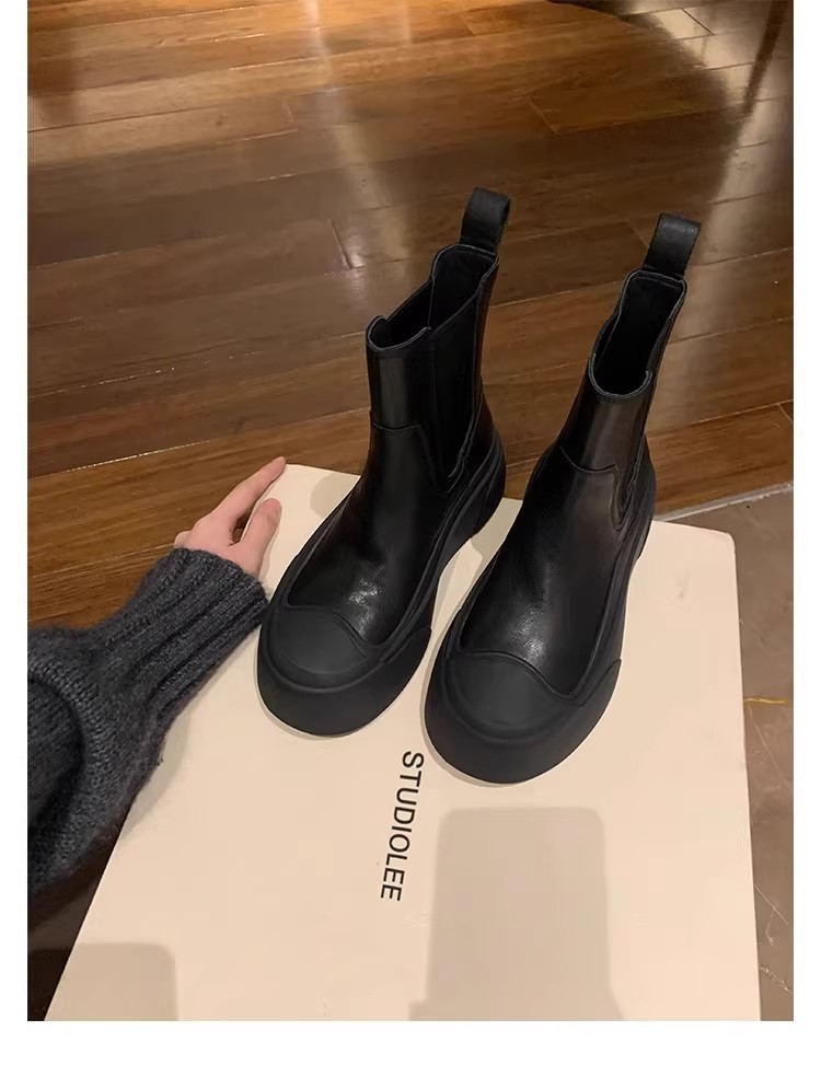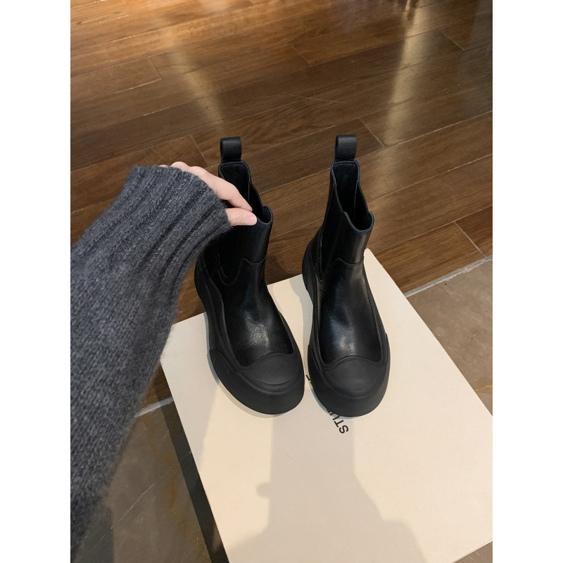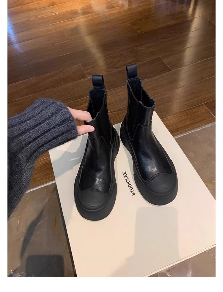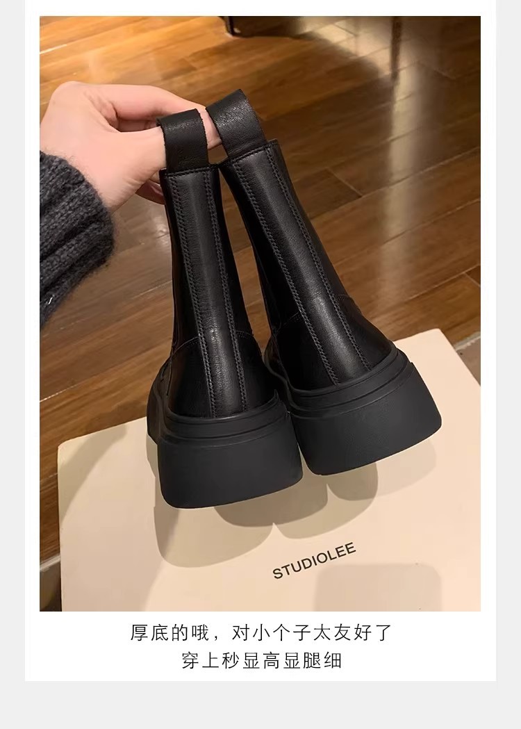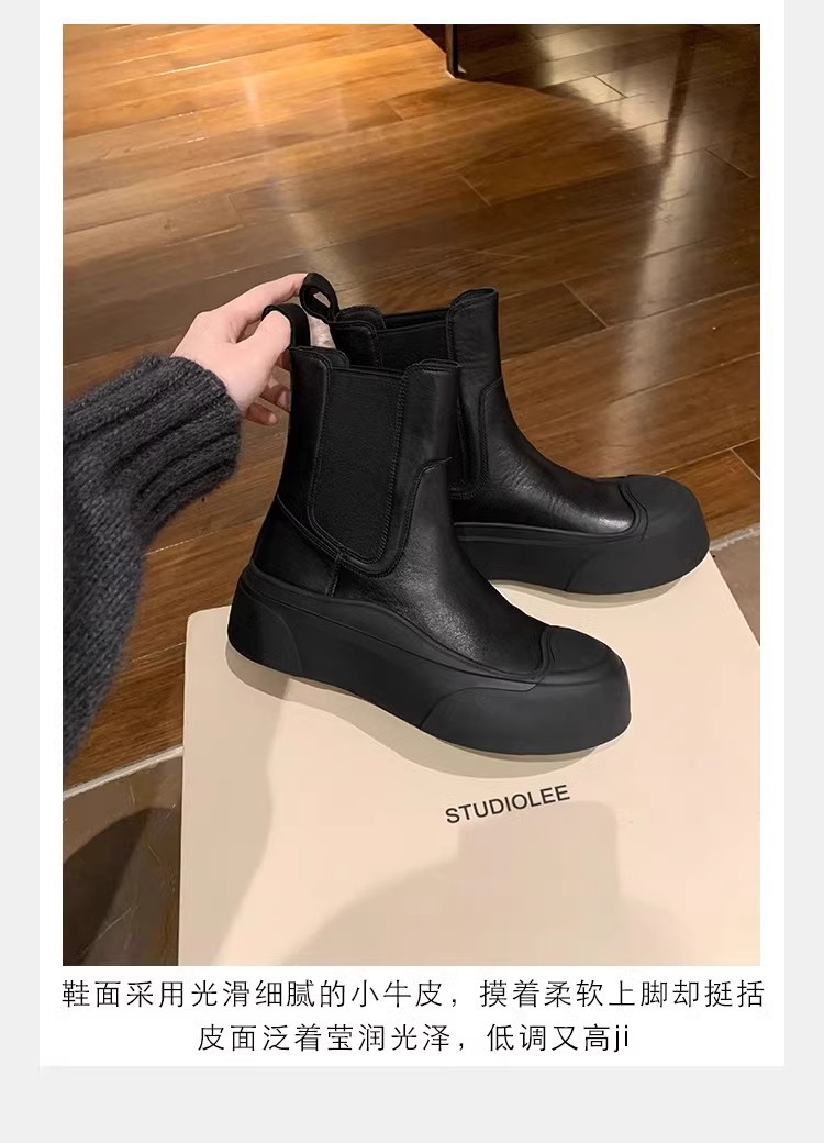 소가죽 버전~ 여성용 천연가죽 두꺼운 밑창 첼시부츠, 브리티시 스타일 마틴부츠, 다용도 침소형 오토바이부츠, 슬림부츠스토어 가기