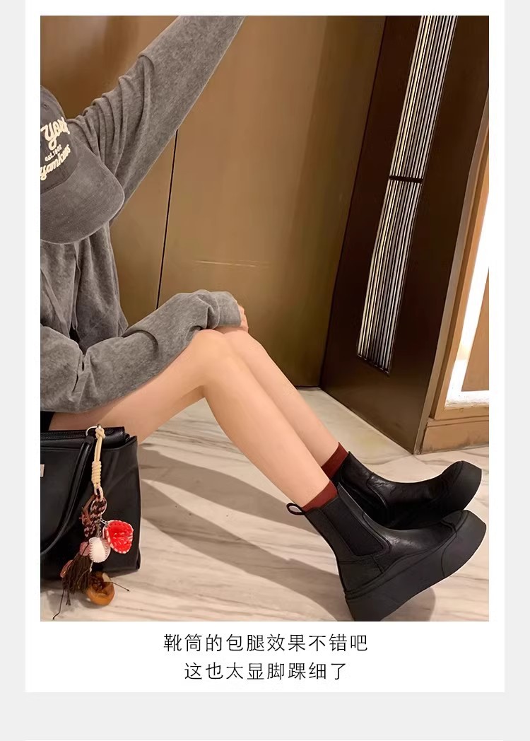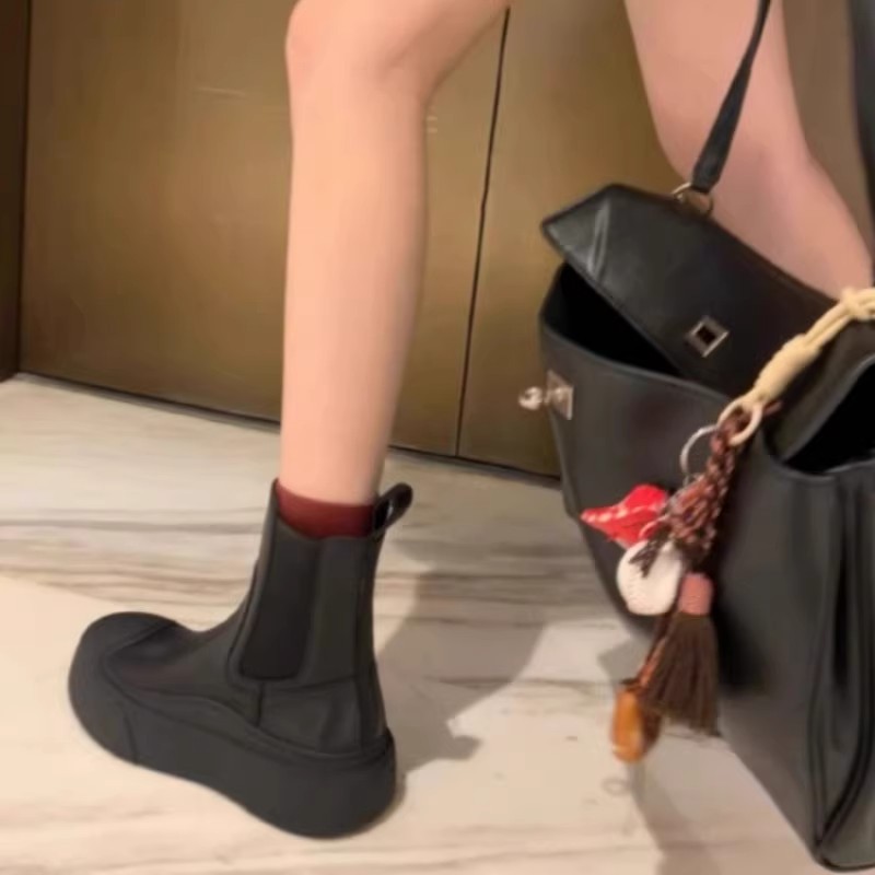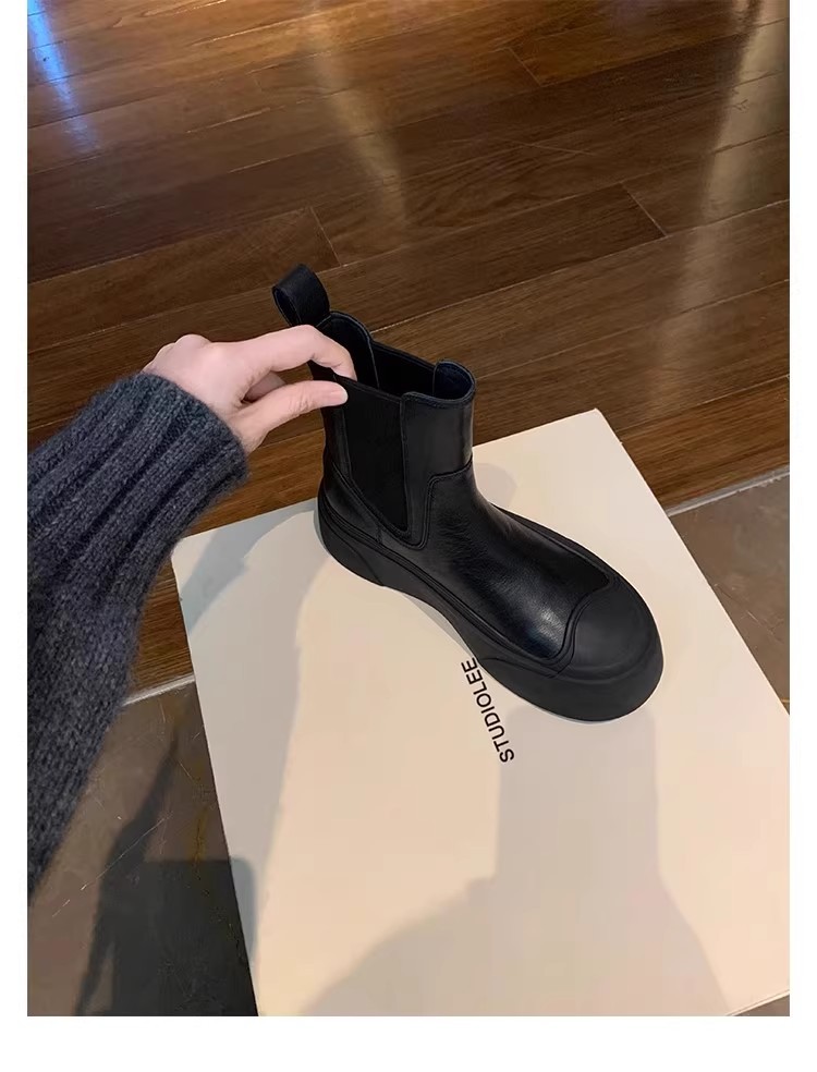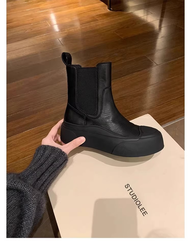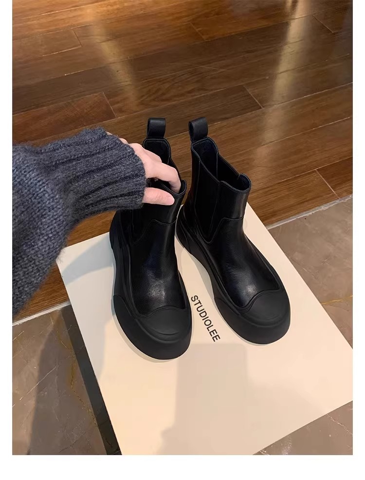 소가죽 버전~ 여성용 천연가죽 두꺼운 밑창 첼시부츠, 브리티시 스타일 마틴부츠, 다용도 침소형 오토바이부츠, 슬림부츠스토어 가기