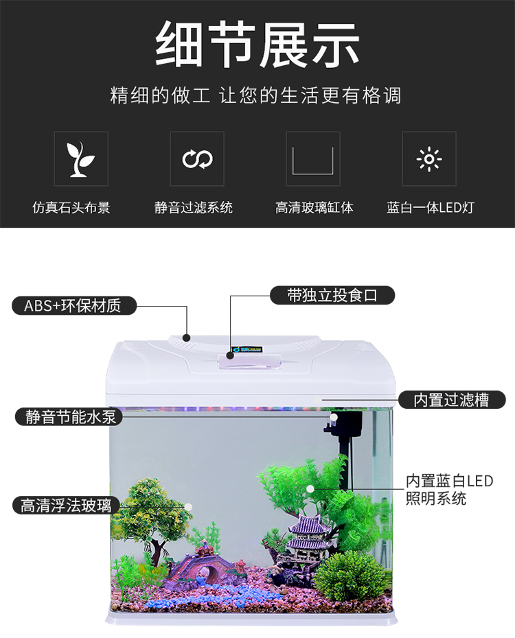 2025 새로운 자체 순환 금붕어 탱크 유리 작은 데스크탑 거실 홈 물 교체 없음 생태 수족관