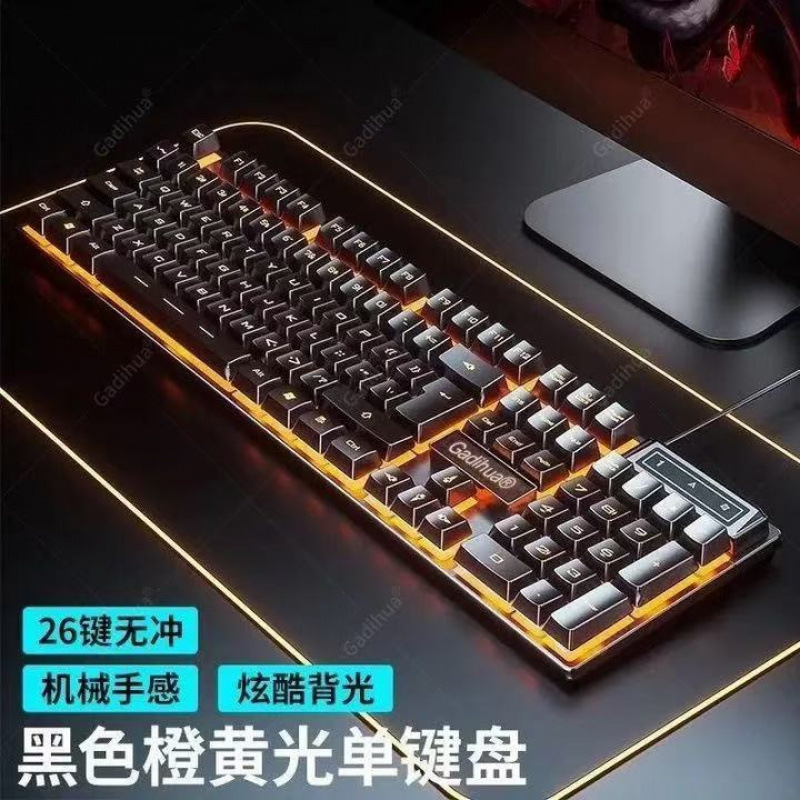 • 블랙 오렌지 라이트 - 싱글 키보드 + 게이밍 마우스 [1년 보증] [블랙 골드] 업그레이드 버전