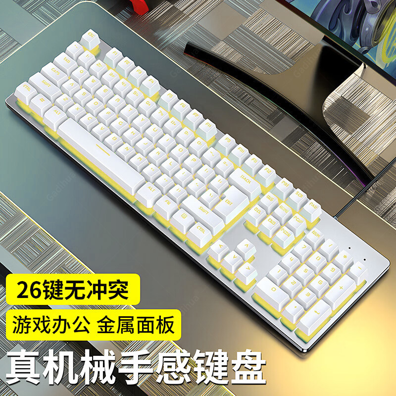 • 화이트 혼합광 [클래식 버전] - 단일 키보드 + 게이밍 마우스 [1년 보증] [블랙 골드] 업그레이드 버전