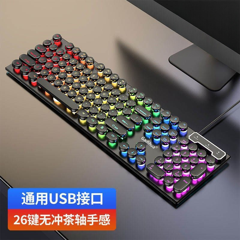 게임 e-스포츠 컴퓨터 사무실 범용 AliExpress에 적합한 복고풍 기계식 느낌 키보드 유선 음소거스토어 가기