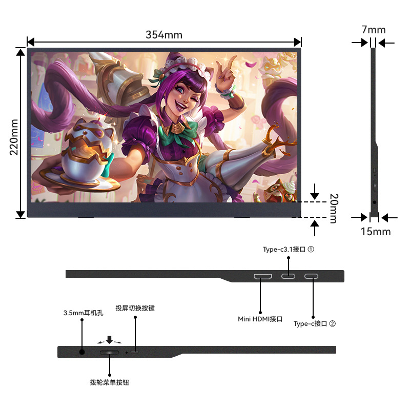 휴대용 스크린 디스플레이 제조업체 직접 공급 15.6inch 무선 스크린 프로젝션 게임 사무실 디자인 휴대용 확장 스크린