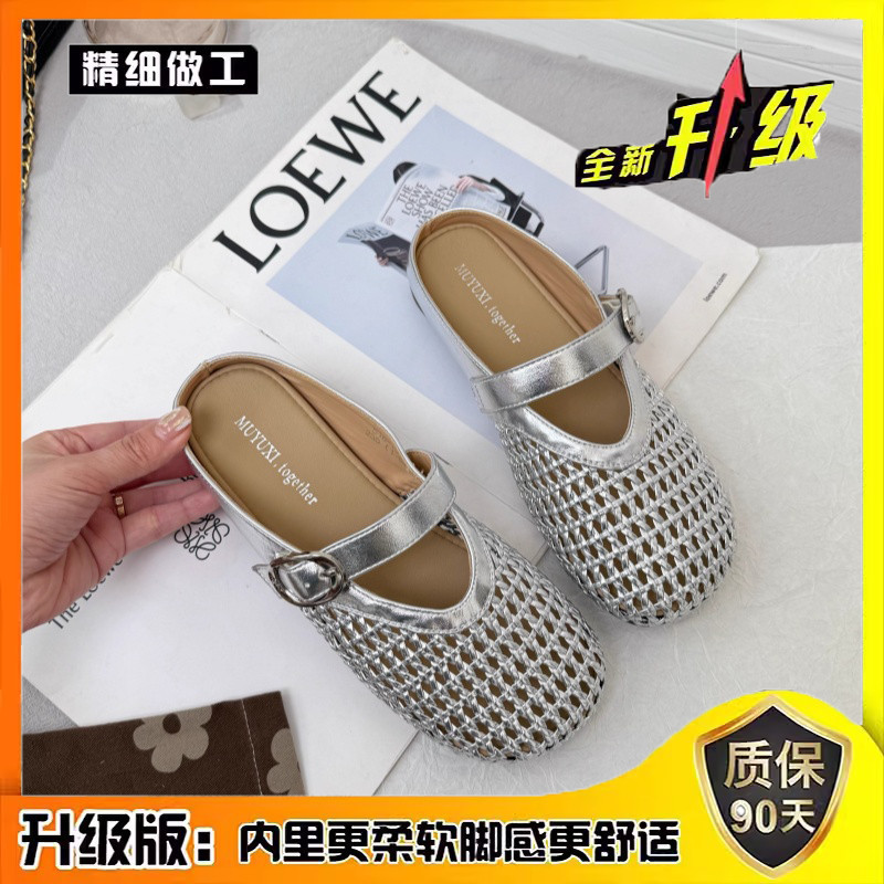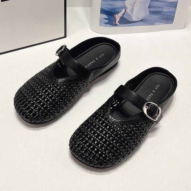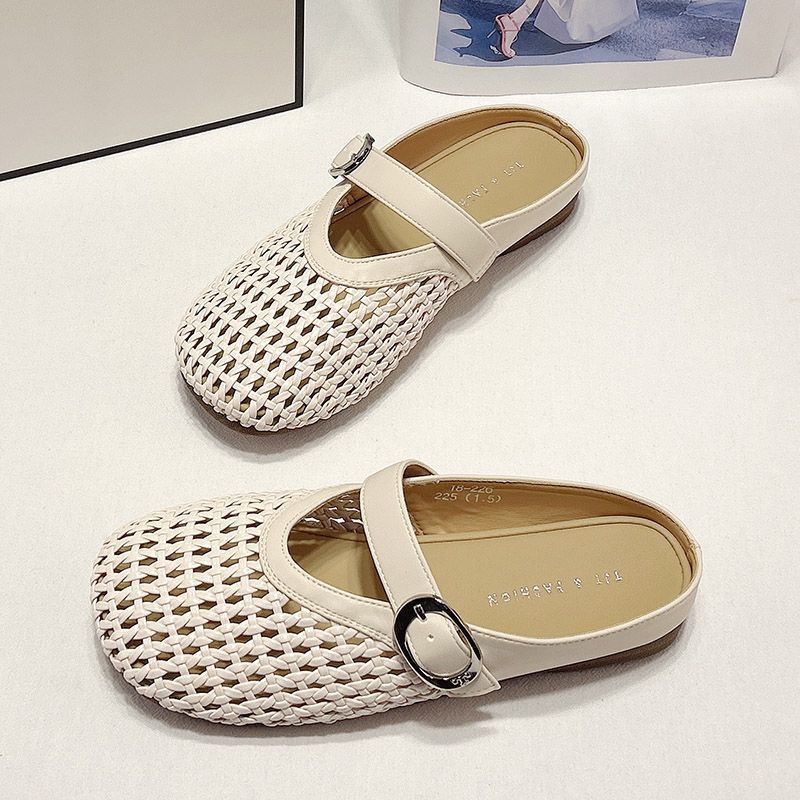 메쉬 여성 겉옷 2025 사계절 새로운 패션 메리 발가락 반 슬리퍼 편안한 슬립 온 게으른 샌들스토어 가기