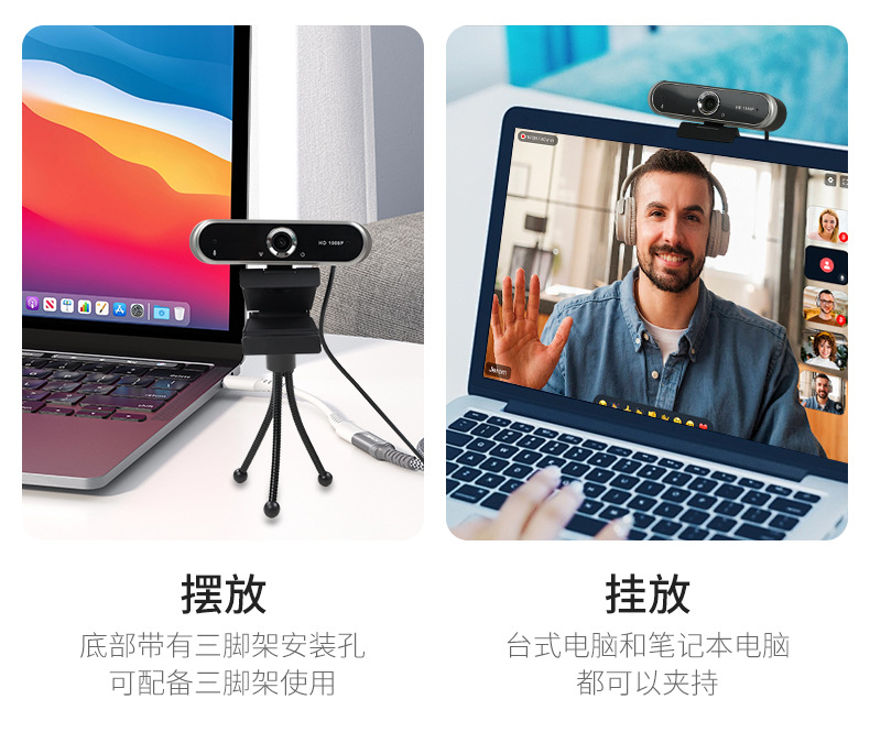 企业远程办公摄像头部署 自动对焦1080P摄像头