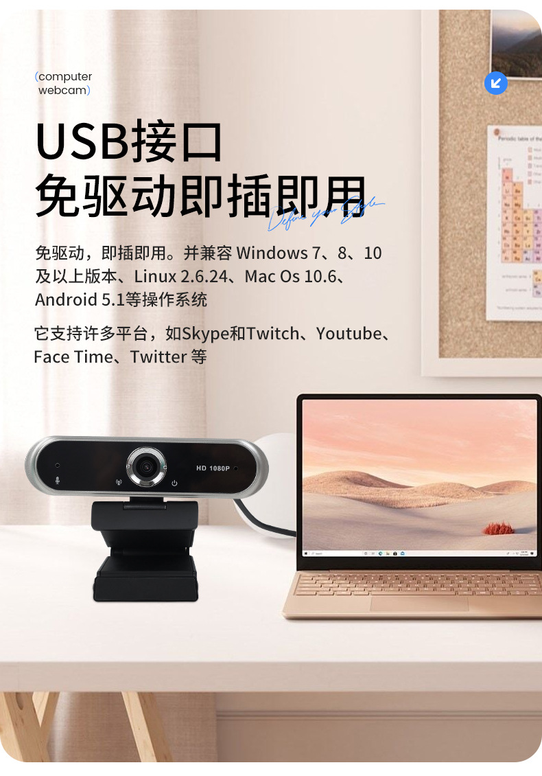 高清电脑摄像头 USB摄像头1080P