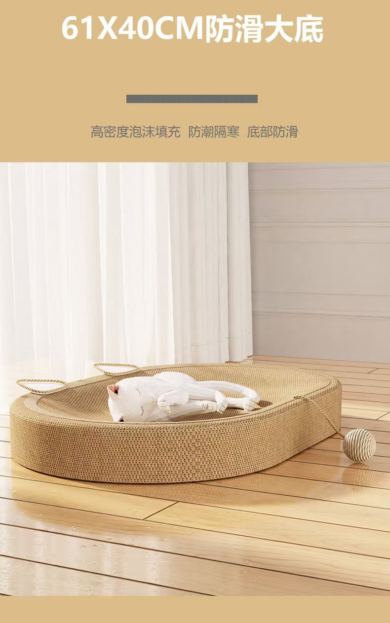 고양이 스크래치 보드는 내마모성과 부스러기가 없는 고양이 둥지, 일체형 초대형 사이잘 고양이 발톱 보드, 사계절 모두 사용 가능한 등나무로 짠 스크래치 방지 용품입니다.
