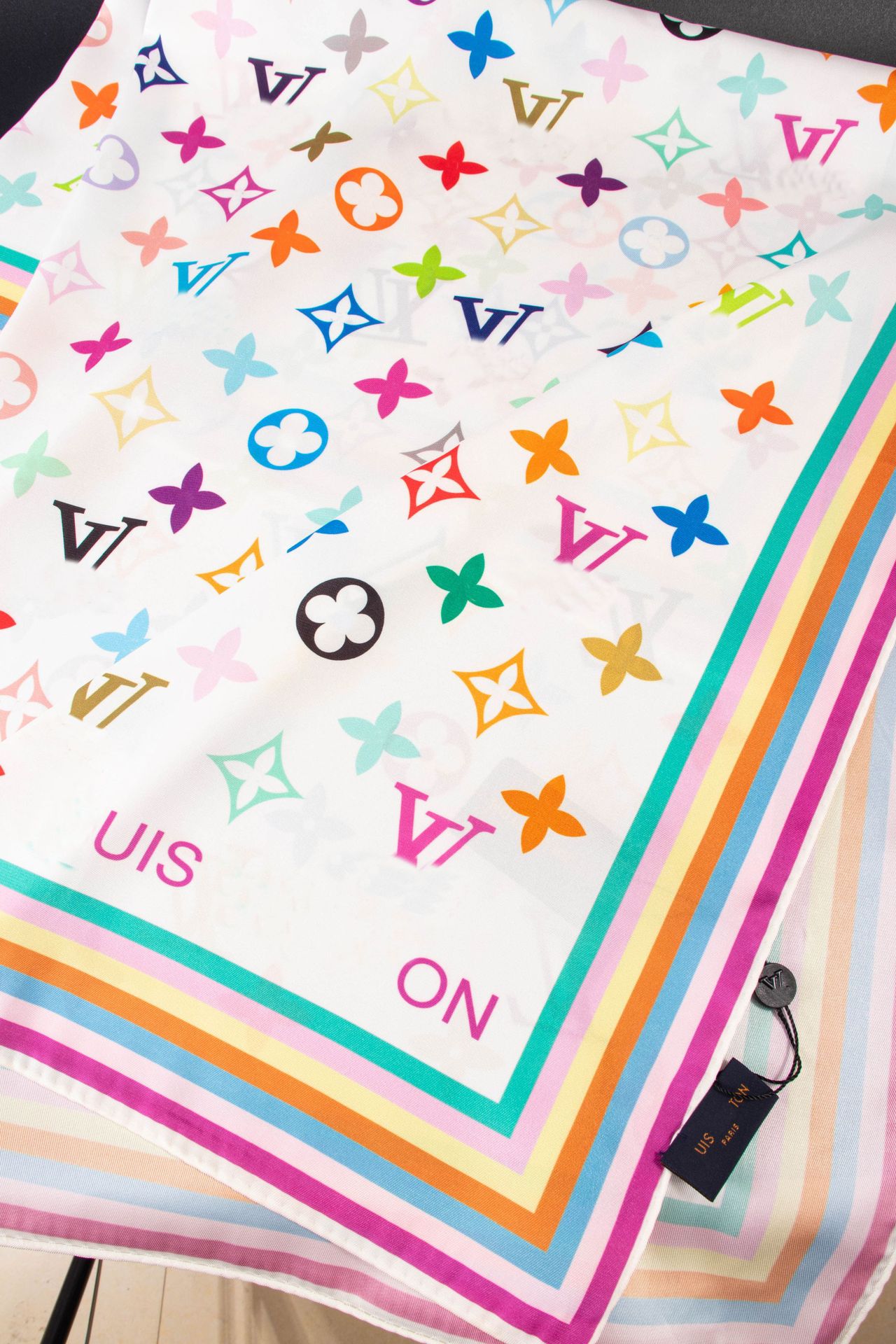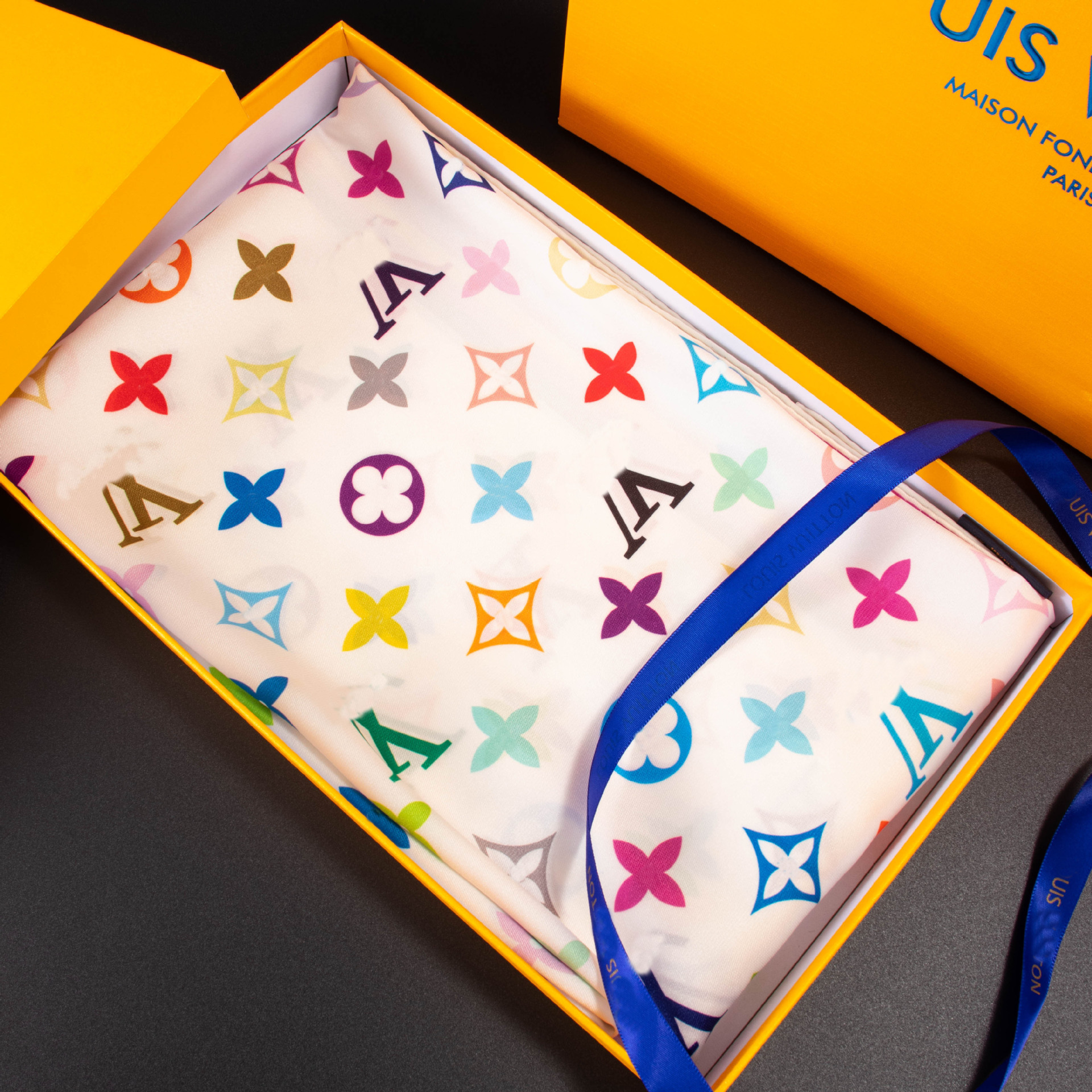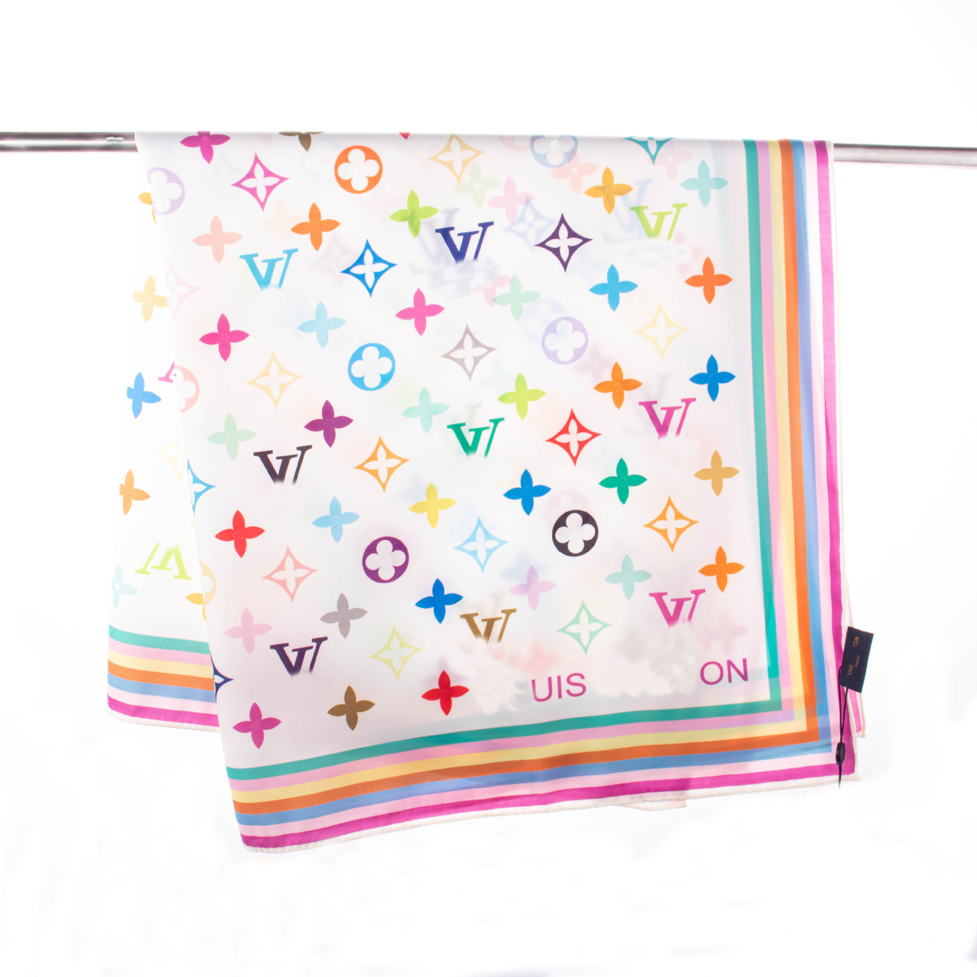 2025년 신형 숄 화이트 삼색 프린트 실크 스카프 고급스러운 대형 스카프스토어 가기