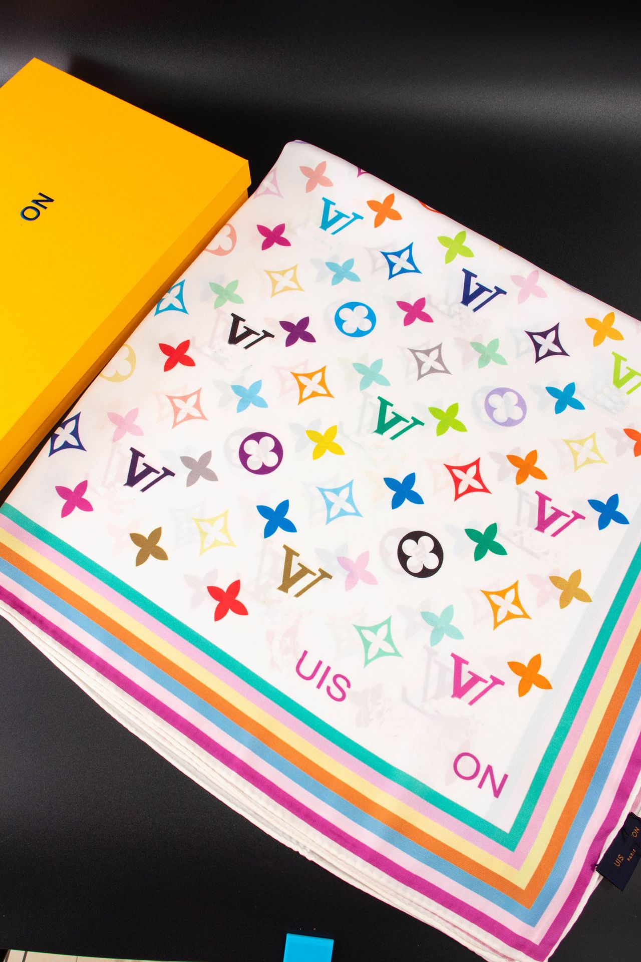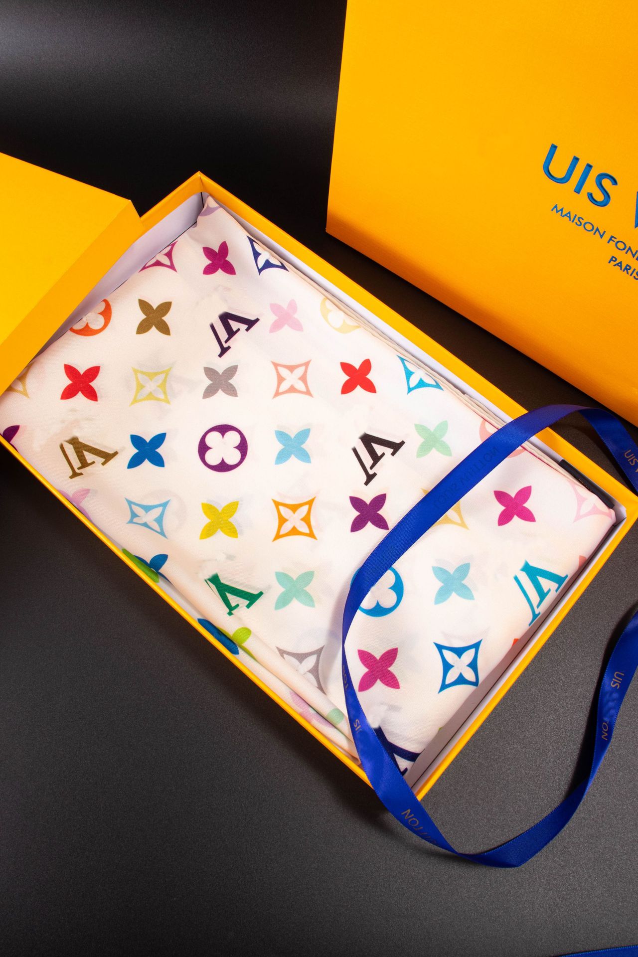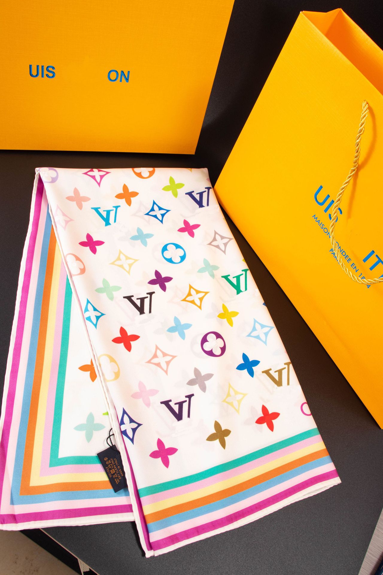 2025년 신형 숄 화이트 삼색 프린트 실크 스카프 고급스러운 대형 스카프스토어 가기