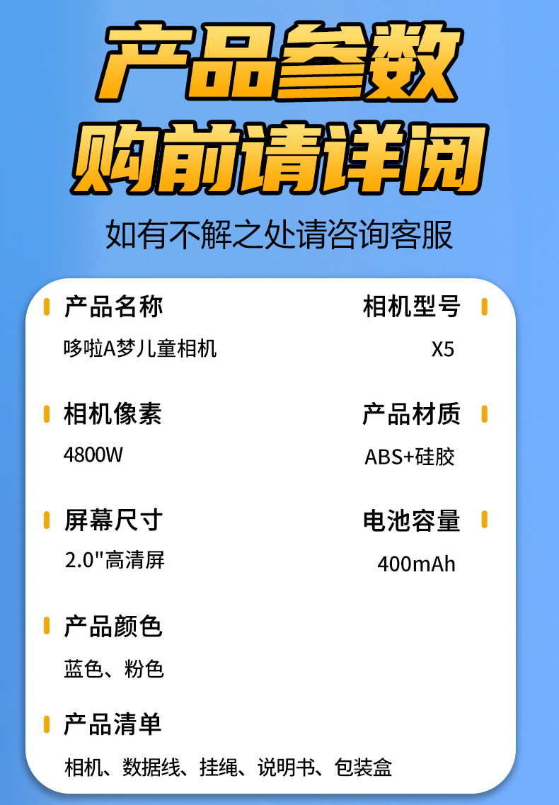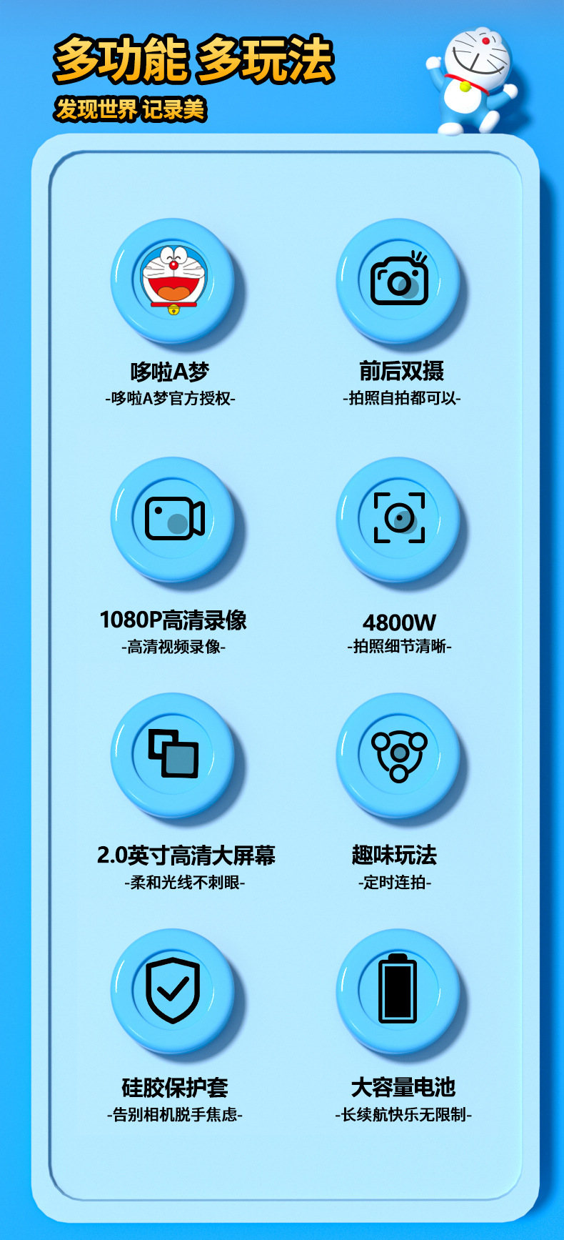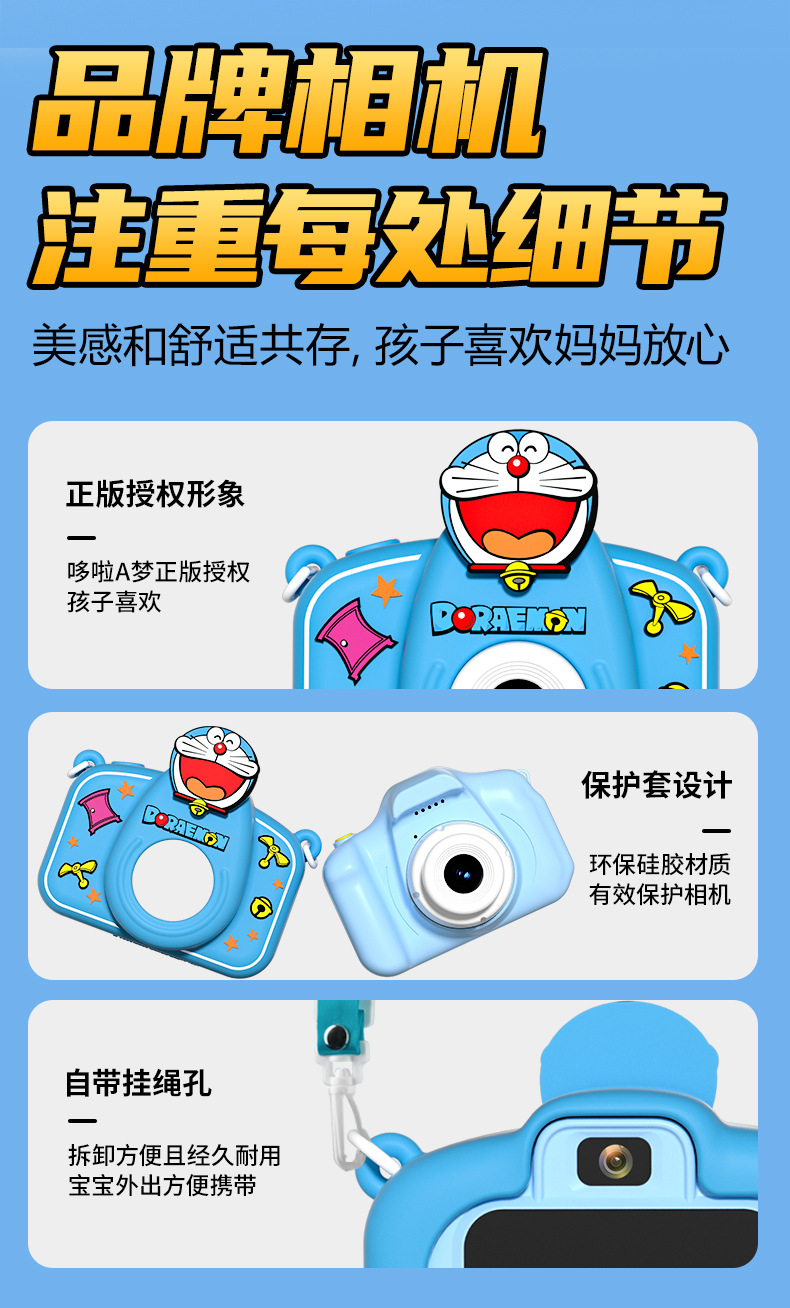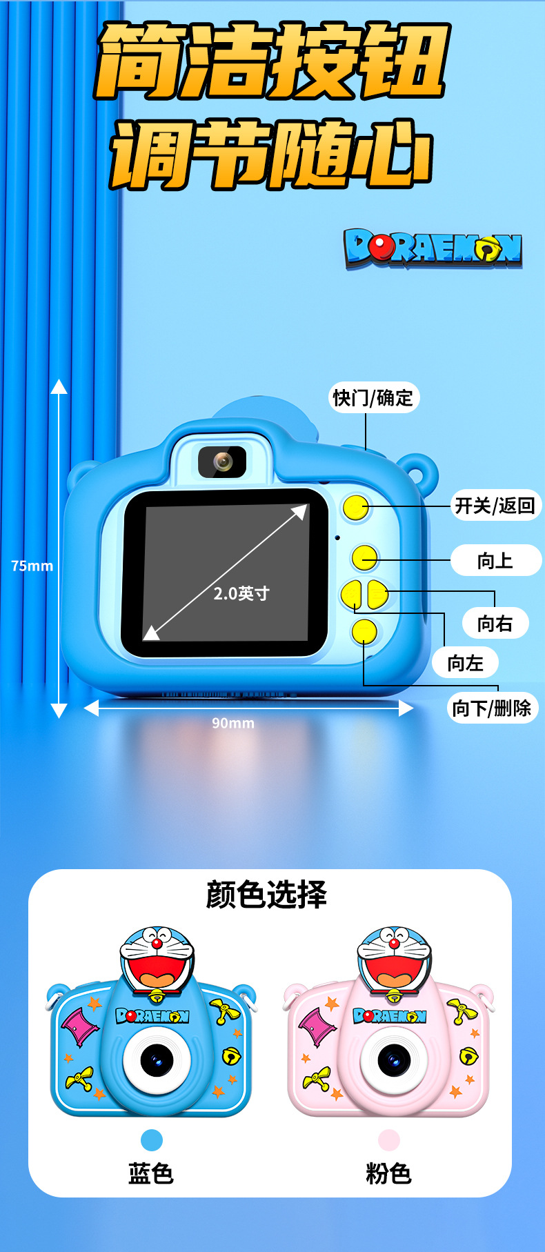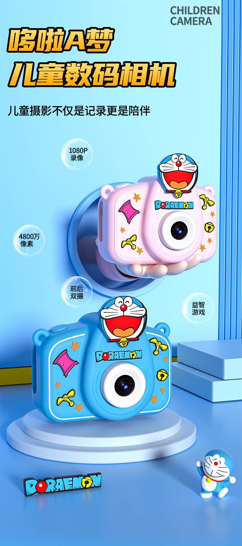 도라에몽 어린이 만화 카메라 전면 및 후면 듀얼 카메라 4800W 고화질 픽셀 미니 카메라 어린이 장난감스토어 가기