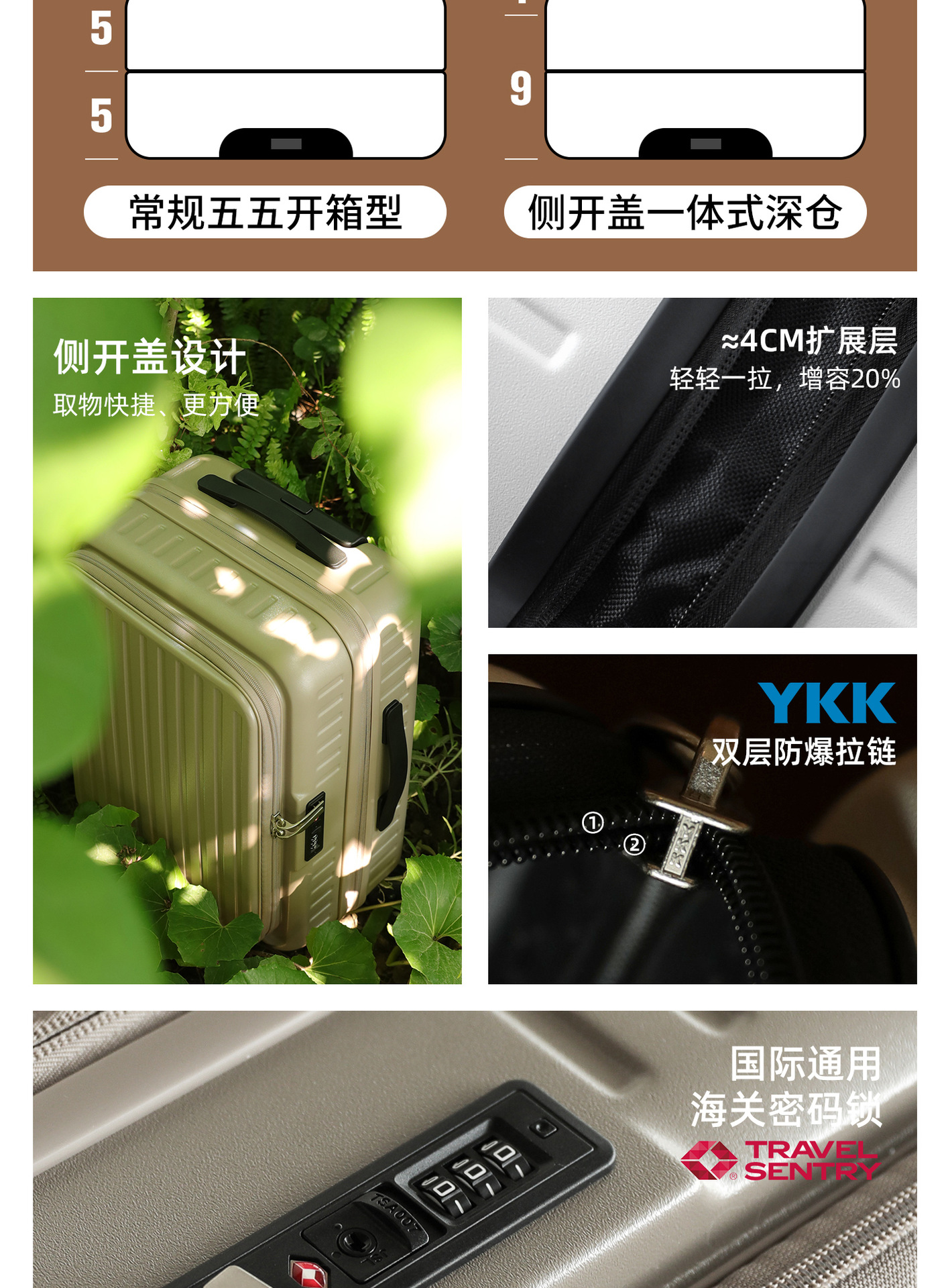 • 20inch [YKK 이중 방폭 지퍼 + 확장형 디자인 + 초저소음 고무바퀴]