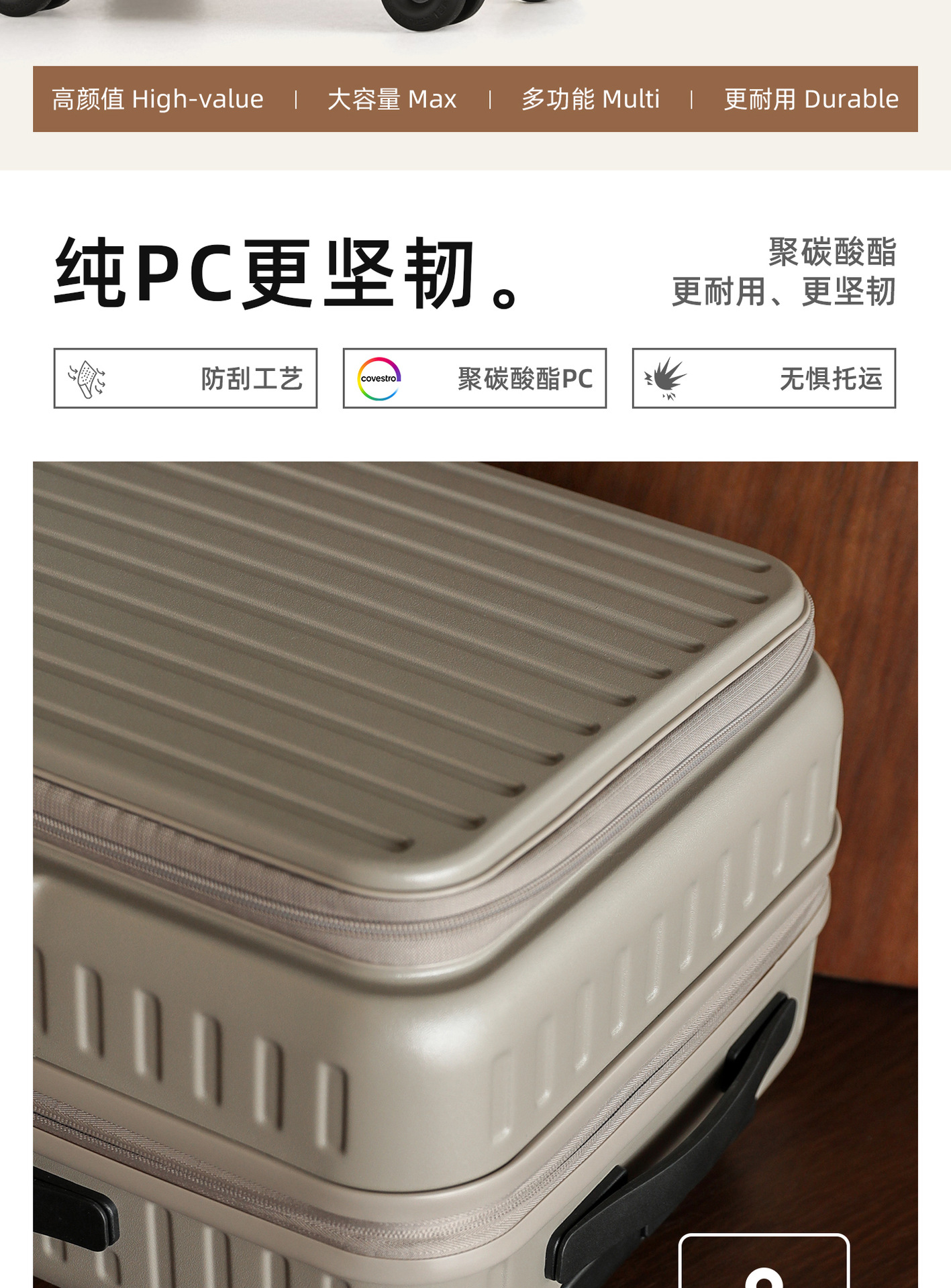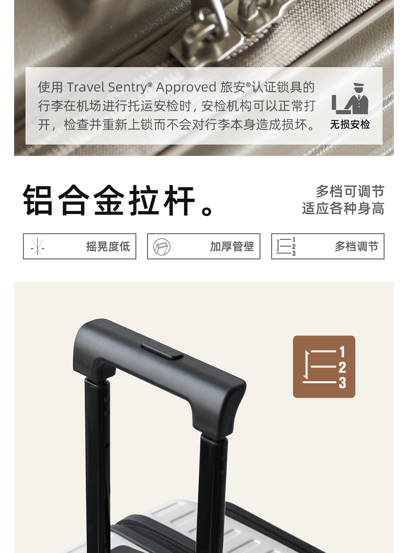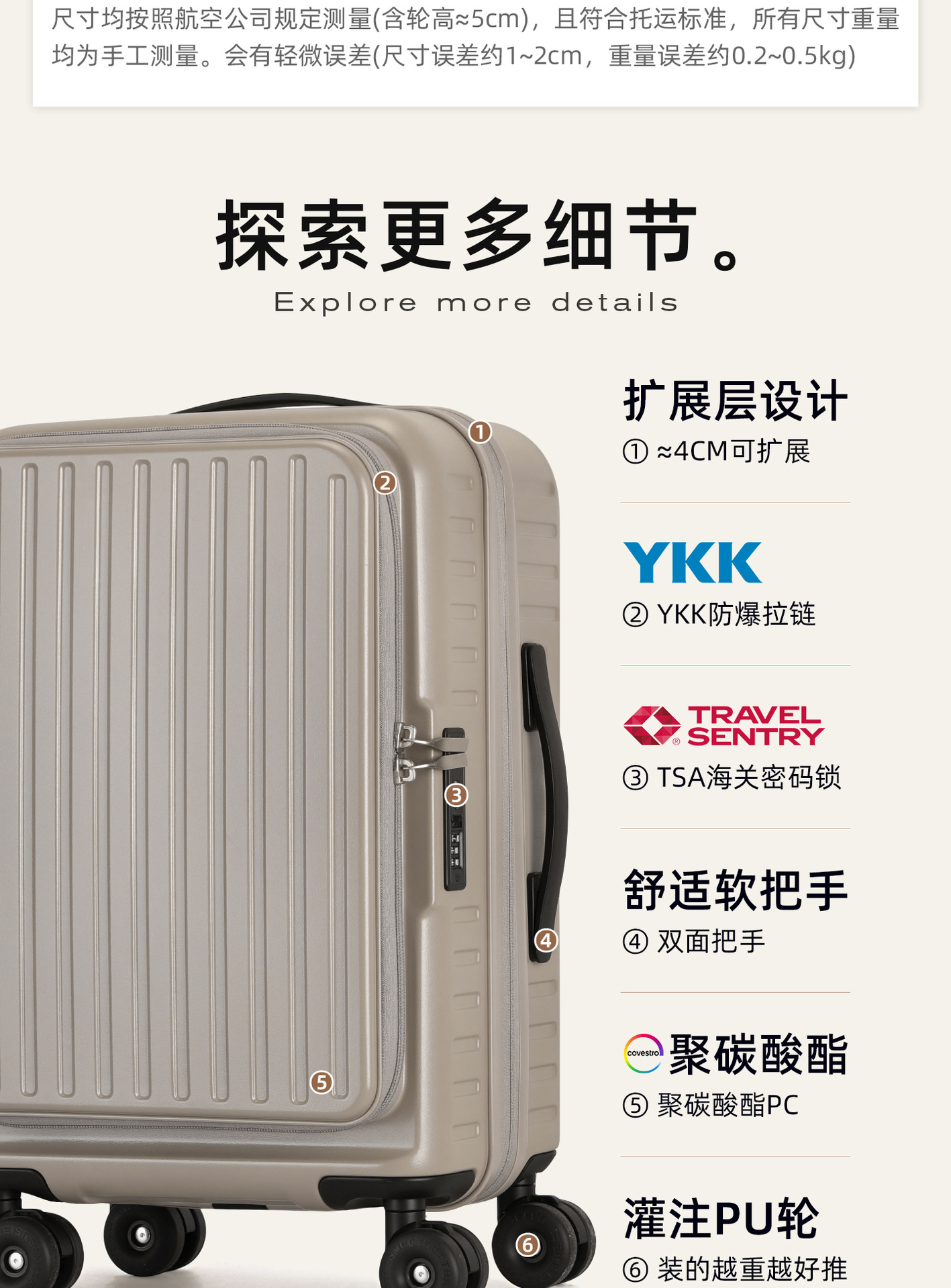 • 26inch [YKK 이중 방폭 지퍼 + 확장 가능한 디자인 + 초저소음 고무 바퀴]