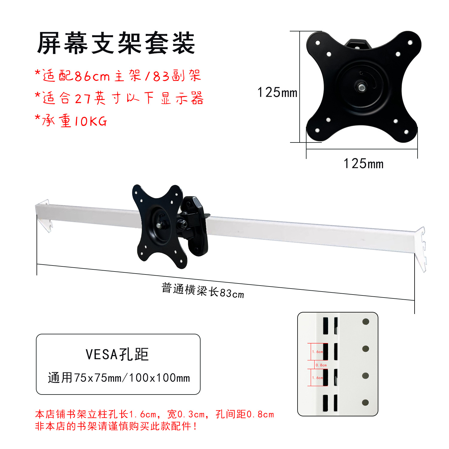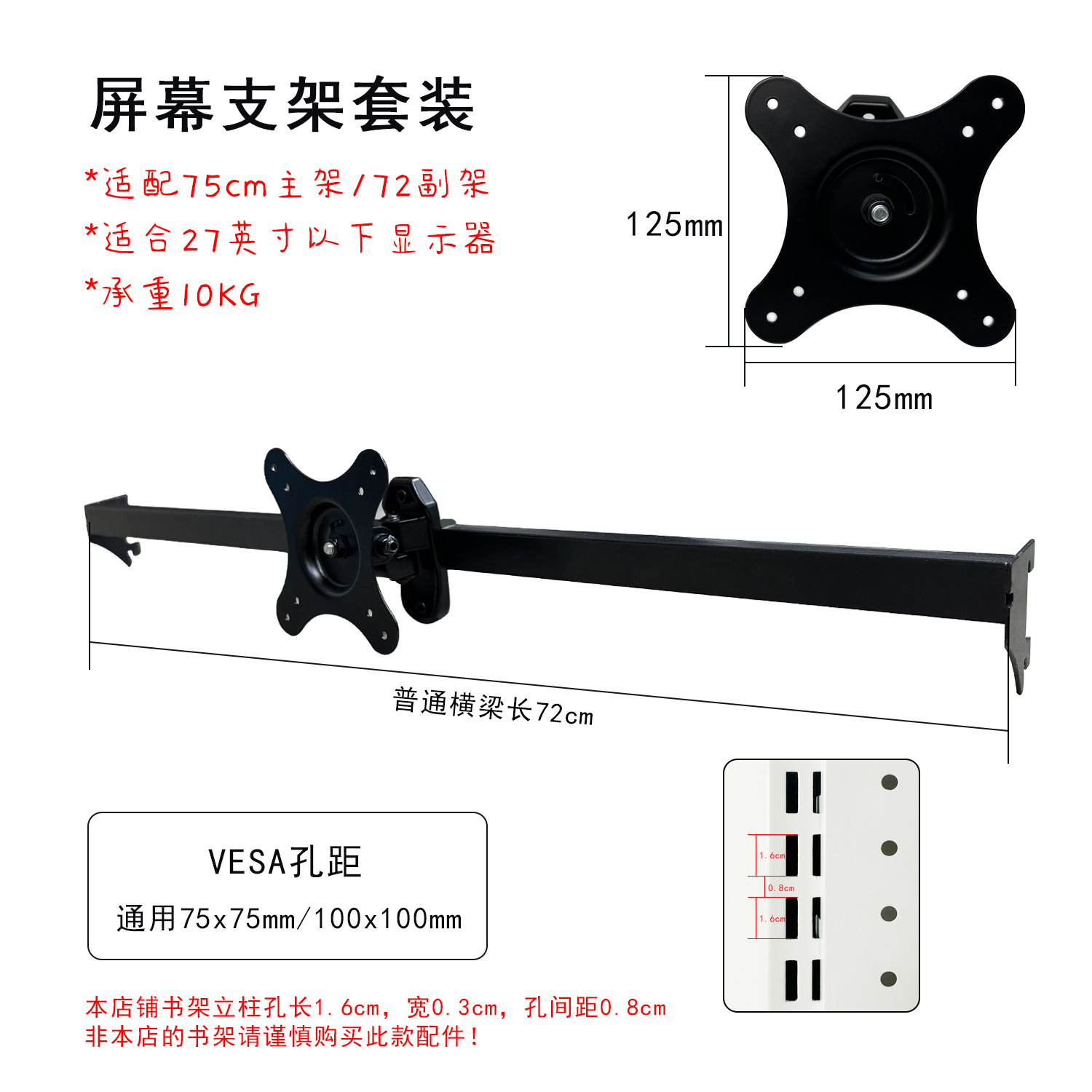 모니터 스탠드 암 높이 조절 데스크탑 컴퓨터 걸이식 구멍 없는 소녀용 홀 보드 책장 액세서리 하드웨어 홀 보드스토어 가기