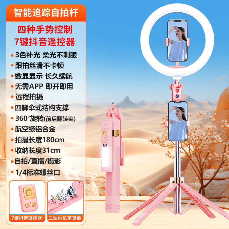 • 핑크【360 ° 촬영 및 회전] + 다기능 리모콘 + LED 전원 디스플레이 + 보조광 + 라이브 방송 조명