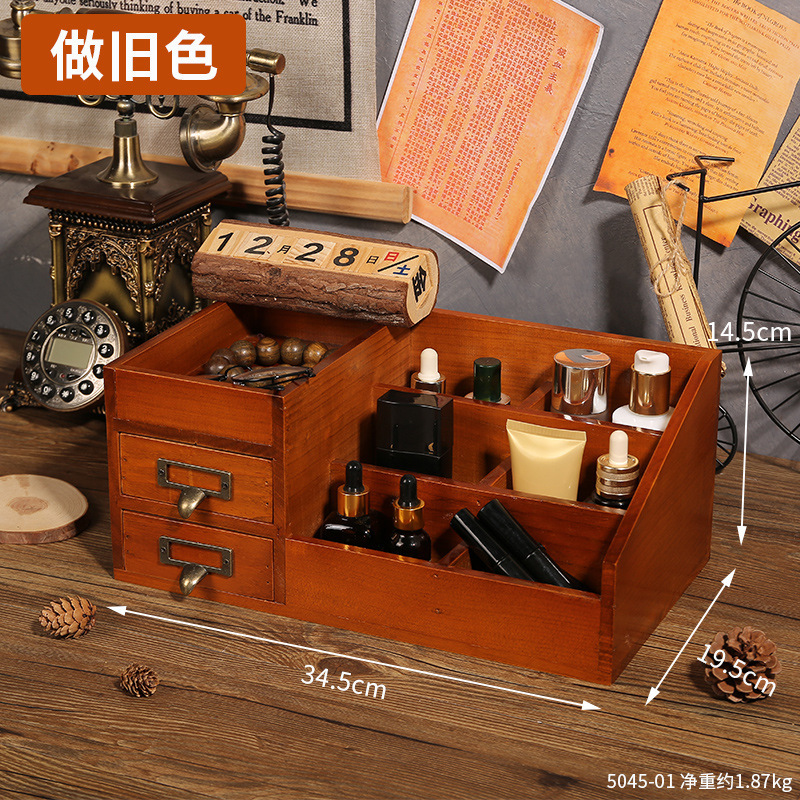 다층 단단한 나무 보관 캐비닛 사무실 기숙사 데스크탑 화장품 및 기타 정리 서랍 다기능 나무 캐비닛스토어 가기
