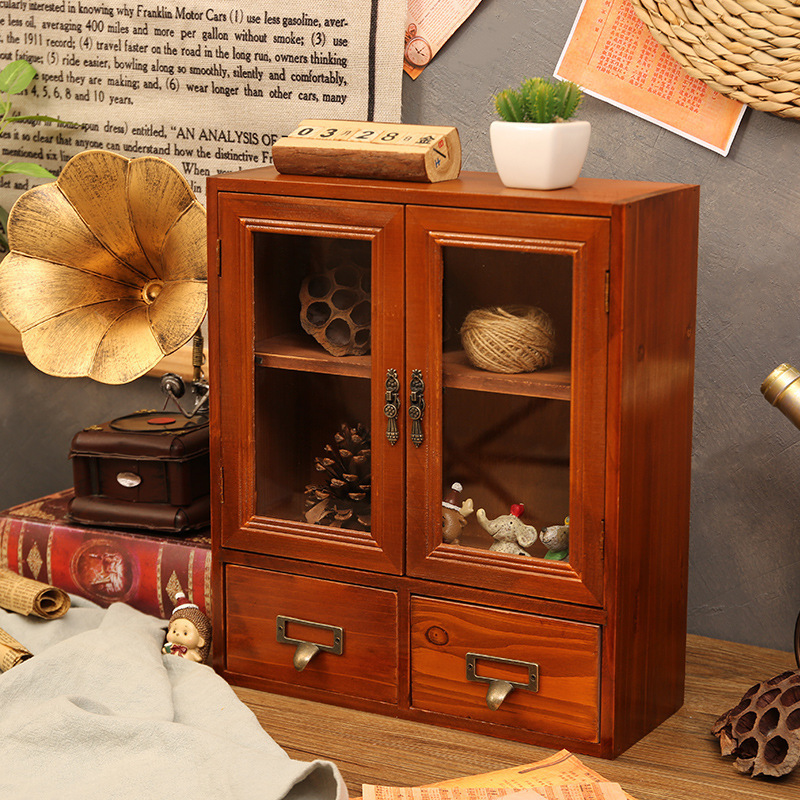 다층 단단한 나무 보관 캐비닛 사무실 기숙사 데스크탑 화장품 및 기타 정리 서랍 다기능 나무 캐비닛