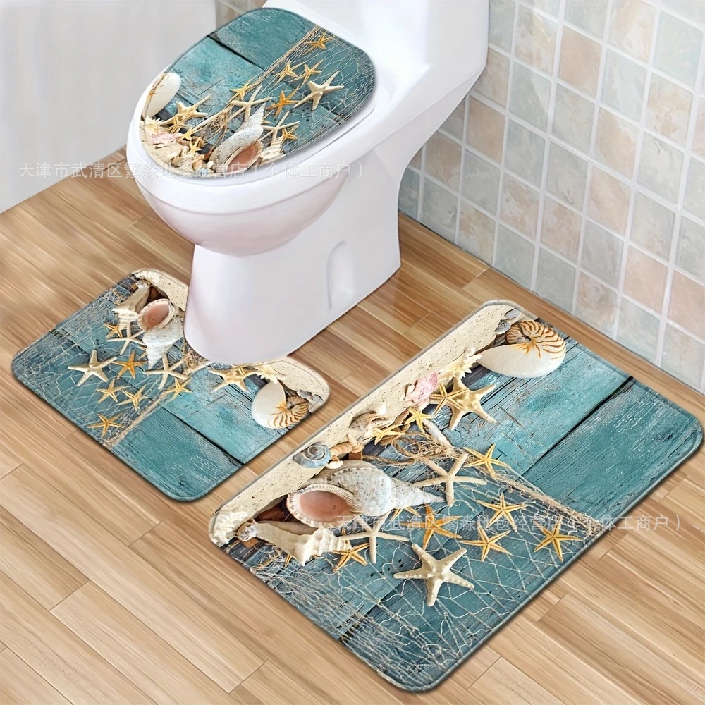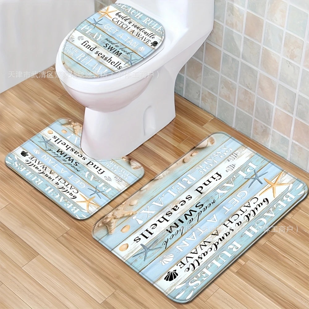 아마존 베스트셀러 레트로 비치 욕실 매트, 욕실 범용 흡수성 매트, 3피스 화장실 얼룩 방지 도어 매트