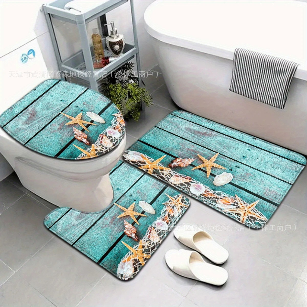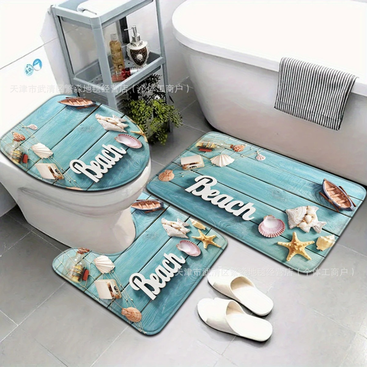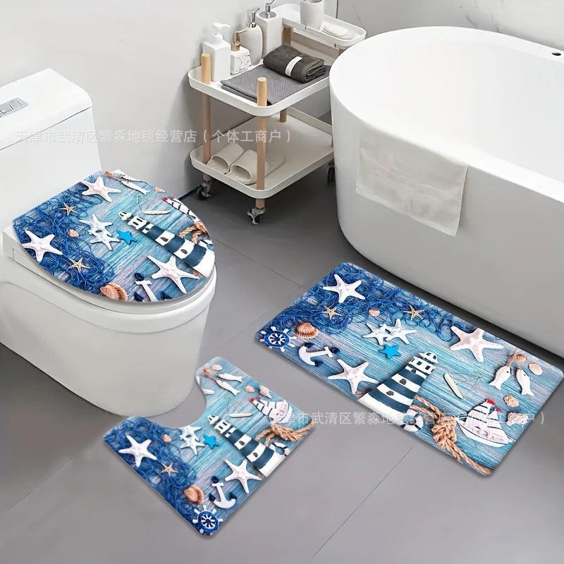 아마존 베스트셀러 레트로 비치 욕실 매트, 욕실 범용 흡수성 매트, 3피스 화장실 얼룩 방지 도어 매트스토어 가기