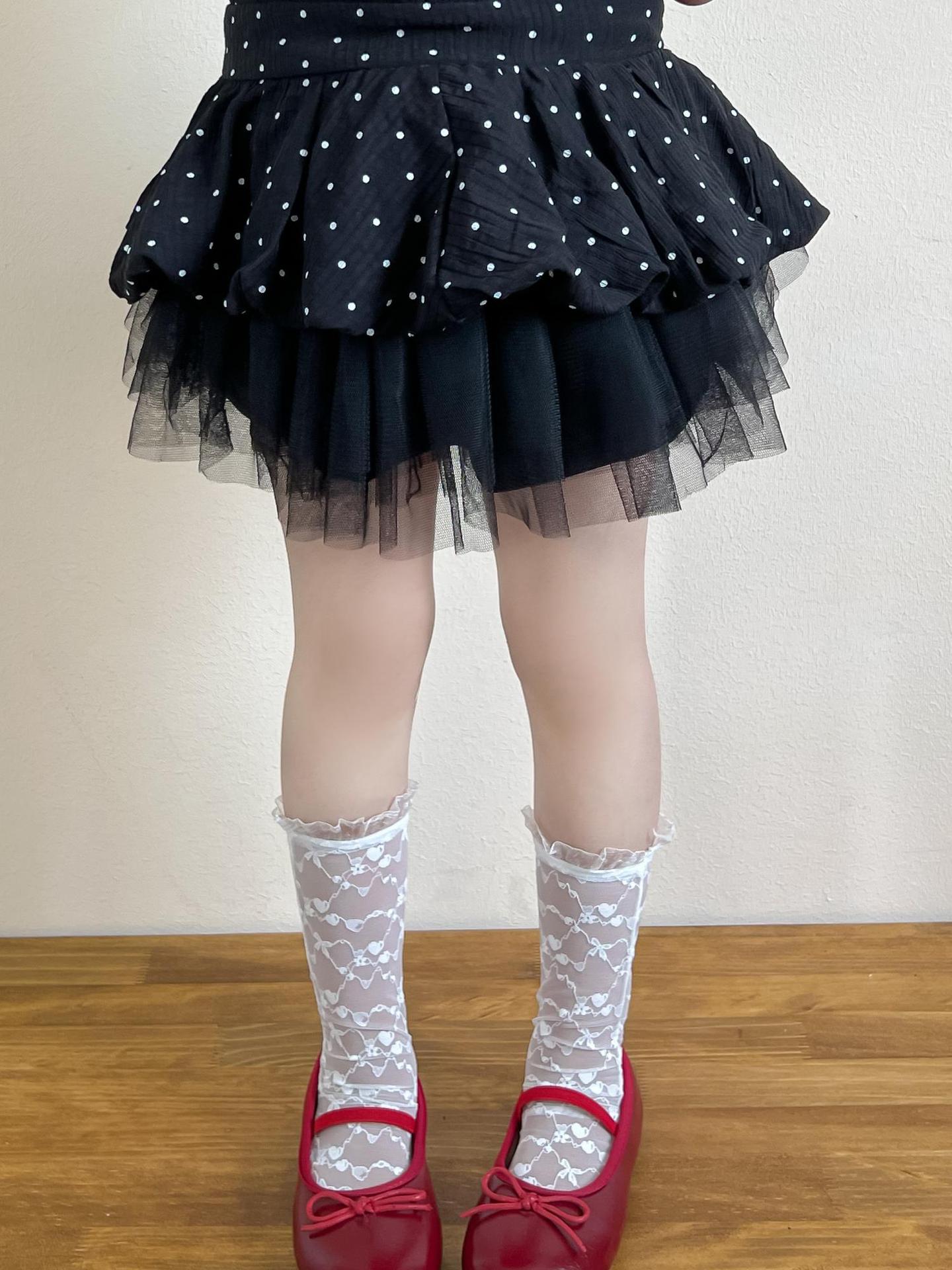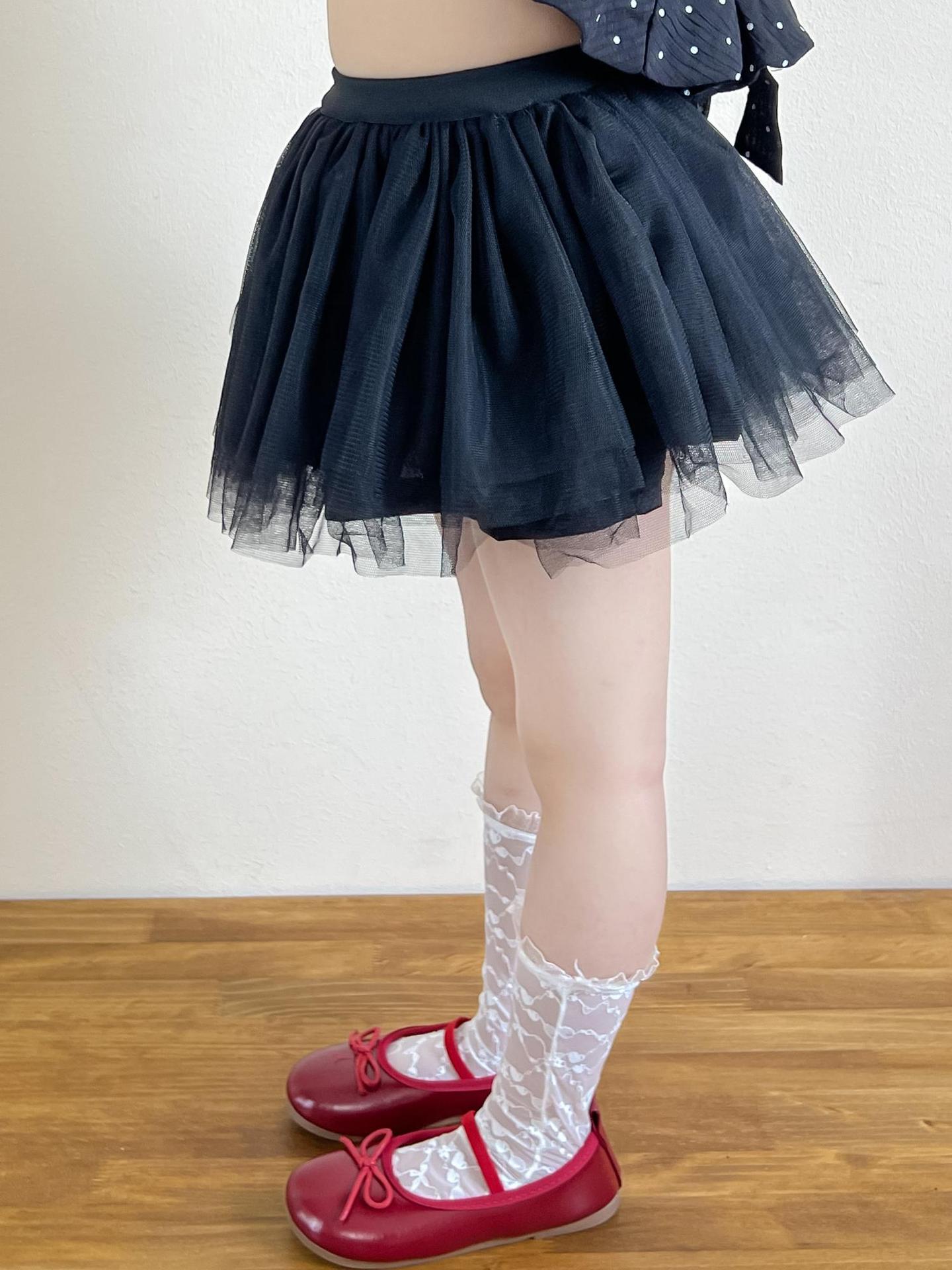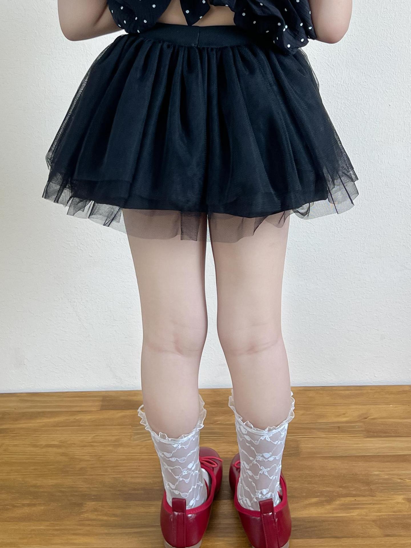 • DM2511216028 - 블랙 반기장 거즈 스커트