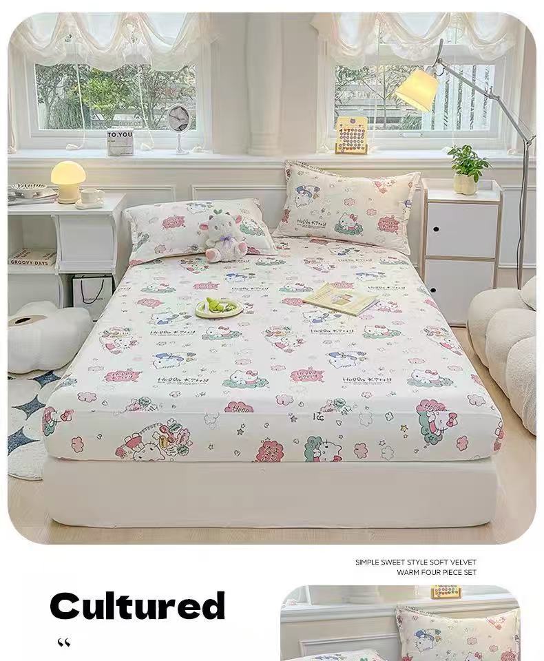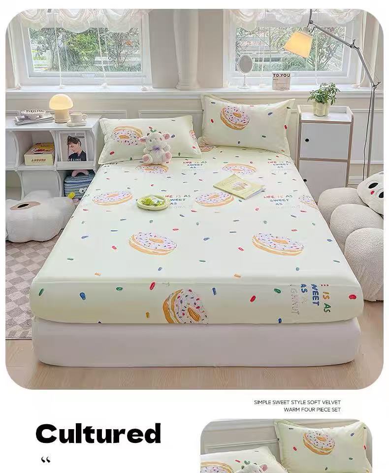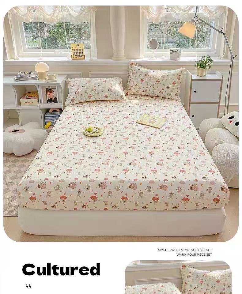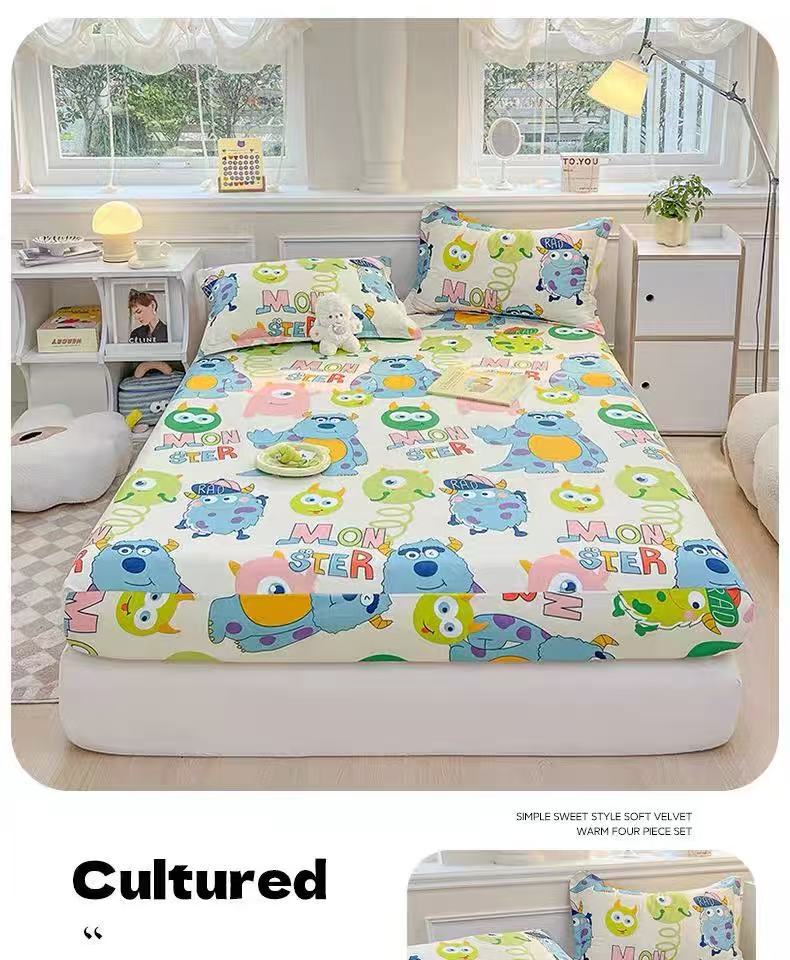 만화 침대 시트 싱글 피스 완전히 둘러싸인 침대 커버 워시 코튼 피부 친화적인 시몬스 매트리스 방진 및 미끄럼 방지 보호 커버
