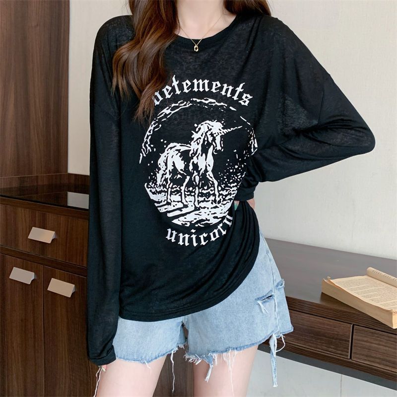 여성용 초대형 사이즈 아이스 실크 자외선 차단 의류 긴팔 여름 얇은 느슨한 뚱뚱한 MM 150kg 티셔츠 에어컨 블라우스 탑 트렌디스토어 가기