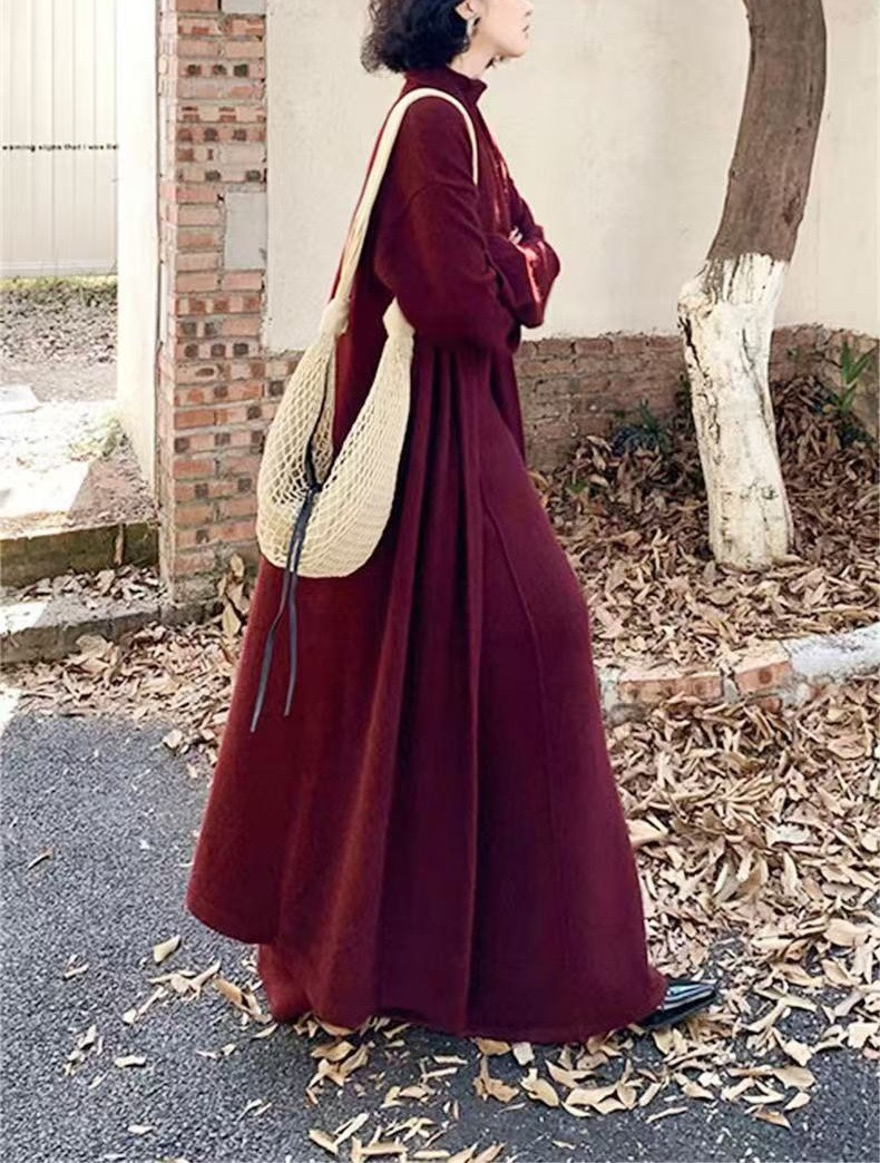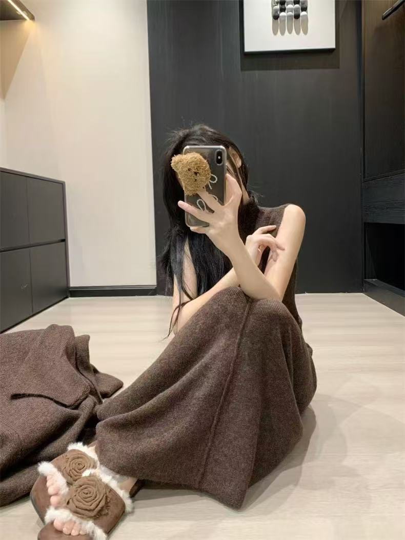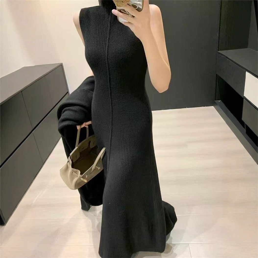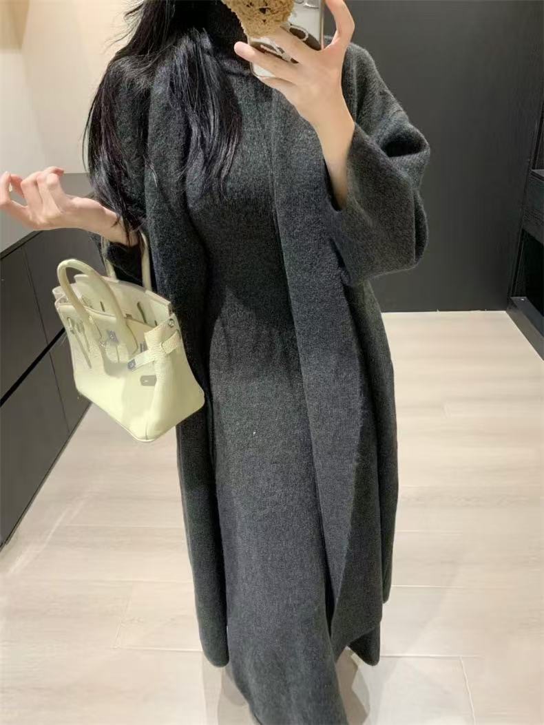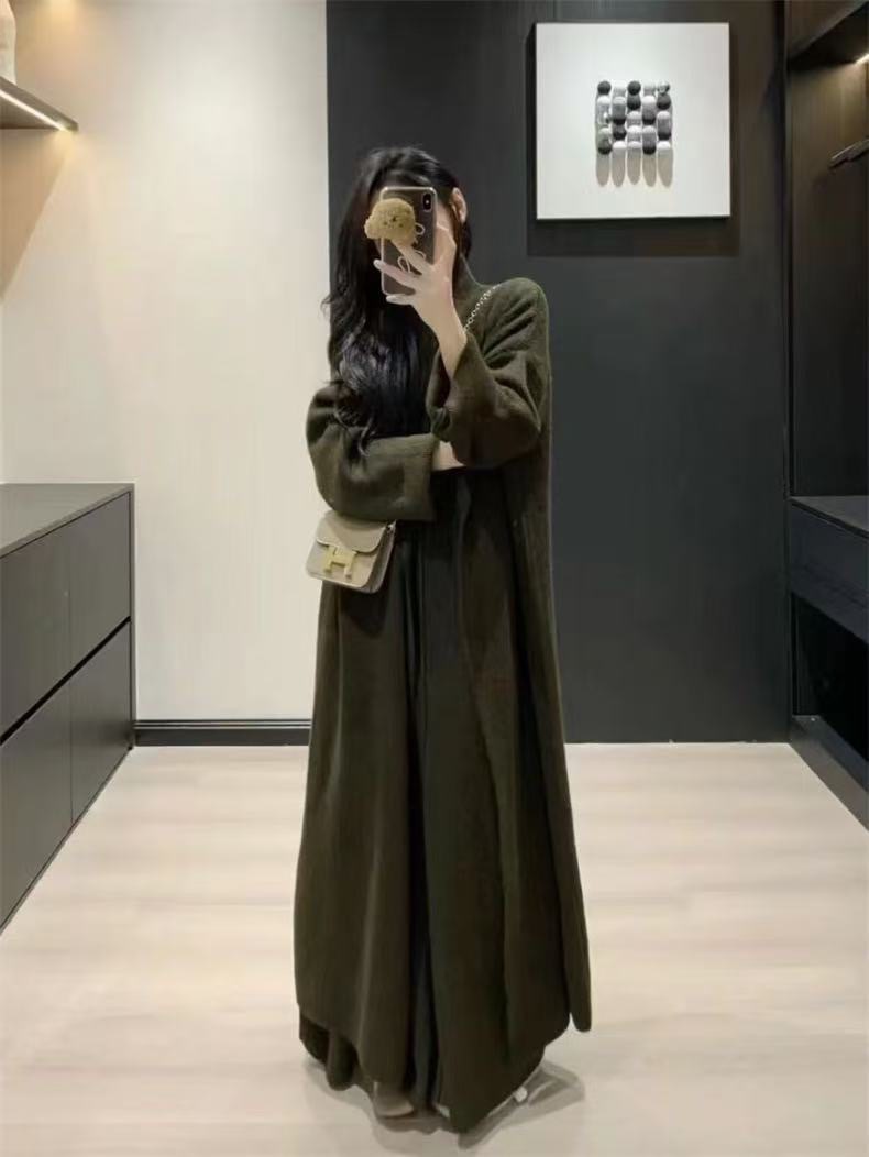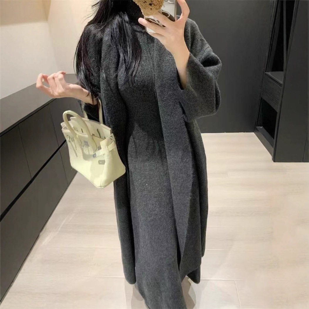 우아한 여성스러운 스타일의 롱 스웨터 세트 여성 가을 겨울 신상 레이지 스타일 니트 가디건+원피스 투피스 세트스토어 가기