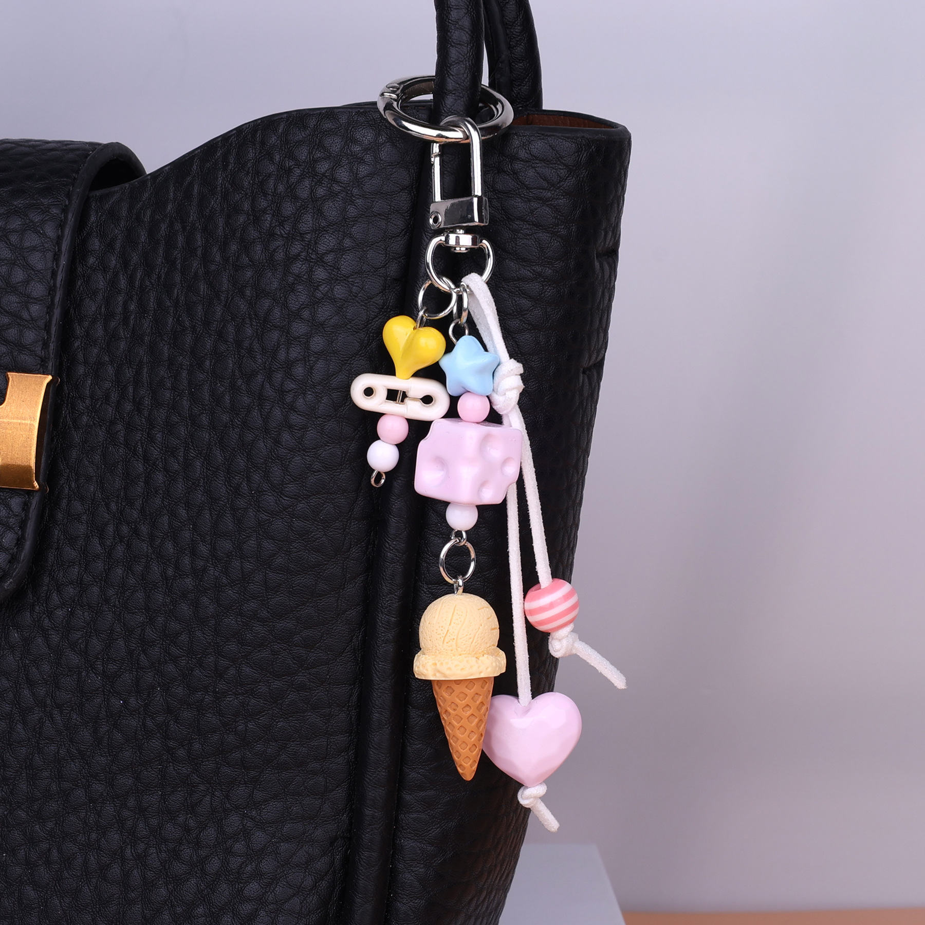 귀엽고 달콤한 아이스크림 키 체인 소녀 하트 컬러 페르시 사랑 펜던트 가방 펜던트 크리 에이 티브 작은 선물스토어 가기