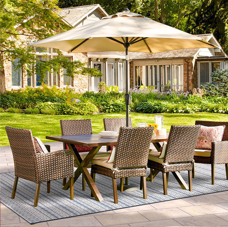 중심 기둥 우산 야외 파라솔 바 스트리트 대형 캐주얼 파라솔 발코니 정원 안뜰 테이블과 의자 우산 더블 탑 밀크티