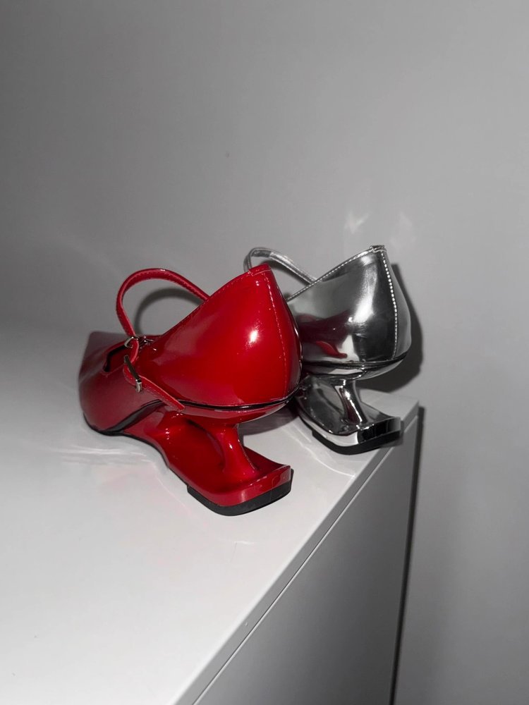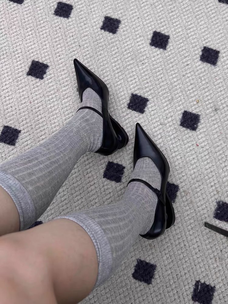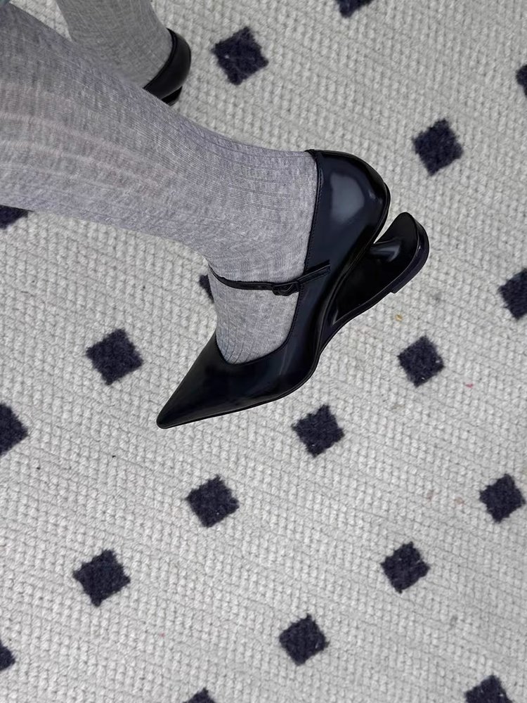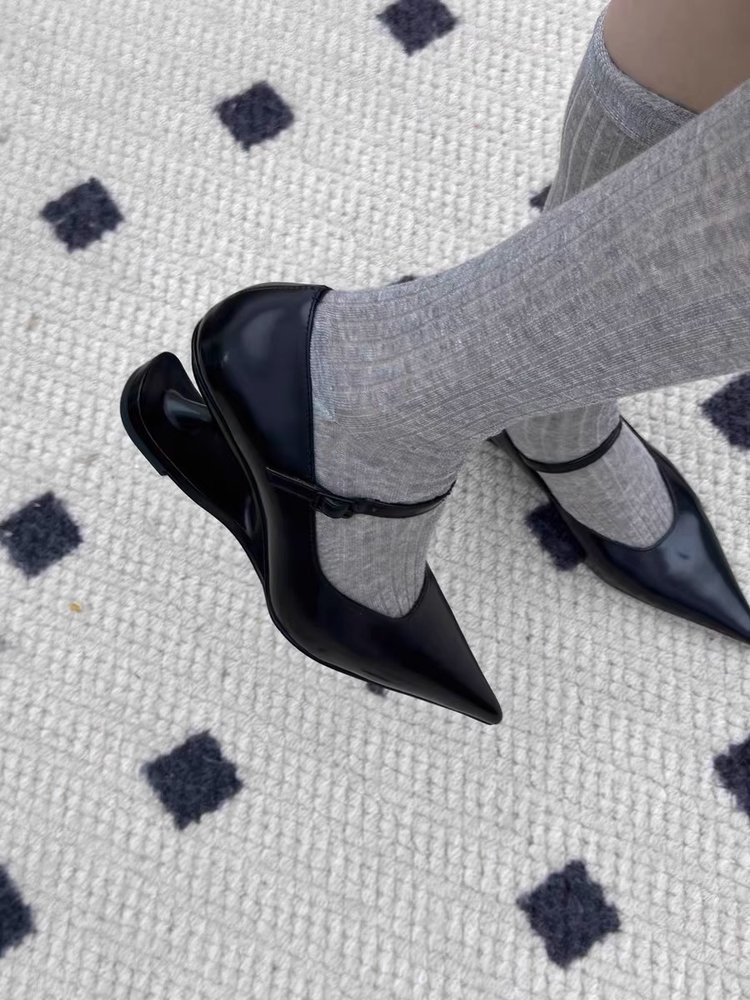 여성을위한 대형 기질 뾰족한 발가락 서스펜션 특수 모양의 힐 메리 제인 하이힐 2025 국경 간 새로운 복고풍 뾰족한 신발스토어 가기